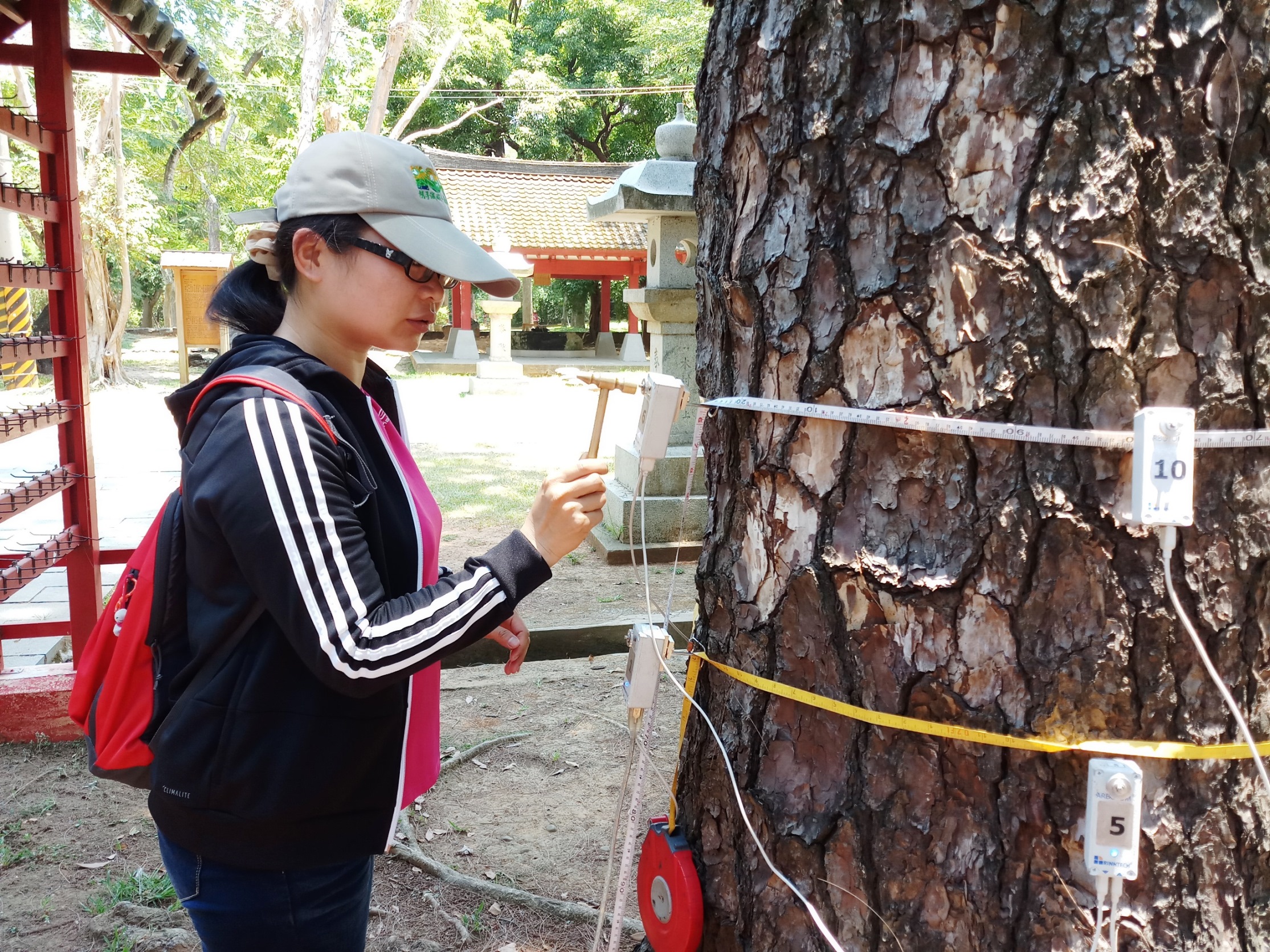 近年來樹木保護觀念逐漸受到重視,老樹更是各縣市政府重要列管保護的對象,但如何保護呢?以往多以「樹木健康評估表」採目測法進行健康性評估,惟其主要是以檢視外觀病徵為主,無法立即判斷林木內部是否有腐朽空洞情形發生,隨著科技日新月異,樹木保護概念逐漸專業化,現可透過非破壞性的「應力波檢測儀」掌握樹木內部腐朽程度並進行定期監測,有效管理防範於未然,其原理主要是透過鎚子敲擊樹體產生的聲波,從聲波傳導速度變化即可以非破壞性的方式,了解樹木內部的結構及健康情形,若結構越密實,聲波傳導速度越快,反之則越鬆散,並配合電腦解析可以有效及準確地讓我們「看」到樹木內部的情况,進而採取適當保護措施。