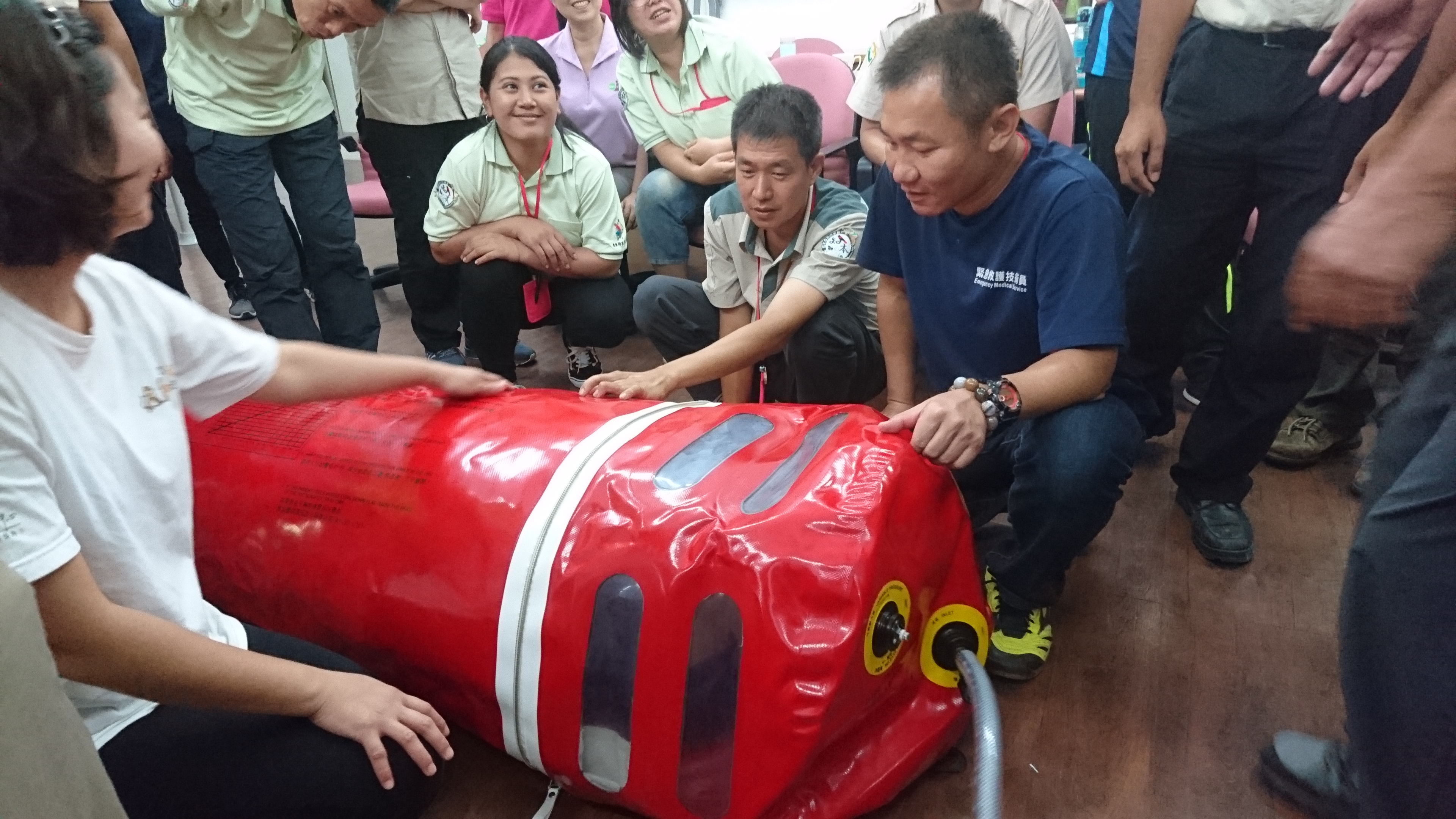 為了加強森林遊樂區旅遊安全及現場人員緊急救護應變能力,臺東林區管理處於今(31)日在知本國家森林遊樂區,辦理「緊急救護暨模擬演練」課程,由臺東縣消防局陳永峻先生擔任講師,包括知本、向陽2個國家森林遊樂區同仁、大武山生態教育館及自然教育中心環教師、國家森林志工等計45位學員參訓。 臺東林管處每年都有舉辦此類課程,今年有別以往的是採取模擬演練方式,讓學員們都能夠以最基本的方式,進行各項生命急救術的操作,如:心肺復甦術(CPR)、自動體外心臟去顫器(AED)的操作,緊急外傷處理(野外止血、包紮、固定搬運)等。另外,因為轄區內有嘉明湖等熱門的高山步道,講師也特別就高山症的介紹及處置方式進行講解,讓學員分組操作如何使用攜帶型加壓袋(PAC)。 臺東林管處處長劉瓊蓮表示,森林遊樂區、國家步道或對外各服務據點的同仁們是第一線與民眾接觸的一群夥伴,藉由專業救護人員的指導,除可提昇現場人員的專業知能,增強人員的急救及救難能力外,也能強化服務場域的安全。