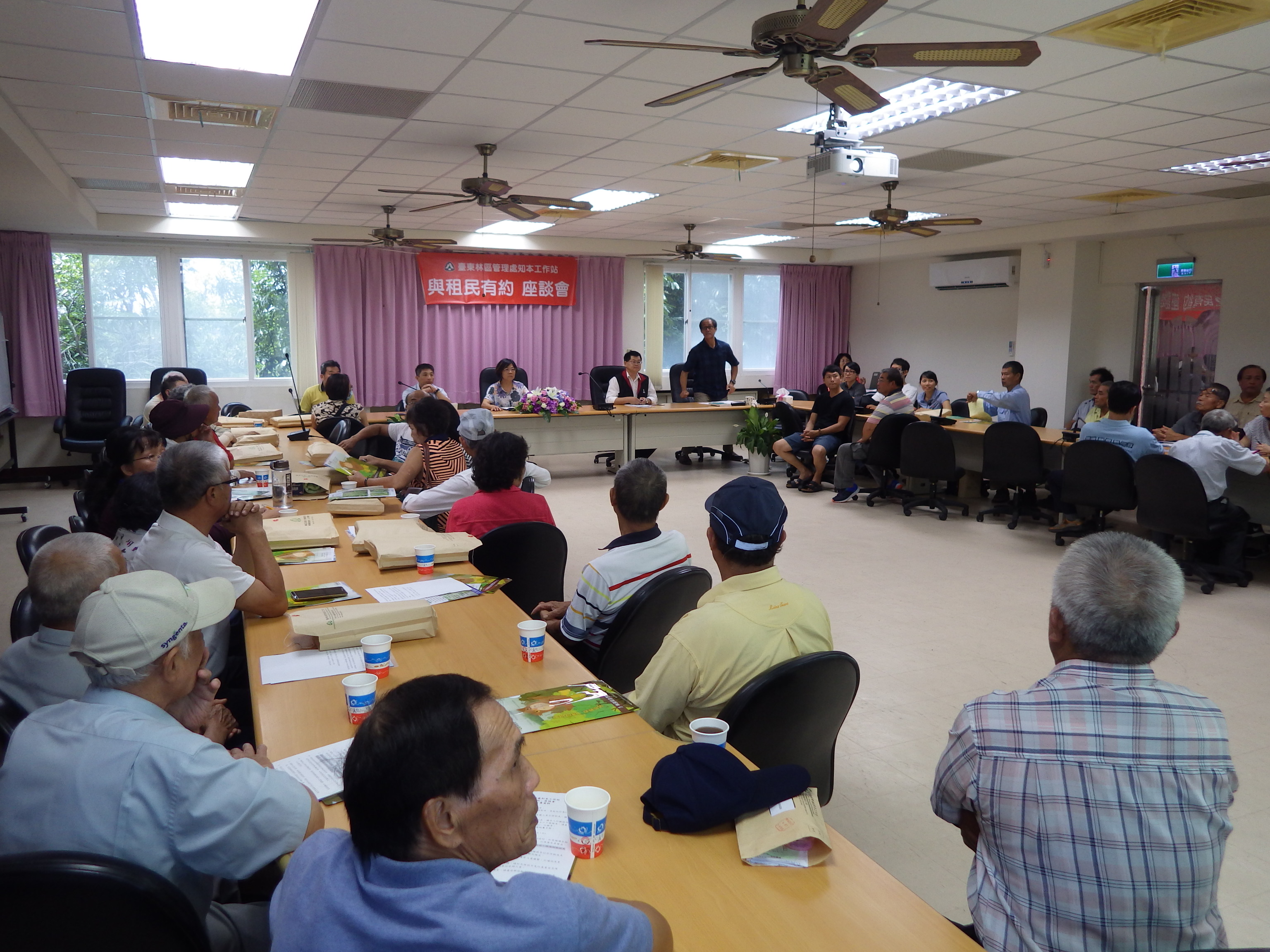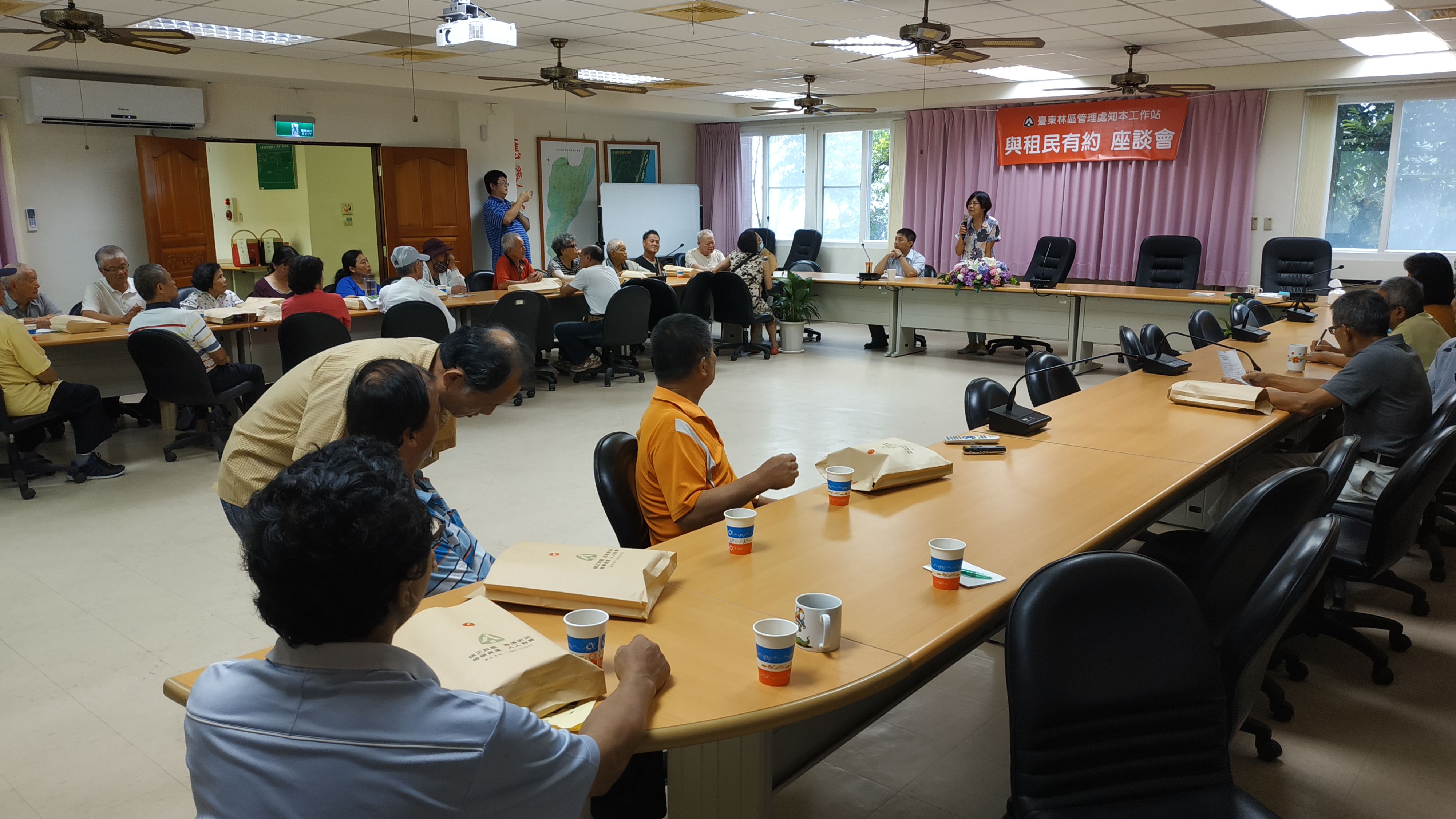 臺東林區管理處知本工作站於本(107)年6月21日首次召開「與租民有約」座談會,吸引該站轄管出租造林地、暫准租地等承租人百餘人前來參加,反應相當熱烈。林管處劉處長瓊蓮率領林政課、作業課承辦人員及知本工作站吳主任文雄與全體同仁等於會場聽取民眾意見。會中除宣導林政業務相關規定,另說明租民們對租地管理、撫育上有關苗木栽植、申請、獎勵造林、主間伐申請及病蟲害防治等各項業務疑問,期能加強該處與民眾間之雙向溝通,創造森林經營管理的契機。 造林工作為長期的投資事業,需要好幾十年間的撫育、管理,才有林木收穫。劉處長瓊蓮表示,為讓民眾兼顧林農生計,在會中鼓勵承租人在林地管理上,與生活、生態、生產連結,有不一樣的思維與做法,如造林樹種選擇可多種植殼斗科、相思樹、楓香等樹種,不僅生長快、伐期短,亦可作為培植椴木香菇用材,短期即能收獲部份收益;或林內蜂箱的放置…,並希望林農們可多互相聯繫,成立林農粉絲頁,藉由合作與分享造林工作甘苦談,可為林務政策發言,共同創造林農的福利。 而在座談會中多位承租人提出對林務局的意見與期望,如協助林農造林、撫育的知識與技術,輔導林農合作社的成立、租約續換約手續的便民…,該處劉處長都聽到了,立即交付知本工作站務必以積極的態度及同理心來協助承租人租地管理事務,輔導轄內林農成立林業合作社,開拓森林生產產值與行銷。 此次座談會,承租人提問反應熱烈,林管處允諾會持續傳達林農公共政策的建言,並同時向林農宣導森林之公益效用,持續有計畫性的經營租地,勿任意濫墾濫伐林木,共同為保存臺灣美麗的山林資源而努力。