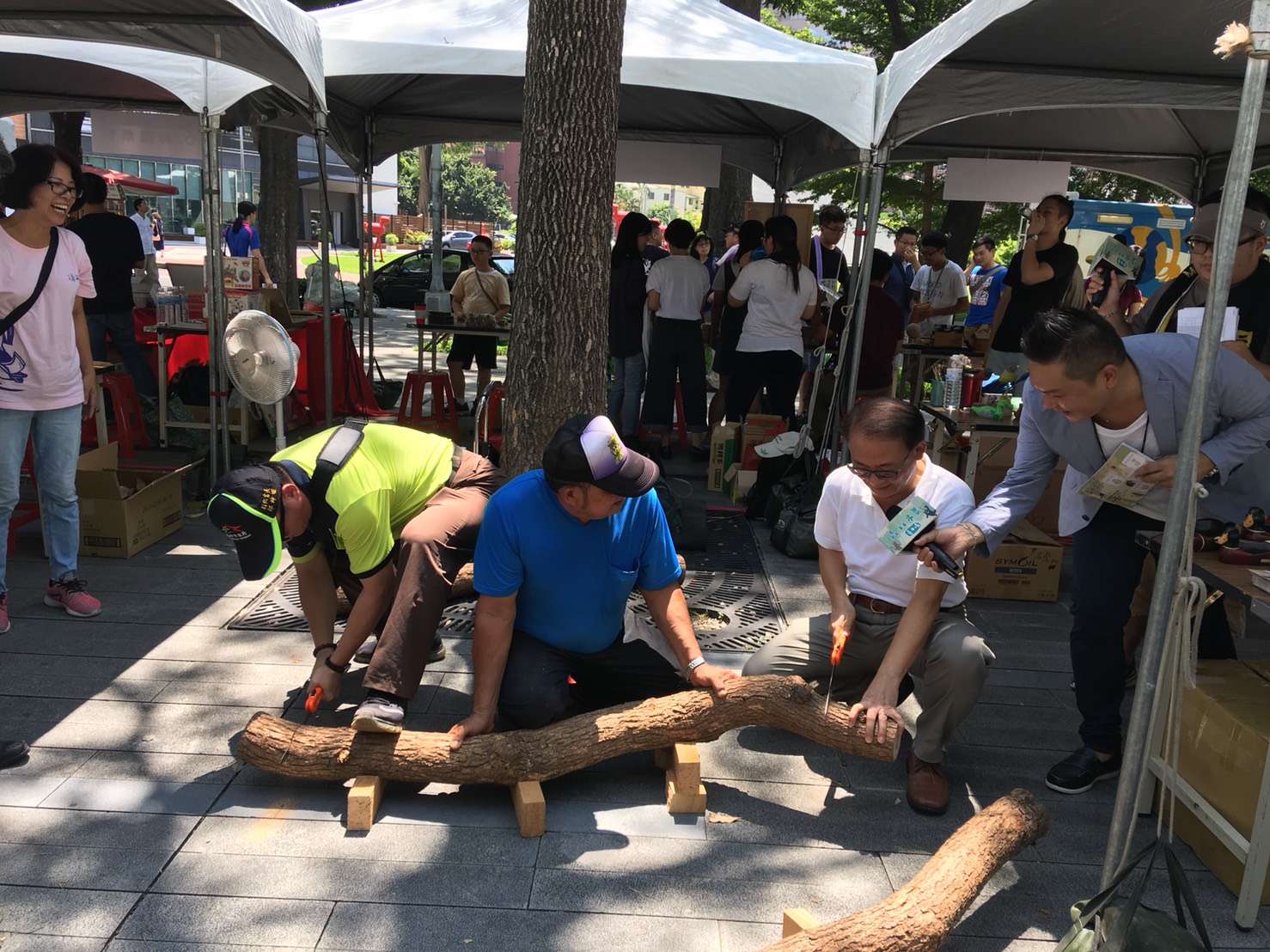 為了推廣國產材,及林務局「國產材臺灣館-森之屋」於2018臺中世界花卉博覽會宣傳暖身,林務局東勢林區管理處於7月14日在臺中草悟道辦理「2018森林市集臺中場-五木森活」,活動當日參加人數逾4000人,活動圓滿結束。 「2018森林市集臺中場-五木森活」以「五木森活」為主題,讓大家在日常生活中就可以落實木系饗食、木系美學、木系宜居、木系手創和木系初衷等五個概念,分別代表飲食產品、美妝保養保健用品、家具擺飾、文創產品與木系產品,藉此推廣木竹材的使用,當日有三義壓箱寶、鄉村玫瑰木作設計、永霆國際竹炭實業、CAS林產品、淞杉木藝、元泰竹藝社、樂樂木、木匠兄妹、昆儀實業、華陀益生國際企業、東勢角文創工坊、玩偶的家、Co2設計木作工房、山水亭銘木漆器工作室、勵林貿易有限公司、陳皇寶藏木工坊、新萬吉木材行、愛迪雅實業、和誼創新、蜂神有機養蜂場等,為臺灣木竹材默默努力的國有木竹廠商到現場擺攤,現場提供天然國產材日常生活用品應用,如竹吸管、竹炭枕、竹炭片、竹醋液、護膝、木樂器、木容器、木醋液、樹萃手工皂、青草茶、防蚊液、月草萃取面膜等優良產品,以增加民眾對國產材的認識與瞭解,也期望民眾能多踴躍選擇合法的國產材產品取代進口木製品,一起為節能減碳努力。 東勢林區管理處更提供帝雉、銳葉高山櫟手機座組成及彩繪DIY,現場大小朋友都踴躍報名,除了有趣又好玩以外,DIY成品更可以帶回去做成手機的家。現場更有集點換杯墊的活動,舞台區安排有獎徵答活動,讓活動熱鬧有趣。並配合國產木竹材的概念,邀請使用本土研發的竹打擊樂器及傳統的竹管樂器「臺灣竹樂團」;以木質弦樂器演奏的「聞韶軒絲竹室內樂團」;及以木質吉他演奏邊邊樂團,以木竹樂器的悠揚樂聲,陪伴森林市集的民眾們度過悠閒的週末。