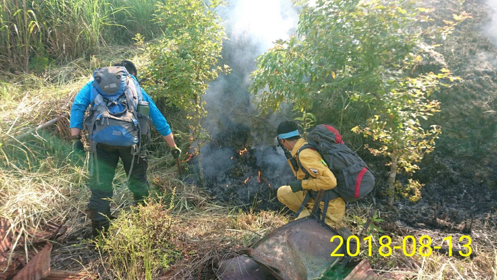 梨山地區於昨(8/12)日下午發生森林火災,經過林務局東勢林區管理處與空中勤務總隊聯手搶救,很快的在今日(8/13)上午獲得控制,並在下午2時宣佈火場熄滅,成功防範火場延燒,避免災害擴大。 東勢林區管理處表示:森林火災發生地點位於台七甲線2.7公里對面山區,屬於大甲溪事業林區第66林班地,昨日接獲通報後立即連夜調度森林救火隊弟兄奔赴火場,總共動員59人次,並聯合空中勤務總隊直升機從空中灌灑12次,在空中與地面通力合作下,克服地勢偏遠及陡峭,成功迅速控制火勢,估計延燒面積有1.4公頃。 至於火災發生原因,初步瞭解是造林工人施工時不慎引起火苗,在風勢的助長下一直往上延燒。因此,東勢林區管理處呼籲:除依森林法第34條規定經該管消防機關洽該管主管機關許可者,不得有引火行為,違者最高可處60萬元罰鍰;至於放火燒毀他人之森林者,最高可處10年有期徒刑,失火燒毀他人之森林者,最高可處2年有期徒刑,且除負刑責外尚須負民事賠償責任。請大家共同保護珍貴森林資源。