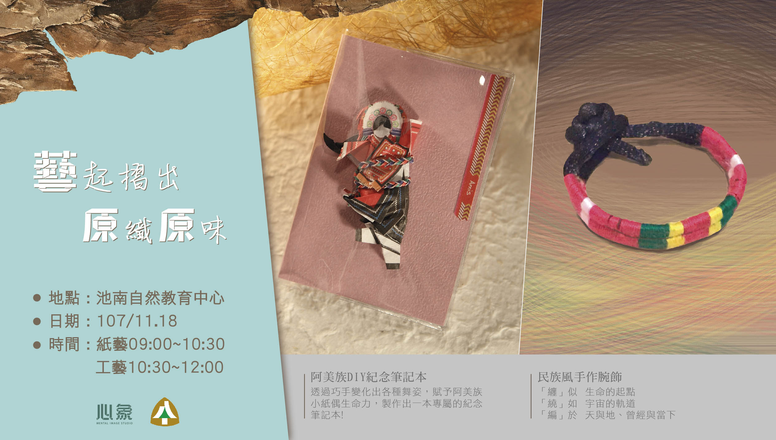 藝起摺出原織原味-摺出原住民傳統智慧與美學 池南自然教育中心將於11月18日(日)在池南國家森林遊樂區舉辦「藝起摺出原織原味」主題活動,邀請專業原住民講師林娜鈴帶領民眾透過手作紙藝與工藝DIY活動,認識原住民文化。 傳統的原住民生活,乃是隨著環境的演變以及經驗智慧的累積所得。從大自然中學習山林的智慧,學會運用環境中的自然資源,學會自足,並學會生活。而這些經驗除了從生活中習得,也有的是依靠族人間的口耳相傳而沿習到現在,若是將這些經驗智慧視為珍貴寶藏也不為過。為使民眾了解原住民傳統的生態生活智慧,並推廣原住民族的文化內涵與藝術美學,林務局池南自然教育中心與新象工作室合作,辦理「藝起摺出原織原味」活動,希望透過原住民創意紙藝及工藝DIY,帶領民眾認識鄰近原住民文化。活動中將由新象工作室講師透過介紹及實作課程,一同來認識原住民傳統生態智慧及文化藝術之美。 活動自10月17(三)上午09:00起開始報名,採線上報名方式(相關連結效期已過),活動名額30人,適合5歲以上親子及一般民眾參與,高中生以下學員必須有家長陪同。本次活動收費199元 (含入園門票及課程活動費)。活動時間為11月18日(日)上午9點至下午12點,於池南國家森林遊樂區舉辦。詳情可見池南自然教育中心網頁(相關連結效期已過)或是池南自然教育中心臉書粉絲團,若有任何疑問,歡迎來電池南自然教育中心教育推廣組洽詢(03)864-1594#15。