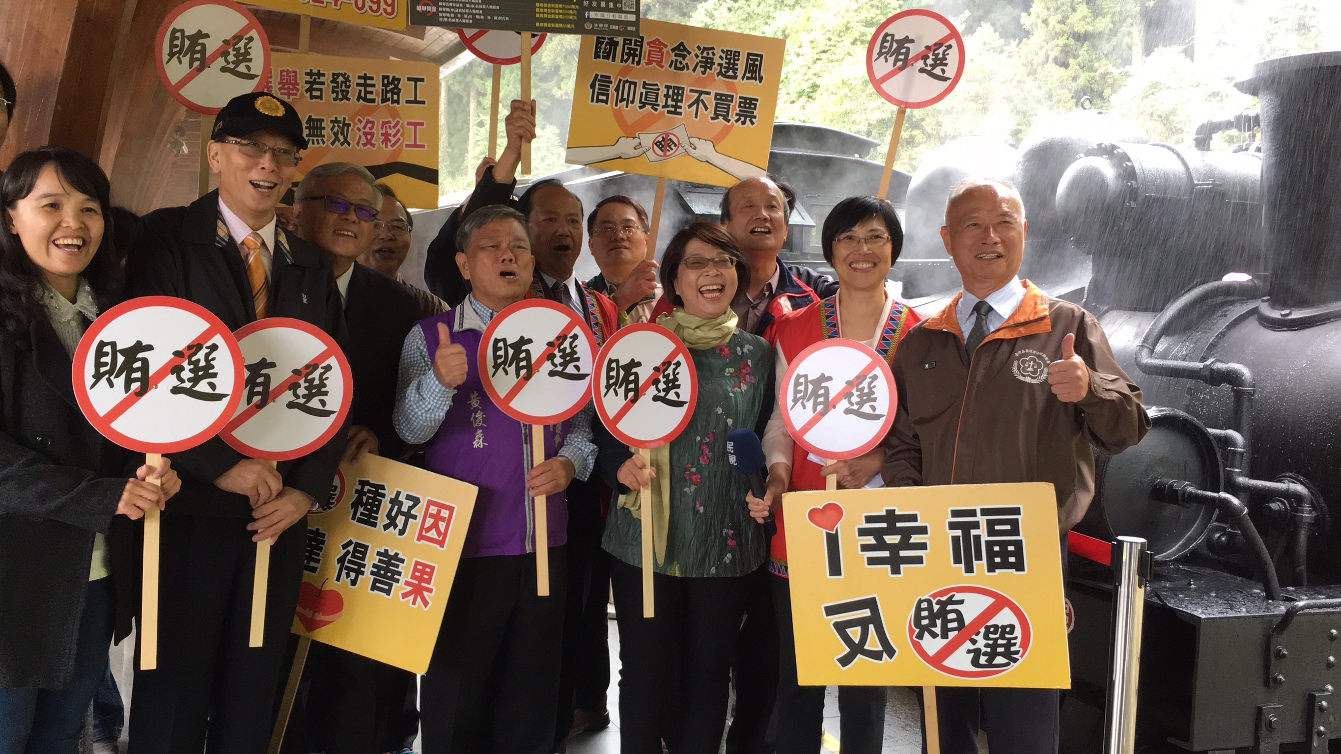 林務局林鐵及文資處響應嘉義地檢署「反賄選活動」,今(31)日啟動反賄選蒸氣列車,由嘉義地檢署檢察長郭珍妮邀集嘉義地區檢、警、調、廉政、林政齊聚阿里山車站,活動中發表反賄選廣播帶由檢察長率先發聲,並邀請鄒族長老以鄒族語言共同錄製,增添活動共鳴性,活動結束後啟動蒸氣火車,象徵「反賄選列車啟動」。 新機關新氣象 響應公益不遺餘力 林鐵及文資處為今年7月1日新成立之機關,主管阿里山林業鐵路及周邊文化資產,為響應嘉義地檢署公益活動並宣揚臺灣特有林業鐵路文化,特別於海拔2216公尺的阿里山車站辦理反賄選活動,並由蒸氣火車擔綱本次反賄選列車的主角,黃妙修處長進一步指出阿里山林業鐵路為臺灣僅存高山鐵路,是臺灣瑰寶嘉義地區的特色,具有觀光及文化價值,並請大家共同愛護珍貴的文化資產。 象徵民主高度 拒絕賄選 清廉政治共同努力 「反賄選列車最高點-跨域合作守護原鄉」活動位於海拔2216公尺的阿里山車站,為目前海拔最高的反賄選活動,象徵--「具民主高度,向賄選說不」,期能藉由本次活動宣揚乾淨選舉,淨化選風,不買票不賣票,以達選賢與能之民主真諦。