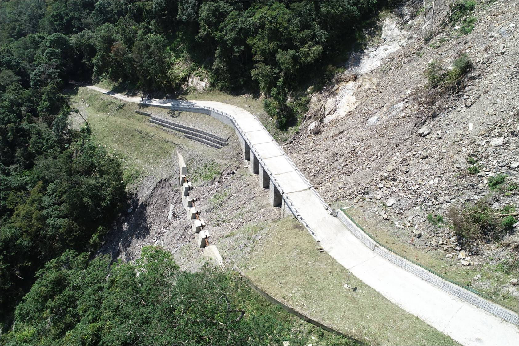 林務局臺東林管處於107年完成的紅石林道9k-11k改善工程參選由農委會舉辦107年度優良農建工程獎評鑑,經過多位公共工程界專家學者委員於初選、現場評鑑及最後決選會議等考驗下,在眾多參選案件中脫穎而出,得到全國農業工程最高榮譽,於108年2月19日獲頒農委會優良農建工程優等獎,肯定林管處團隊對工程設計創新及施工品管的努力與用心。 臺東林區管理處劉處長瓊蓮表示,紅石林道對林管處之造林及疏伐作業等有其重要性,該林道9.5公里處受105年莫蘭蒂颱風劇烈降雨,引發坡地崩塌,造成路基缺口,遂積極投入經費進行災害復建。在工程設計方面以創新的橋涵式山腹工設計,除提供林道車輛通行使用外,更兼具安全排水及穩定邊坡等功用。工程去年4月份完工後經歷多次山區豪大雨考驗,整治功效符合預期,能有效減緩坡面崩塌,並保障健行遊客、林業工作人員安全環境。 臺東林區管理處劉處長瓊蓮特別呼籲,紅石林道緊鄰社區,海拔高度適中且交通便利,是相當適合健行好去處,林道9.5公里處視野遼闊,可展望縱谷地區,居高臨下,山水美景盡收眼底。在12.5公里處更有大片高聳的孟宗竹林,宛如電影場景般,在炎炎夏日上山,讓人感覺清涼無比,是最佳的避暑祕境。為維護大自然環境,請到訪遊客能遵循無痕山林的觀念,隨手帶走垃圾及維護環境,讓其保持原有之自然風貌,在林間享受自然美景之同時,也能減少對自然環境、野生動植物所造成的衝擊。