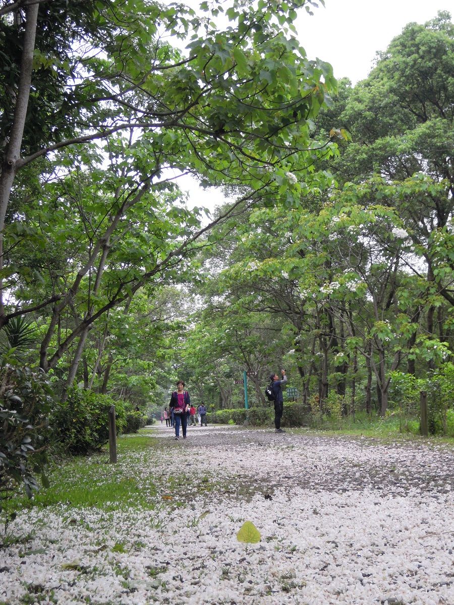 南華林業園區雪白的油桐花盛開,自4月花況消息見報後,吸引大量遊客,累積入園人數超過千人。因花量已日趨減少,花季將於4月底結束,南華工作站分享入園賞花可把握平日上午時光,就有機會欣賞到遍地雪白的浪漫花況。花季後,仍歡迎民眾入園遊賞,漫步綠蔭步道、探訪林業史跡,還有機會驚喜巧遇穿梭林間草叢的五色鳥、紅嘴黑鵯、麻鷺、夜鷺、環頸雉等禽鳥喔! 南華林業園區桐花盛開,吸引花蓮市、新城、吉安、壽豐鄉民眾慕名而來,看到舖滿地面的雪白桐花,紛紛拍照、留念、打卡或利用桐花排設愛心圖樣,民眾表示在自家附近有大面積的賞桐花景點,感到便利且開心,紛紛揪團賞花。 前身為貯木場的南華林業園區,占地約7公頃,於民國49年擔負林業生產鏈要角,近年來歷經整體規劃及全區綠美化,至今已茂密成林,同時保有早期製材使用的剖木機、天車等機械,以及生態池、戶外教室、林間步道等。 園區開放時間:週一~五8-17時,地址:花蓮縣吉安鄉吉安路六段117號,洽詢電話:03-8527526#210
