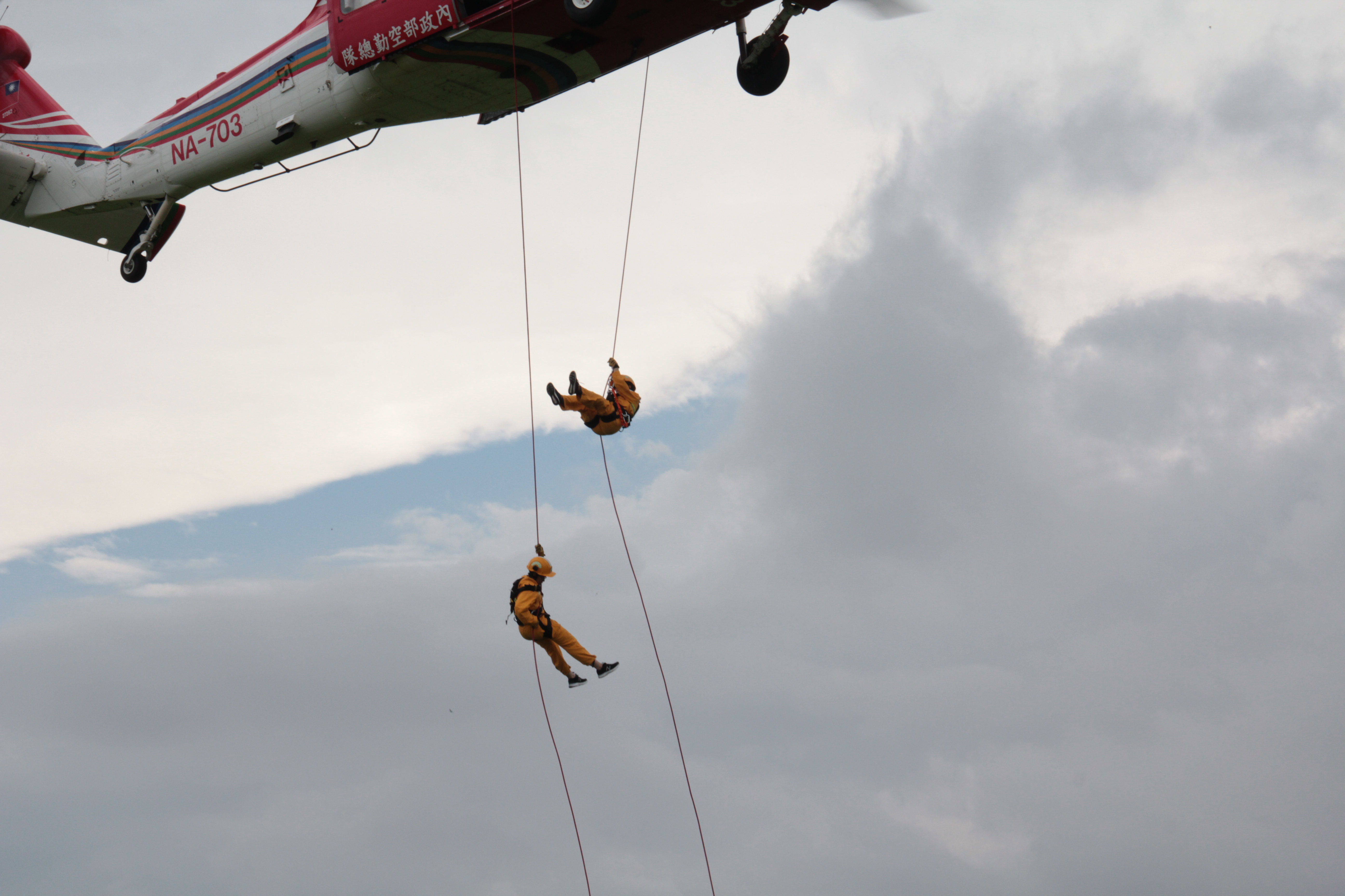 林務局臺東林區管理處及嘉義林區管理處為儲備森林救火能量及加強森林火災搶救應變機制,於108年5月16日至17日連續2天,在臺東豐年機場配合空勤總隊黑鷹直升機辦理「陸空聯合森林火災防救人員吊掛訓練」,另有保七總隊第九大隊以及林業試驗所太麻理研究中心等40名救火隊員共同參訓,模擬森林火災發生時人員及物資運送、空中吊掛、水袋裝卸及垂降等項目,增進森林救火之觀念與技術,期能提升防救災能力。 臺灣山區地勢峻嶺陡峭、交通不便及水源缺乏,一旦森林火災發生,森林救火隊員無法立即趕至火場,加上補給不易又無法全盤掌控火場狀況等窘境,均需仰賴空中直升機協助勘查火場、補給物資、救護人員及協助救火。 臺東林區管理處處長劉瓊蓮表示,相較於西部,花東地區發生森林火災頻度相對較低,但近年隨著全球暖化氣候極端變化,高山地區森林火災風險隨著提高,防範工作不可輕易鬆懈,另外也特別感謝空中勤務總隊第三大隊第三隊及內政部消防署特種搜救隊協助辦理本次訓練,各單位間互相培養良好默契,一旦發生森林大火,能即時發揮最大效能,使國家森林資源損失降至最低。另呼籲民眾如發現不明人士於國有林地從事不法情事,請即向臺東林區管理處或警察機關舉發,免費檢舉電話為0800-000930、0800-057930。