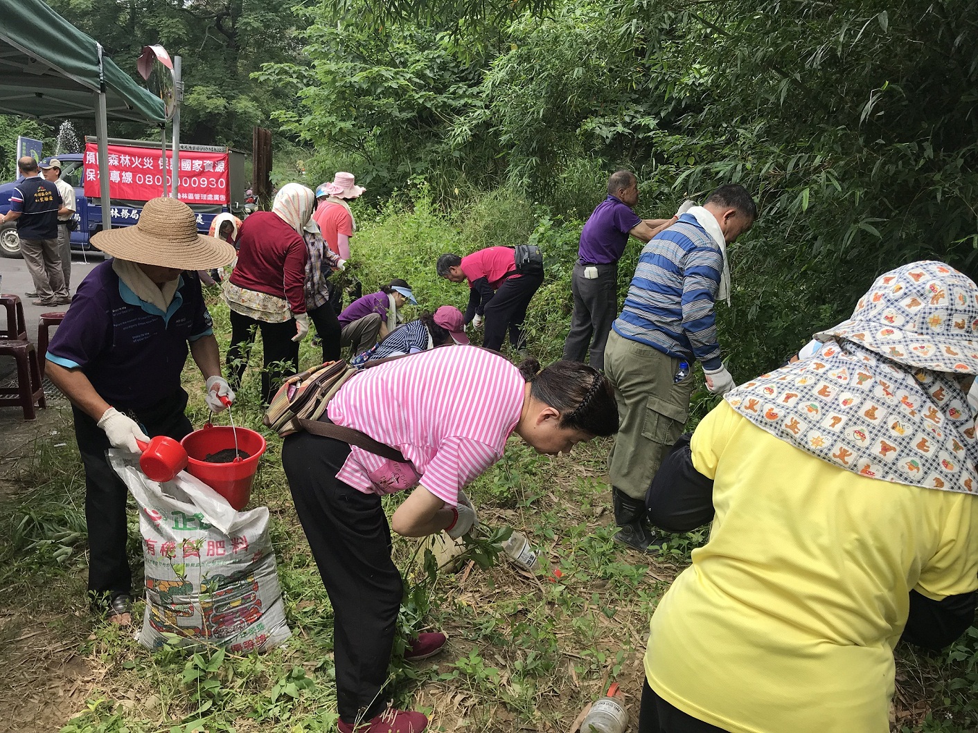 結合社區與團體參與保安林經營管理及辦理環境教育活動 林務局東勢林區管理處於今(5/26)日與台中市外埔區公所、水美社區、三崁社區共同舉辦「編號第1407號土砂捍止保安林社區認養環境教育活動」,共號召200位在地居民共同參與,以工作坊型態進行保安林地友善生態除草與造林地施肥等操作,體驗保安林的重要性與生態功能,共同推廣國土生態綠網保安林環境服務價值。 同地去(107)年種下700株苗木,今年持續加強營造保安林生態環境 本次活動地點為第1407號土砂捍止保安林,位於外埔區水美里與三崁里旁,活動內容包含保安林地友善生態除草與造林木施肥,結合本處講師介紹當地保安林生態營造知識,以實地體驗營造保安林生態綠美化活動,拉近人與土地的距離,水美里里長陳俊樑表示,透過本次活動理解了保安林的角色及功能,加強營造保安林就可增進保安林之效能,更可發揮保安林保護地方聚落之功能,進而明白保護保安林就是保護自己。 水美社區自107年7月無償認養保安林 外埔區公所及水美社區自107年7月無償認養保安林,面積約為3公頃,主要工作以通報傾倒垃圾(廢棄物)、環境清潔維護、除草、造林木澆水撫育、保安林巡護等,第一時間通報,林管處即派員處理,對經營維護保安林,有很大幫助,成功透過公私協力合作模式大幅減少保安林地遭傾倒廢棄物情形。 匯集民間力量共同保護保安林 東勢林區管理處處長蕭崇仁指出,為了維護生態環境及週邊聚落居住安全,希望匯集民間力量共同保護保安林,水美社區與三崁社區均位於保安林旁,即發揮在地居民守護家園之自發性協助保安林巡護,未來希望號召更多在地居民共同推廣國土綠網保安林環境服務價值,共同延伸國土綠網。