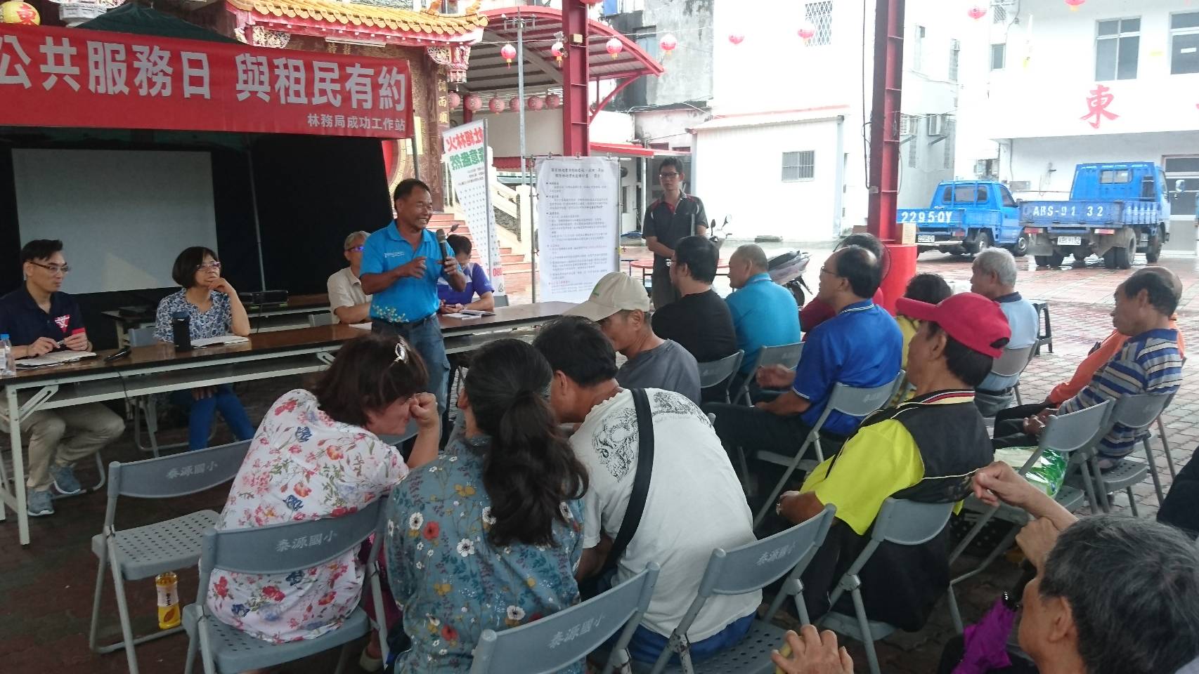 今日(11)日上午9時30分臺東林管處至東河鄉泰源村東安宮辦理1場座談會,與泰源地區的林農說明最新修正的各項林地管理政策及國有林地暫准租地解除林地計畫,林管處劉瓊蓮處長率領各課室代表、成功工作站主任張勝傑與工作站同仁列席,東河鄉公所、成功鎮公所、中華紙漿公司及東河義消分隊也都派員出席,吸引近70名林農出席,甚至有遠從台北趕回來參加座談會。 泰源幽谷是東河鄉知名景點,海岸山脈環繞、河流蜿蜒其中,正是里山倡議中的混合地景,當地居民大多務農或從事租地造林工作。為了能推廣與民眾權益相關的政策及雙向溝通,林管處特別至泰源村信仰中心東安宮廟埕舉辦座談會,向林農說明林地管理規定的放寬修正、林下經濟、林業永續多元輔導方案、外來種防治及獼猴防治與電圍網補助等。因泰源地區為暫准用地承租人的集中地區,林管處也特地於座談會中說明暫准建地、水田及旱地租約,如何申請解除林地變更為丙種建地、農牧用地並鼓勵符合資格的林農提出申請。 七塊厝承租人陳榮妹提出樂見林地管理政策的放寬及考量民眾的生活權益,也建議能多舉辦這樣的座談會互相交流;承租人李清亮先生也現身說法,跟農友們分享過去1-2年在租地進行林下養菇的成果;居民賴玉子則感謝近幾年在林管處及專家的協助下進行架設電圍網防治獼猴危害。承租人張發仁則提出林木褐根病為害,希望請專家協助病害防治;遠從台北來的承租人蔡爾貴也建議工寮及聯外道路的維護也請林管處多加協助。劉處長逐一給予各位林農回覆,也鼓勵泰源地區的林農成立林業合作社,一起發展林下經濟及森林產業。