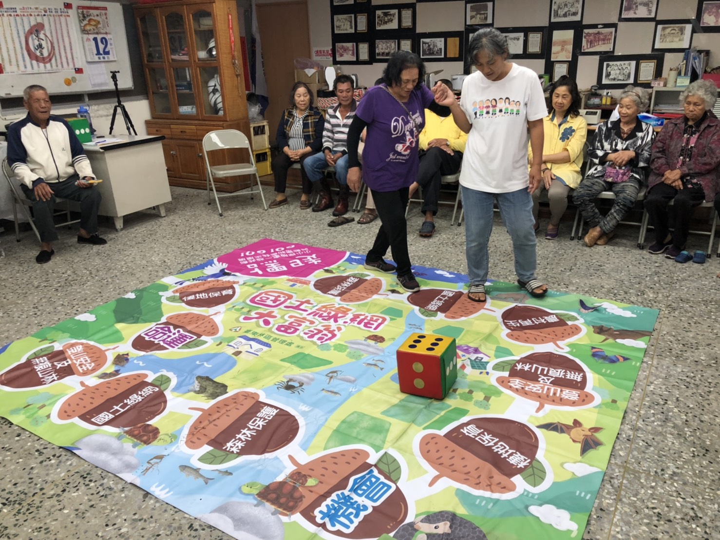 臺東林管處關山工作站自去年辦理保林、愛林、護林宣導列車,深受轄內各學校及社區的喜愛,今年同樣舉辦三場巡迴式宣導活動,與往年不同宣導方式不同,今年為豐富宣導內容,特別加入桌遊概念,推出國土綠網大型桌遊,並將國土綠網、里山倡議及打擊山老鼠等最夯的保林及保育觀念融入大型桌遊,把保林、保育宣導變有趣,達到寓教於樂的效果。 本(12)日臺東林管處關山工作站保林、愛林、護林列車,前進關山鎮電光社區,特將大型桌遊國土綠網大富翁帶到社區與阿美族長者們宣導及一同闖關玩樂,長者們在看完關山工作站技正魏瑞廷的示範後,紛紛專心投入桌遊遊戲,且各個玩的不亦樂乎。 技正魏瑞廷表示,使用設計完善又簡單有趣的大型國土綠網大富翁,非常具有意義且能夠迅速達到宣傳功能。內含9個國土綠網、里山倡議、保育及保林及保育等議題,另「機會」與「命運」卡片有常識篇、動物篇、里山篇等共60道題目無重覆,內容豐富。此外,在遊戲卡片中有題寫道「請發出三種您認識的保育類動物的聲音?」現場參與的長者們,紛紛被參與者富含創意的叫聲逗得樂開懷。
