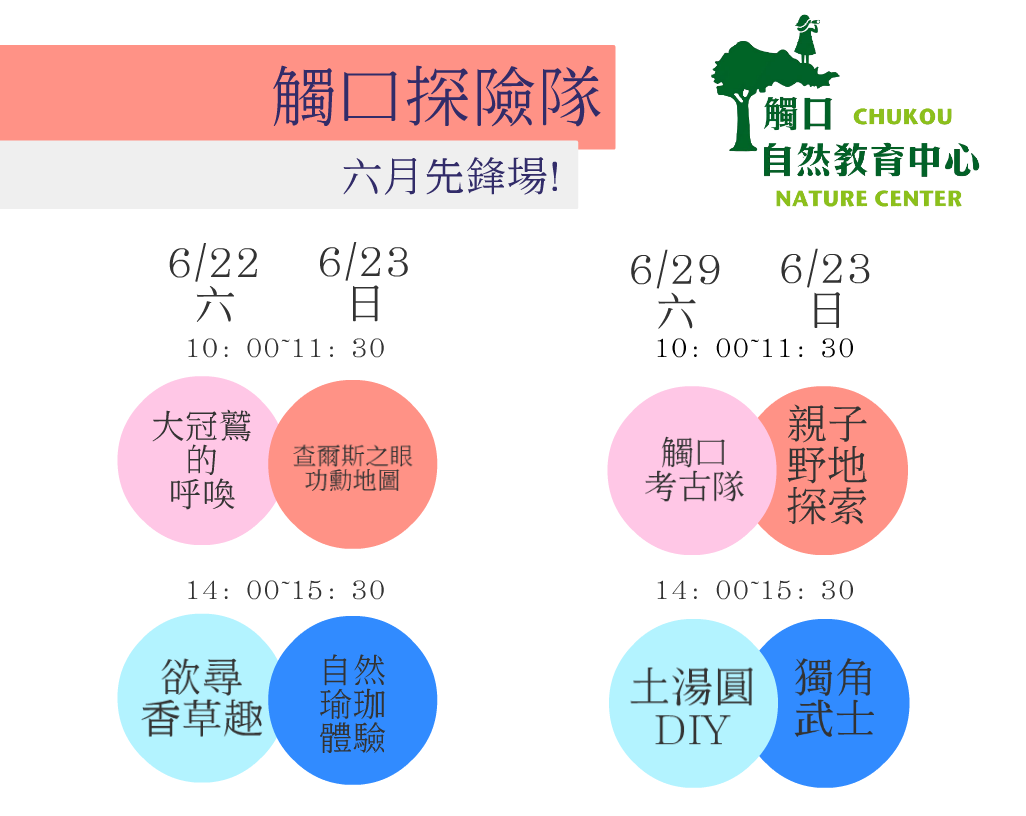 林務局嘉義林區管理處觸口自然教育中心十歲了,自108年6月22日起至7月26日,觸口自然教育中心特別推出「觸口探險隊」活動,規劃13套精選定時定點課程,邀請大家一起來歡慶十週年生日。 炎炎夏日 觸口探險「趣」 嘉義林區管理處觸口自然教育中心自98年7月18日正式營運以來,推出的課程服務皆採預約制,平時前往中心園區踏青的民眾因未預約申請且人數少,無法體驗中心的課程活動。有鑑於此,中心特別推出十周年特別活動—「觸口探險隊」, 精選13套定時定點課程服務,於6月22日到30日,每周六、日各提供2場次活動;7月1日到7月26日每周一、三、五各提供4場次活動,一次滿足大家的需求。「觸口探險隊」系列活動可現場報名,只要年滿6歲以上民眾,於課程開始前10分鐘至園區綠意館一樓報名及繳費即可參與。課程時間約為1.5小時,每項活動每人收費50元,課程詳細內容可至觸口探險隊專頁(https://sway.office.com/PEss2pulYiULTLJW?ref=Link)查詢。 打開探索自然的視野 「觸口探險隊」系列課程有自然探索、動物視野、輕鬆生活、DIY活動四大類,讓民眾根據喜好及需求,選擇不同的課程來接觸自然。自然探索課程〈親子自然同遊趣〉、〈查爾斯之眼—功勳地圖製作〉、〈觸口考古探險隊〉、〈自然小小觀察家〉,提供親子學習如何進行安全有趣的野地探索活動。動物視野〈蟹蟹再連絡〉、〈無「獨」有偶〉、〈踏尋蛛蹤〉課程以中心園區熱門生物臺灣南海溪蟹、獨角仙、蜘蛛等為主角,帶領大家認識園區原住民,學習如何與萬物共生共榮。輕鬆生活〈欲尋香草趣〉、〈無患子清潔劑DIY〉及〈自然瑜珈體驗〉,學習運用自然元素增進生活品質。DIY活動有〈土湯圓〉及〈大冠鷲的呼喚〉適合喜愛動手作的民眾來進行種子球盆栽、種子鳥笛DIY體驗。 觸口自然教育中心位於阿里山公路約29.5公里處,交通便利,園區動、植物生態豐富,是適合大朋友、小朋友親近自然的好地方。中心持續推出適合社會各界及各年齡層民眾體驗學習的新課程,歡迎民眾前來師法自然,快樂學習。中心地址:嘉義縣番路鄉新福村五虎寮18號,開放時間9:00~17:00,中心各項活動訊息可至林務局自然教育中心網站 (https://recreation.forest.gov.tw/)及觸口自然教育中心Facebook粉絲專頁(https://www.facebook.com/cycknc/)查詢,或來電洽詢(05)259-0211。