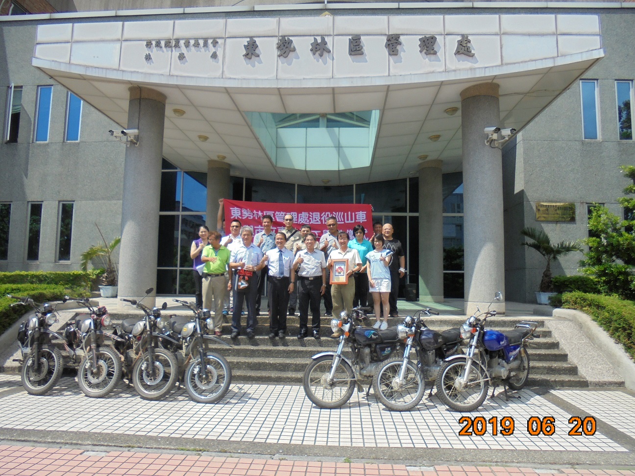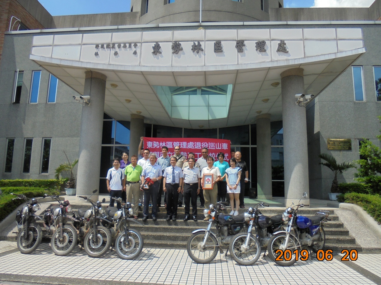 林務局東勢林區管理處於108年6月20日下午2時,將退役巡山車贈與臺中市立東勢工業高級中等學校,做為學生實習課程拆解教學用,使同學們能有更多實際操作的機會,讓理論與實務得以相互驗證配合,並嘉惠在地學子,以發揮報廢財產最大剩餘價值。 東勢林區管理處蕭處長崇仁表示,本次贈與汽車1輛及重型機車7輛,期望以實際行動充實技職教育教學設備,優化學生專業實作技術能力,亦希望同學們能好好利用,以提升專業技術能力,期許同學們未來能成為一流的汽車裝配、維修技術人才。更期望透過此項活動達到拋磚引玉的效果,讓社會上更多人關心教育工作,企為社會培育更多專門的優秀人才。
