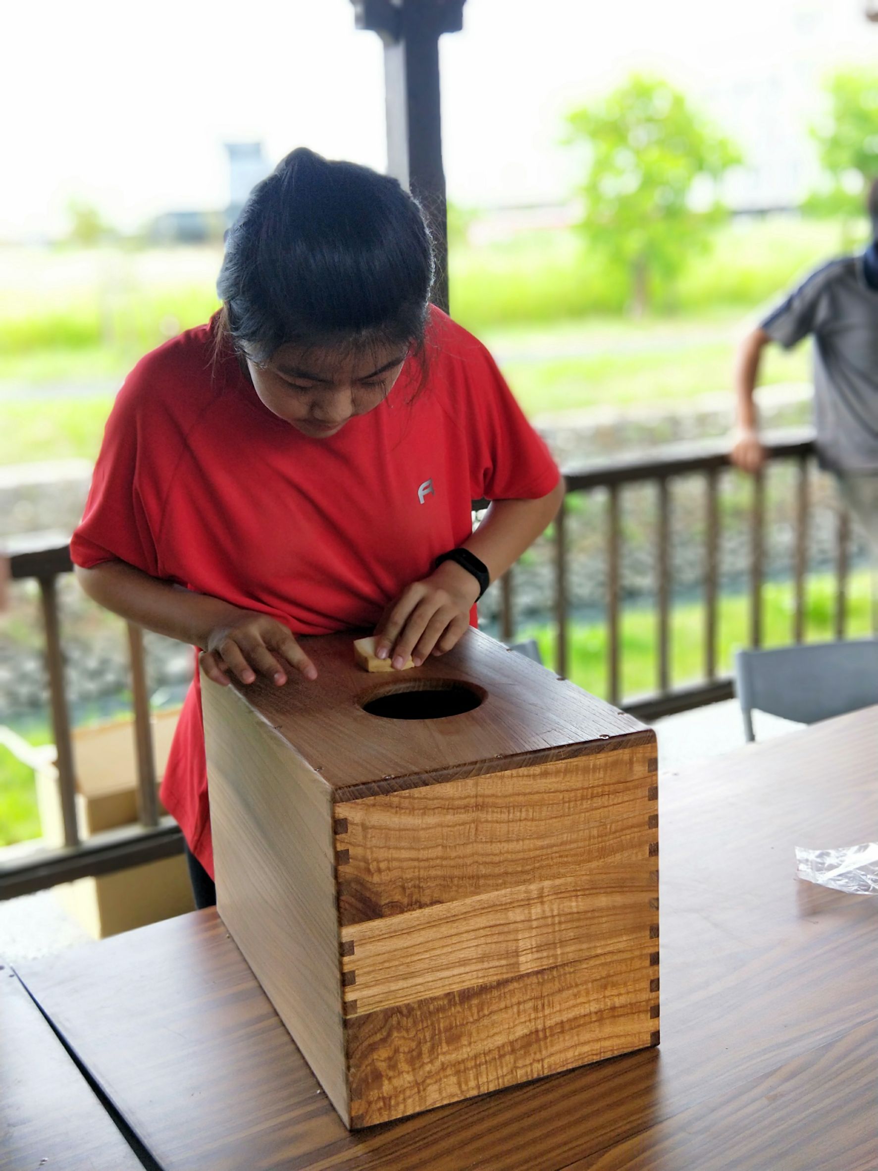 為推廣國產材的多元利用,羅東林區管理處近年已辦理「相思實木手工烏克麗麗工作坊」、「國產實木吉他工作坊」「人工林國產材小椅凳親子DIY」等多場工作坊頗受好評。108年7月20日再次由羅東林管處與昆儀實業股份有限公司合作,由員工攜帶親子共同參與,試辦「國產材實木手作木箱鼓」課程。 此次採用國產材楝木與相思木製作,且皆經過獨家唯一技術”熱改質”處理,可使板材穩定性高,不易反翹並可延長樂器使用壽命,而熱改質相思木做為面板經研究指出可使響板材震動性質更佳。 課程特邀請擁有35年木業經驗之在地廠商昆儀羅浩銘擔任木箱鼓製作講師,另外搭配張家馨老師教授基礎木箱鼓打擊。此次雖然只是試辦課程,但是無論有無木工經驗的親子皆可在教學下輕鬆完成;在音樂教學上超過10年經驗張家馨Monnew老師指導下,更讓大家無痛學習樂器拍打技巧。 適合親子DIY組裝的木箱鼓,不僅可提升親子間感情,更讓國產材產品融入生活之中。量身打造適合亞洲人身形之木箱鼓,伸手就能輕易打到大鼓,更可以舒適的將腳跟放在地上。炎炎夏日下,讓打鼓變成一件信手捻來的幸福。