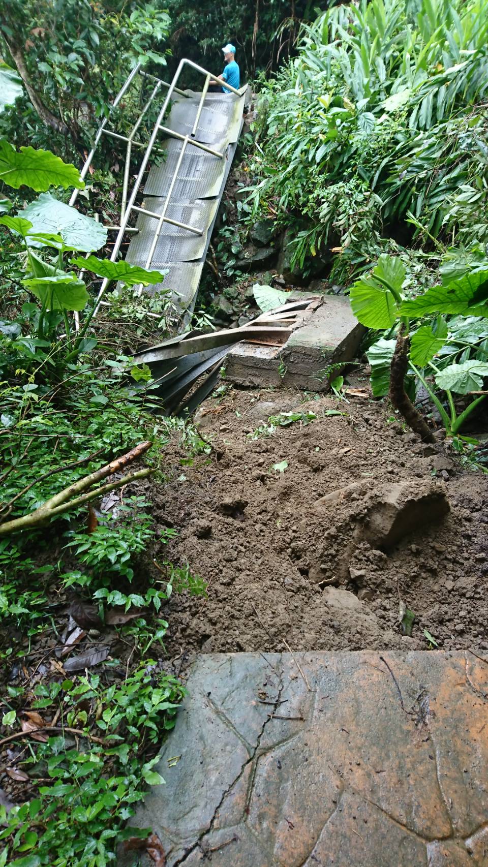 由於連日來大雨造成山區土壤含水飽和,上午獨立山步道西側路段一座便橋遭石頭壓毀,長度約12公尺,無人員受災。林務局嘉義林區管理處已先於步道西側兩端先行封閉,並通知步道維護廠商現勘修護。因獨立山步道景緻優美、輕鬆易行,為嘉義縣熱門健行路線,嘉義林管處將先行勘查,在無安全疑慮情形下,先行施作安全臨時便橋,供登山客通行。 嘉義林區管理處特別呼籲民眾,連日降雨期間,山區土石鬆動,易有崩塌或落石情形,儘量避免前往山區或步道。並應密切注意相關氣象、交通、旅遊安全等資訊,請提高警覺,注意自身及行車安全。