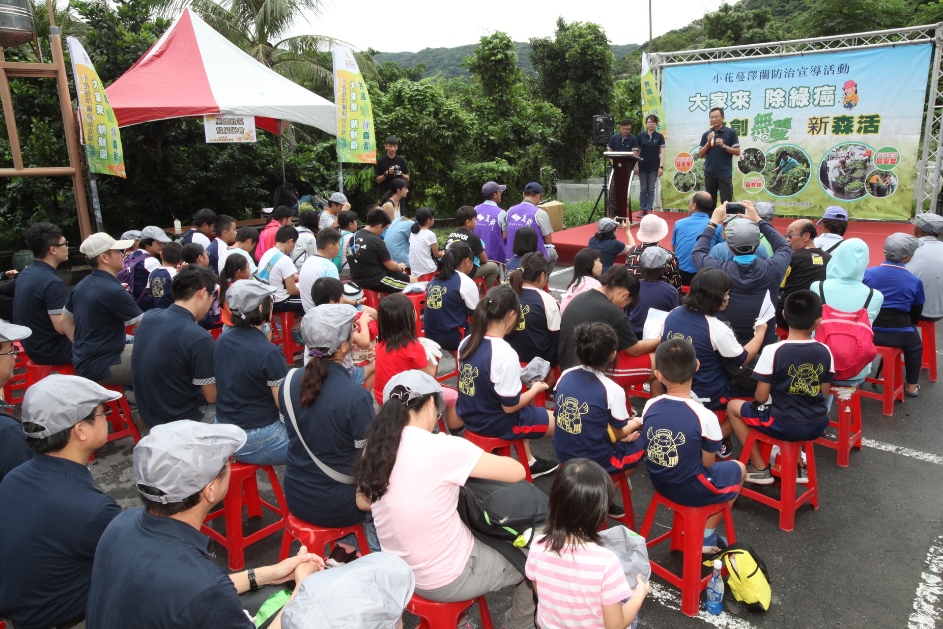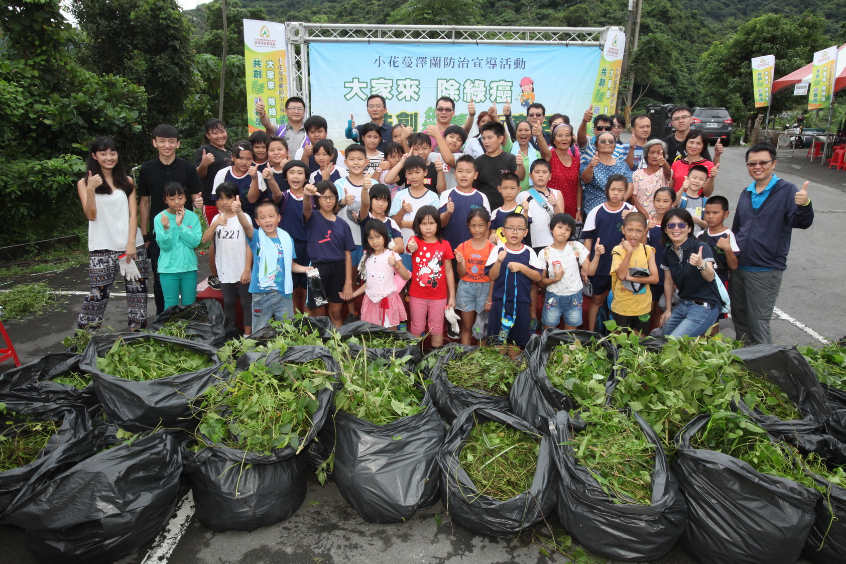 鑒於有「綠癌」之稱的小花蔓澤蘭,藉由其快速生長擴散的特性,嚴重危害本島生態多樣性,林務局屏東林區管理處於108年9月7日小花蔓澤蘭防治日,除了在屏東縣滿州鄉里德社區舉辦小花蔓澤蘭防治宣導活動外,分別在屏東縣新埤鄉建功親水公園、高雄市六龜區十八羅漢山服務區及高雄市旗山區地景橋,4場次總計共約400人共襄盛舉,當日共移除約800公斤的小花蔓澤蘭,為臺灣生態環境共盡心力。 活動現場除了有入侵物種習性及防治方法的介紹之外,並讓民眾捲起袖子動手除蔓,參加者雖費盡九牛二虎之力拔除小花蔓澤蘭,卻也樂在其中,同時更感受到外來入侵種防治工作的不易。此外,現場還有各種宣導攤位、DIY活動,增加與民眾互動的機會,讓民眾更加認識自然保育及各種林業相關知識。本次活動民眾透過親手拔除蔓藤過程,除可為家鄉生態環境盡一份心力外,也將外來種入侵種防治宣導的觀念深植民眾心中。活動最後屏東林管處更贈送民眾桂花、含笑花、及蘭嶼羅漢松等樹苗,希望民眾也將綠意栽植在居家周圍,一同建構自然美麗的綠色家園環境。 屏東林區管理處籲請大家,持續共同防除外來入侵植物,打造無蔓森活淨土。