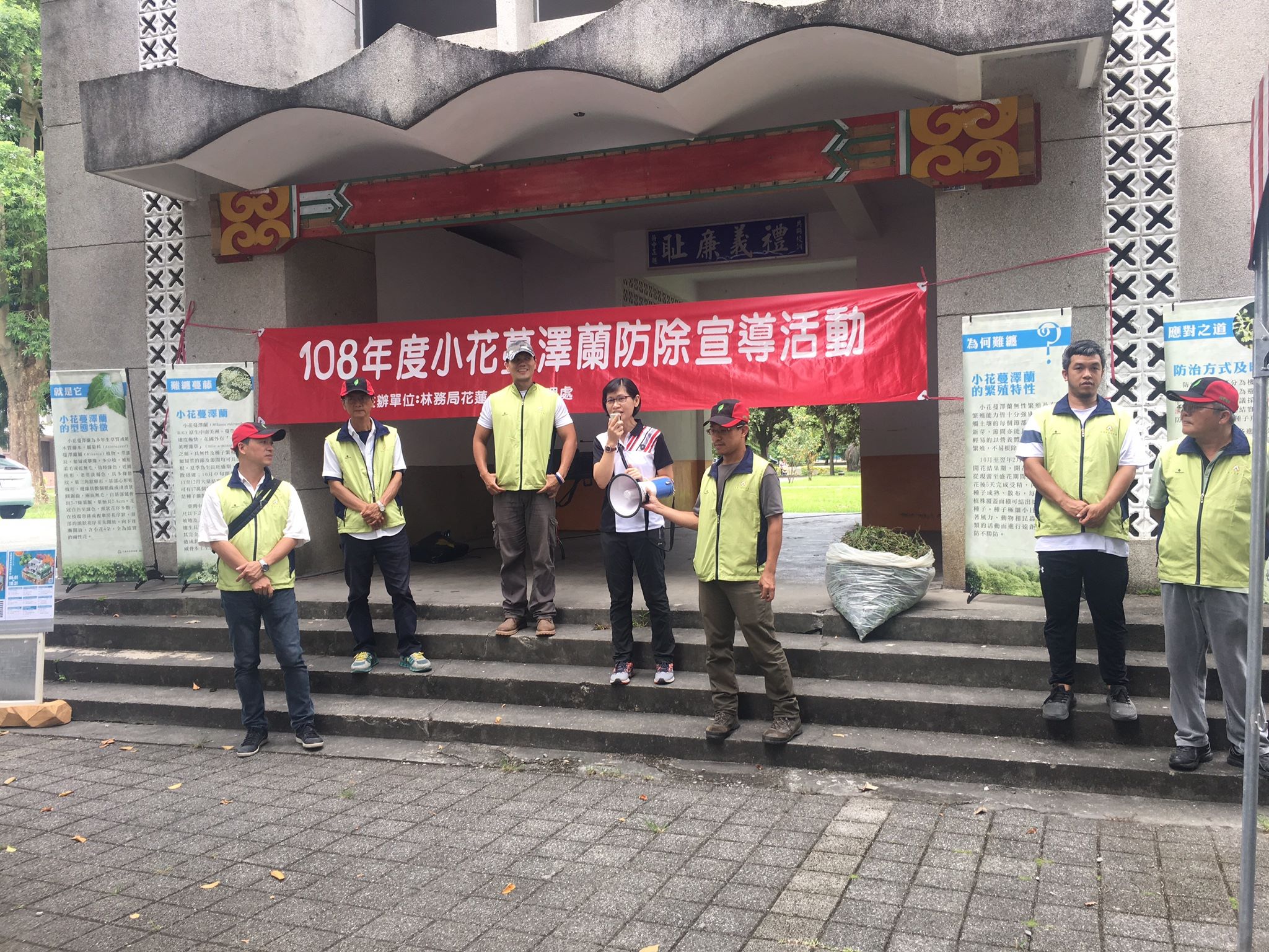 為鼓勵民眾一起加入剷除「綠癌」-小花蔓澤蘭的行列,林務局花蓮林區管理處今年分別於北、中、南區擴大辦理多場宣導活動,最後一場昨(21)日在玉里鎮舊玉里國小登場,玉里工作站特別與玉里鎮週會市集合作,吸引了超過100位民眾熱情參與。活動當天民眾以小花蔓澤蘭藤蔓兌換點劵,現場共收到超過50公斤小花蔓澤蘭,落實「自家小花自己除」的理念。 今年度小花蔓澤蘭防除宣導系列活動以結合各地特色市集方式,宣導民眾認識及如何防治小花蔓澤蘭。活動當天每10公斤小花蔓澤蘭殘株可在市集兌換價「小花代幣」,並在現場消費當地生產的等值農特產品,拔除毒草之餘同時促進在地消費。活動當天雖天公不作美,下起了一場大雨,不過,仍澆不息大家共同愛護家園、剷除外來入侵種的意志,吸引了超過100位玉里鎮民參加,累計收到超過50公斤的小花蔓澤蘭,成果相當豐碩。 花蓮林管處副處長王怡靖呼籲,要讓列為全世界百大入侵種,有綠癌之稱的小花蔓澤蘭,不破害臺灣的生態,仍需由政府與全民ㄧ起來防治移除,才會有成效。今年三場系列活動共砍除了超過800公斤的綠癌,參加人數將近2,200人,相當踴躍,顯見民眾對於防除小花蔓澤蘭已有充分的共識;林務局以每公斤5元補助各縣政府收購,花縣政府縣長徐榛蔚更主動加碼至每公斤8元,全國僅有,以鼓勵花蓮縣民不分季節、不分地域,隨時隨手都能砍除小花蔓澤蘭,對生態環境做出具體貢獻外又能賺外快,請民眾把握最佳防除時機及收購的期限,詳情可洽詢鄉鎮公所。