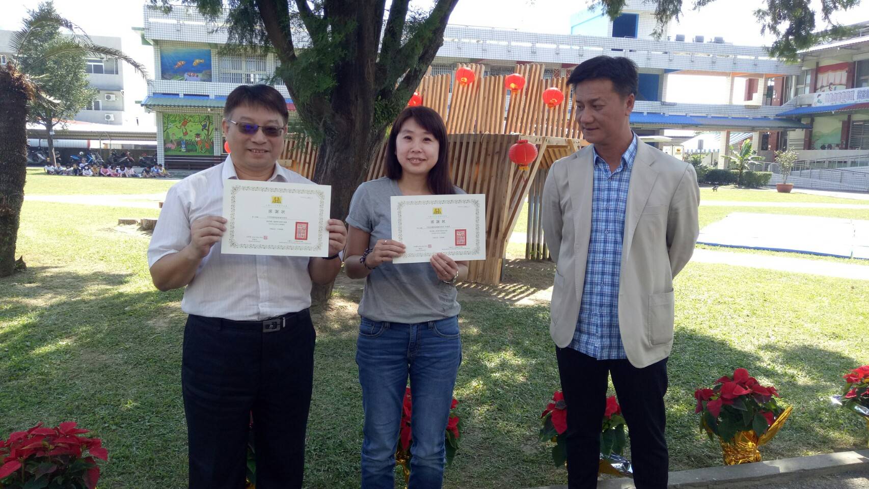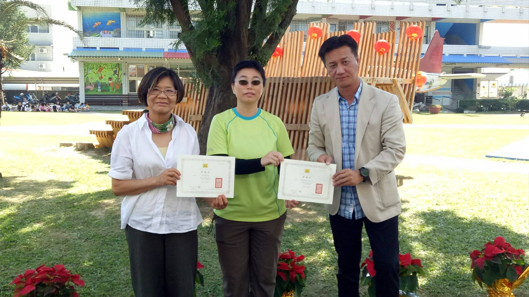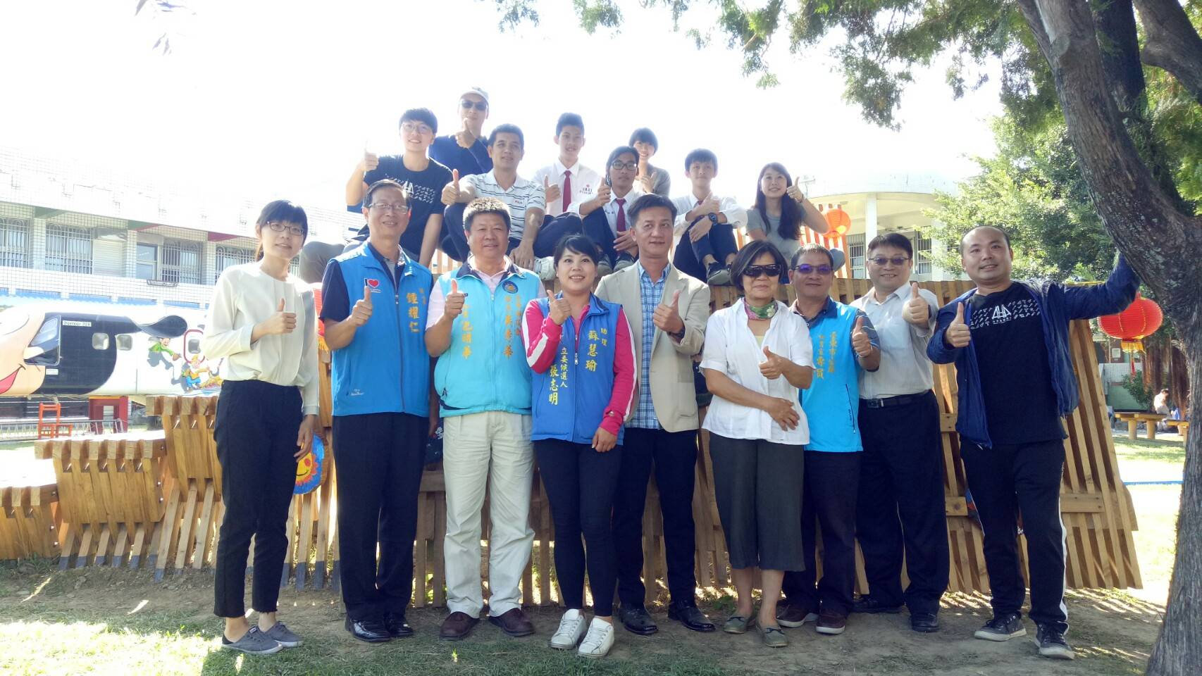 台灣義築協會與林務局、台東林管處合作於台東縣卑南國小建造了一個樹屋平台,並於今(13)日上午10時30分舉行「閱讀夢公園-國產材樹屋移交活動」,包括林務局造林生產組李建霖科長、臺東縣政府鍾耀仁秘書、縣議會、市公所及公東高工都派代表出席。活動在卑南國小管樂隊及柔道隊的表演下熱鬧開場,並由與會貴賓一起將孩童們手繪的香杉木板掛在平台上,象徵閱讀夢公園正式啟用。 為了推廣國產材應用的多元化,林務局補助台灣義築協會辦理「國產木竹材運用於人道建築之案例研究與推廣」計畫,嘗試用行動參與方式,將將國產材應用在建築上。在台東縣卑南國小、公東高工的協助下,建築師們化身行動魔法師,走進卑南國小和一群熱愛打棒球的小朋友,一起動手改造閱讀環境。選在校園廣場中的台灣肖楠大樹下規劃一處木構平台,校方將它命名為「卑南閱讀夢公園」,希望緊鄰大樹旁的木構平台可以成為孩子們閱讀、活動及休憩的夢想空間,讓孩子在親近樹木之餘,也能輕鬆閱讀、放鬆身心。 台東林管處劉瓊蓮處長代表林務局出席時表示感謝台灣義築協會的建築師們,願意下鄉服務,也感謝公東高工木工科學生及卑南國小的孩子們一起築夢、成就這件美好的事。今年國小的少棒選手們甫獲得世界少棒冠軍,隨著木構平台空間的啟用,閱讀夢公園更加充實,走進校園內,除了棒球場外,還有這個平台讓孩子可以休憩、閱讀、交流與分享。感謝過程中一起逐/築夢、參與的每一位夥伴,也歡迎社區部落的朋友們一起進入閱讀夢公園,分享生活故事。