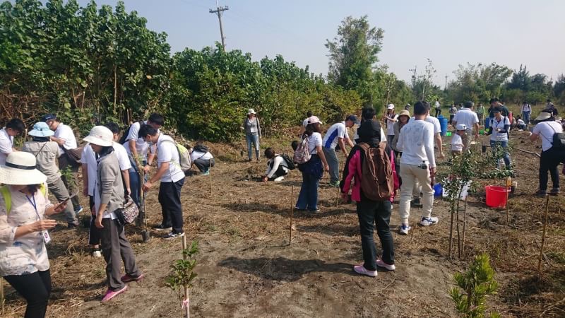 為維護森林水土保持及減少自然災害,東勢林區管理處今與台灣安斯泰來熱鬧舉辦保安林植樹體驗活動,於高美溼地周圍參與1436號防風保安林植樹,現場逾百位台灣安斯泰員工及家屬志工一起親手植下百株台灣原生植物黃荊及椬梧,與民間合作營造生態保安林,體驗保安林優美的自然環境,除瞭解保安林的重要性與環境保護外,透過保安林植樹與自然體驗,提升大家對於環境的認同感。 1436號保安林鄰近高美濕地與大甲溪出海口,主要作用為減少遭受風砂之吹襲、保護海濱區域農田等,發揮森林國土保安效用,因此需要人手共同營造生態保安林。東勢林區管理處及台灣安斯泰公司於今(11/16)日帶領上百位台灣安斯泰員工及家屬一起植樹,雙方合作攜手共同營造生態保安林。林管處也現場說明保安林之緣由、保護對象與植樹方法,讓企業更認識保安林及其重要性,並能夠更加瞭解植樹技巧。 東勢林管處表示海岸保安林可抵禦強烈風襲,並且保護我們人類脆弱的家園,因此透過植樹營造功能健全的生態保安林,除了可提供民眾保安林的生態體驗外,未來對經營維護保安林,有很大幫助。