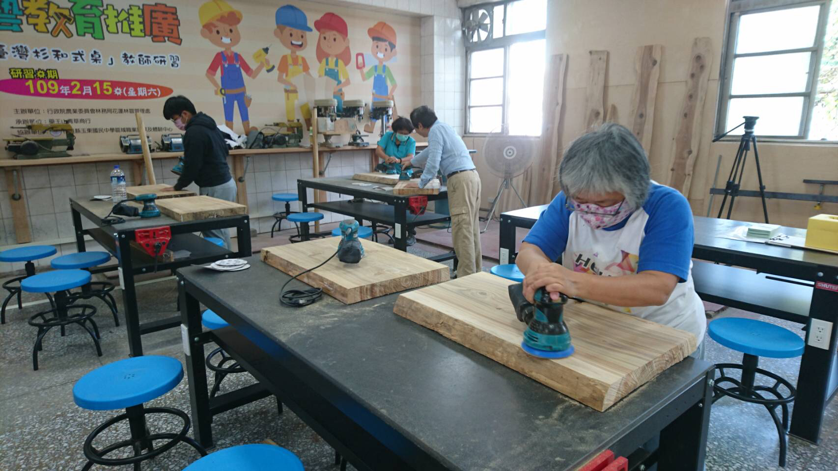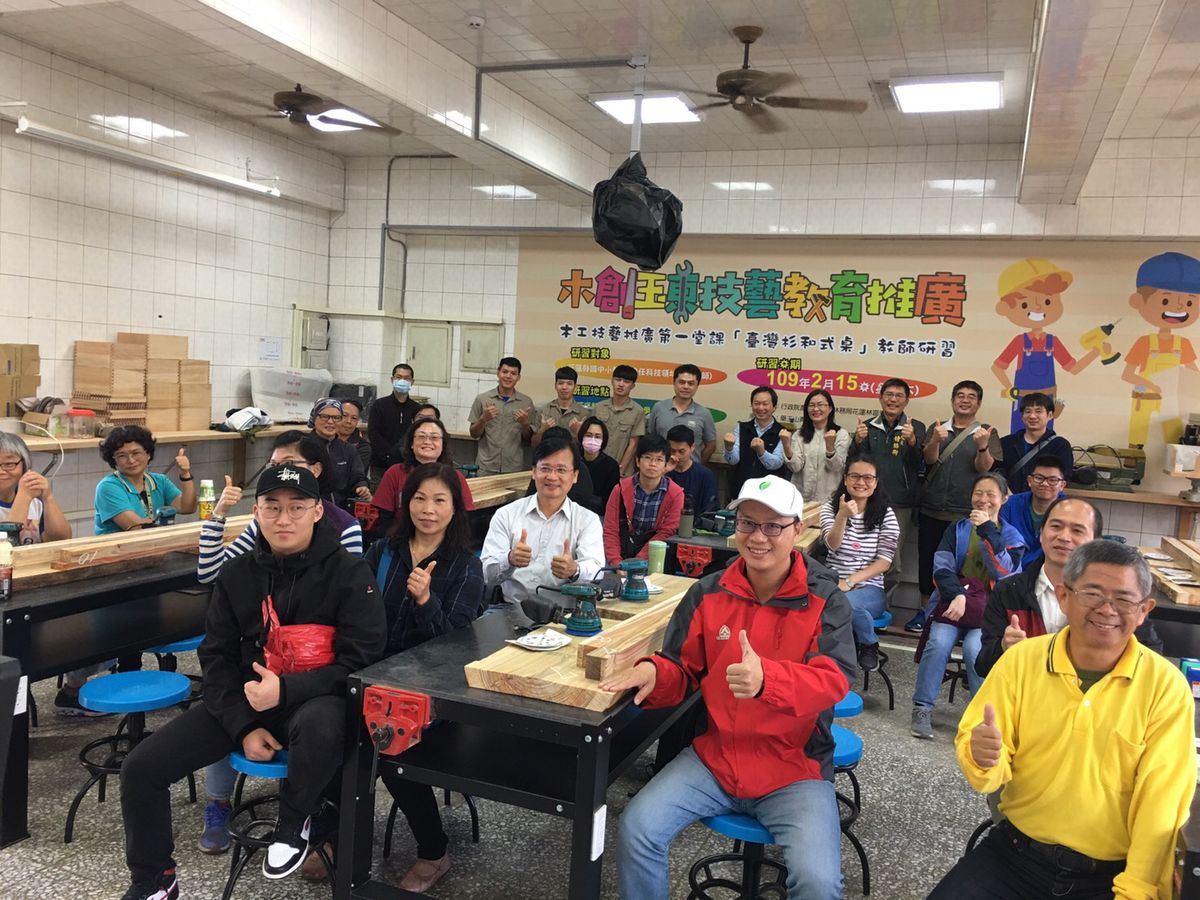 花蓮林區管理處於109年2月15日(星期六)假花蓮縣玉東國中,辦理「木創玉東技藝教育推廣-臺灣杉和式桌DIY研習」,使用當地人工林疏伐臺灣杉,製作美感與實用兼具的和式小木桌。本研習參加對象為科技領域的教師,希望透過研習讓學員瞭解國產材的特性並善用其優點,進而推廣國產材的美。 林管處長楊瑞芬表示,辦理「木創玉東技藝教育推廣」是為了推廣國產材,同時協助偏鄉畢業的青年能夠在地就業,活化農村經濟,同時解決社會層面與生活層次。 林木屬於可再生的資源,選用國產材產可節能減碳,林管處將持續落實推廣國產材,希望以需求帶動生產,使木工技藝傳承,林業振興永續發展。
