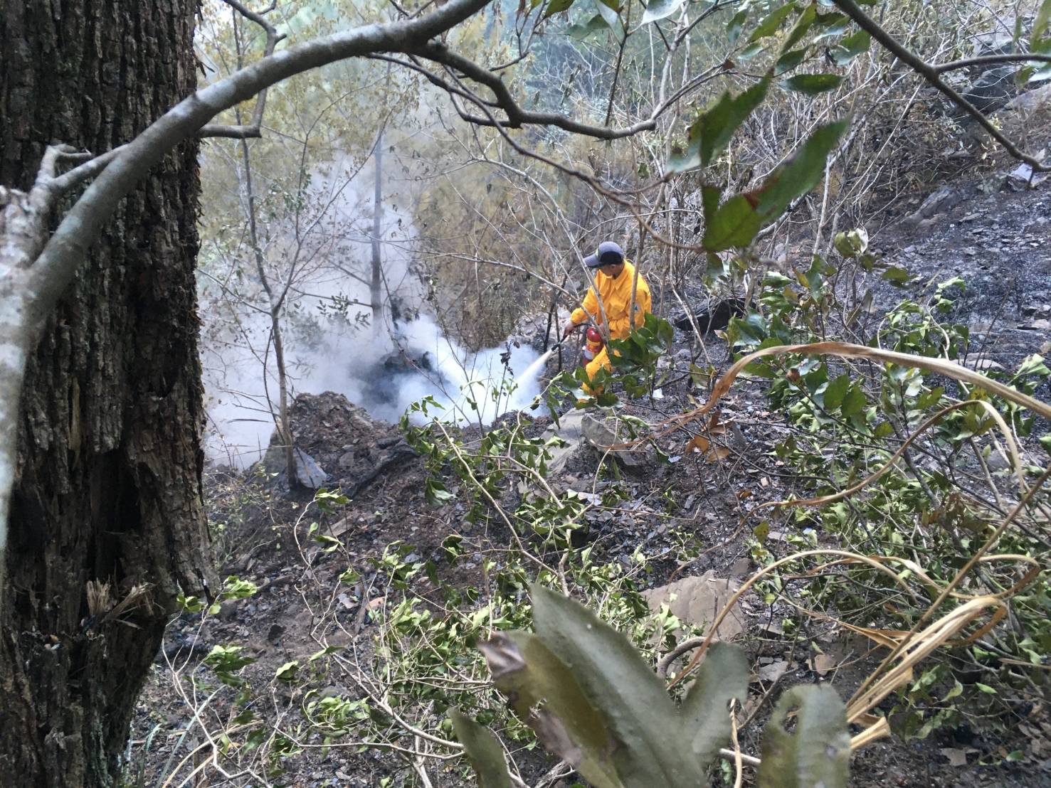 八仙山事業區第95林班地(台八線臨37便道5.3K處)於昨(2/20)日下午發生森林火災,東勢林區管理處接獲通報,迅即調度25位國家森林救火隊弟兄奔赴火場,進行地面直接滅火。成功於今(2/21)日上午8時控制火勢,目前殘火處理中,粗估燃燒面積約有0.2公頃。 火場林相為針闊葉混淆林,海拔高度1,100公尺以上,地勢陡竣,坡度超過60度,人員行走困難須架設繩索攀爬,且易有落石滾落,林務局國家森林救火隊克服險竣地勢抵達火場,並忍受火場濃煙,開闢防火線長150公尺、寬2公尺,阻絕火勢向外延燒外,並進行地面直接滅火,處理燃燒倒木,2天1夜持續救火,不畏艱辛即刻動員,成功控制森林火災,保護珍貴國土及森林資源。 東勢林區管理處表示目前火災發生原因尚未釐清,將交由警消單位蒐證確認起火原因,同時呼籲目前已進入乾燥季節,民眾上山請注意防火,若發現森林火災盡速通報消防單位或撥打林務局保林專線0800-000930進行通報,另森林法規定放火或失火燒毀他人之森林者,應負刑責外尚須負民事賠償責任,請大家一起維護國家寶貴森林資源。