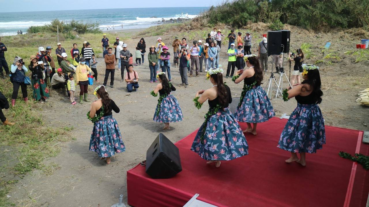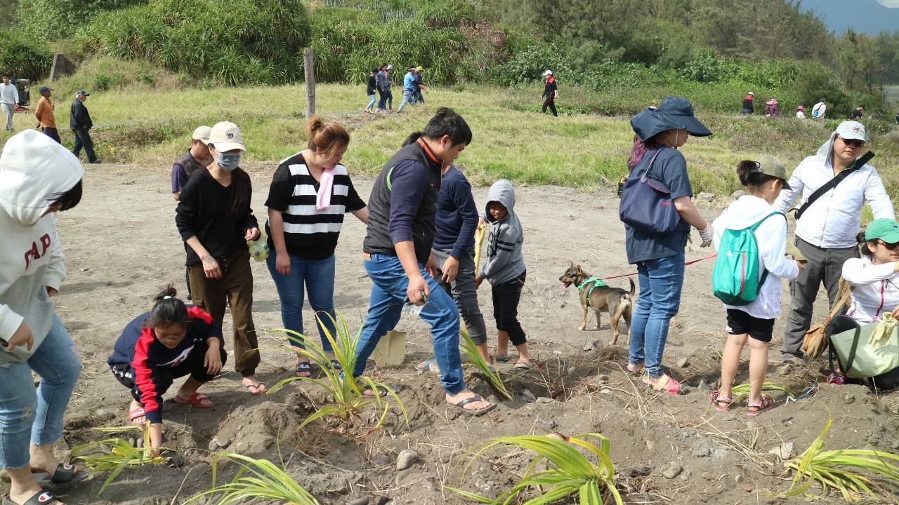微風清拂、倒影婆娑,林務局與光陽工業股份有限公司合辦的環島守護保安林活動,今(22)日午後來到了臺東縣成功鎮都歷海灘,各地響應的輕檔車車友、臺東林管處同仁、都歷部落與成功三民社區居民及攜家帶眷熱情的民眾近200人齊聚在都歷海灘(部落稱是船下海的地方)及第2514號防風保安林,一起植樹、護樹和淨灘活動。