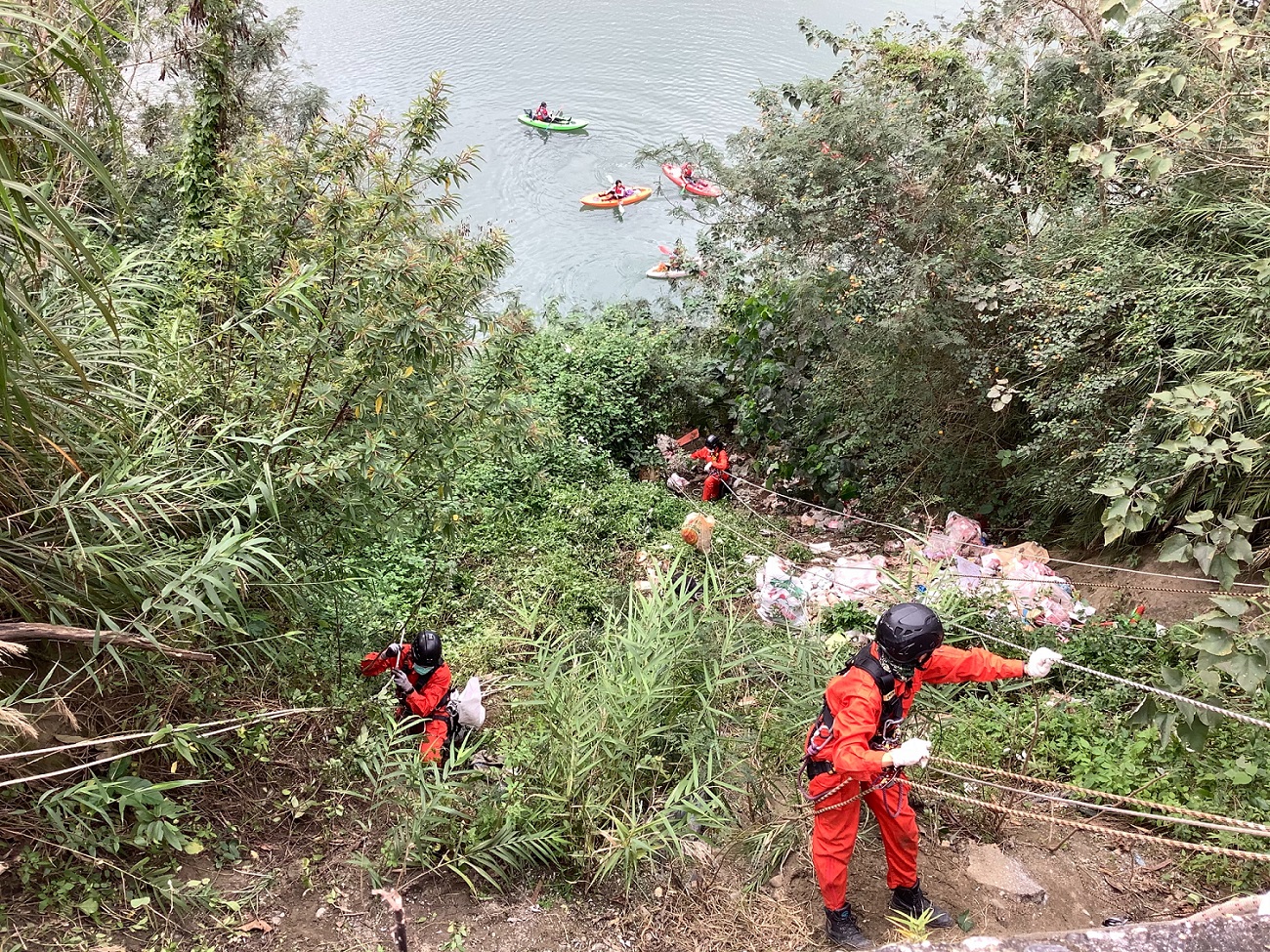 綠色和平(GREEN PEACE)組織夥伴號召20多位志工結合花蓮林管處南華工作站在壽豐鄉鹽寮村一起淨山,為森川里海盡綿薄之力,總共清出近400公斤的大小型廢棄物,令人驚嘆,呼籲民眾不要隨意丟置廢棄物,否則將依森林法開罰,罰鍰最高可達30萬元。 壽豐鄉鹽寮村縣道193線24.25K,鄰近花蓮溪出海口是重要濕地,屬於編號2635防風保安林地,視野景觀超佳,吸引大量遊客到訪,因任意丟棄垃圾在草叢或岩壁間,不僅造成生態汙染,也嚴重影響野生物生存環境,綠色和平組識號召志工與林管處同仁拿出平日攀岩、垂降的專業來淨山、淨河,先以繩索沿著山壁垂降清理環境,接著出動獨木舟在花蓮溪打撈漏網垃圾,十八般武藝全上場,清出各式各樣商及家庭垃圾,直呼太不可思議! 綠色和平組織志工表示,此次淨山活動清出很多店家丟棄飲料杯等垃圾,有些可以回收再利用,或減量使用,強調減塑才是根本,不但節省成本也可以讓環境更美好,一舉數得。 林管處秘書黃碧雲表示,感謝綠色和平志工們、花蓮戶外亦溯及黑潮基金會提供獨木舟與專業人員協助,還有壽豐鄉公所清潔隊的幫忙,共同為環境出力。再次呼籲,民眾貪圖便利隨意棄置垃圾,會造成生態浩劫,汙染溪旁良田農作,河流及海洋無一倖免,希望民眾在享受大自然美景當下,千萬別為了一時的便利,造成生物的悲劇。 林管處也強調,在森林區域棄置垃圾或廢棄物,依森林法第56條之1,可處新台幣6-30萬元之罰鍰,如情節嚴重,甚至可依廢棄物清理法,處1年以上5年以下之有期徒刑,請民眾勿以身試法。