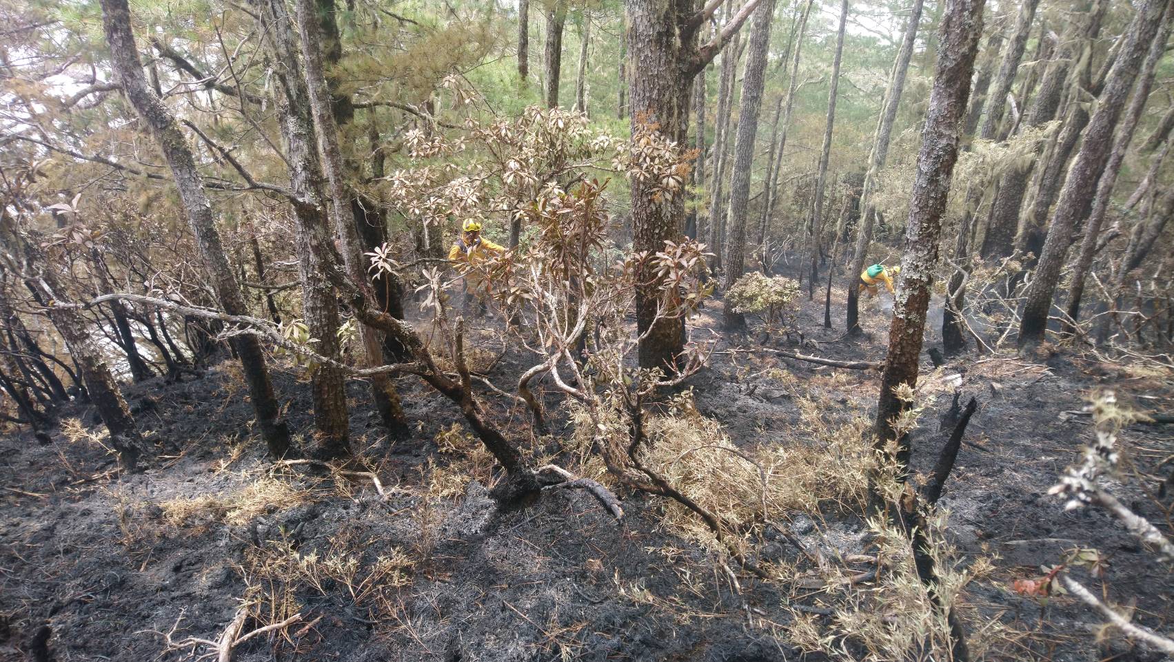 花蓮林區管理處玉里事業區第32林班地森林火災3月30日發生後,因天公不做美,雲層過厚,阻撓搶救作業,空勤運補及空勘極度艱辛,從地面挺進的森林護管員則面臨高山、峭壁險阻,索性在空中及地面二路合作克服困難後,森林護管員終於在昨(3)日順利挺進火場,並在今日下午3時15分將延燒了6天的林火完全撲滅,搶救任務正式告一段落。後續將計算3.48公頃燃燒面積內林木被害材積數量與損失價值。 林管處表示,空勤總隊4月1日在沙武巒山附近空投物資成功後,昨天亦順利完成2架次物資空投及空勘作業,為已體力透支的運補人員及前線滅火森林護管員注入一股強心劑。為加速滅火,空勤總隊黑鷹直升機今日上午10時再從德興棒球場起飛,於火場附近上方投放火耙、工具鏟、水及防火口罩等約80公斤滅火物資,從空中支援在火場裡不畏高溫危險執行滅火任務的森林護管員。 「地面部隊」森林護管員則兵分三路,從火場西、中、東側分頭進擊撲滅殘火。因火場今早已無明顯樹冠火竄出,但地面火仍持續悶燒,森林護管員採用地毯式殘火處理方式,確保不放過任何零星火苗;也利用阻隔燃料的方式,徹底消滅餘燼。加上今日山區濕度高、風速低,滅火十分順利,火場終於在上午11時已全面控制,無延燒之虞;下午3時15分完成餘燼清理工作,森林護管員將繼續監測火場,確保無任何殘火復燃後撤離火場,人員撤離也是一場硬仗,需要2至3日才能回到林管處各處所完成撤離計劃。 林管處統計,自3月30日起累計動員包含森林護管員、ICS(災害應變指揮體系)精英小組、空勤總隊、保七總隊第九大隊、花蓮縣消防局、花蓮縣後備指揮部、陸軍花東防衛指揮部、陸軍航空特戰指揮部飛訊部、第二作戰區指揮部、各工作站及運補人員超過百人,出動空勤黑鷹直升機13架次,完成5次、10噸水量的空中灌灑作業,人力、物力及財力成本極高,林管處在滅火任務結束後將請保七總隊查緝火首,一旦查有不法,必定依森林法第51條及民法相關規定究責,另瑞穗林道10K也結束管制,林管處呼籲民眾入山要小心用火,以免因小疏忽釀成森林火災嚴重破壞生態。