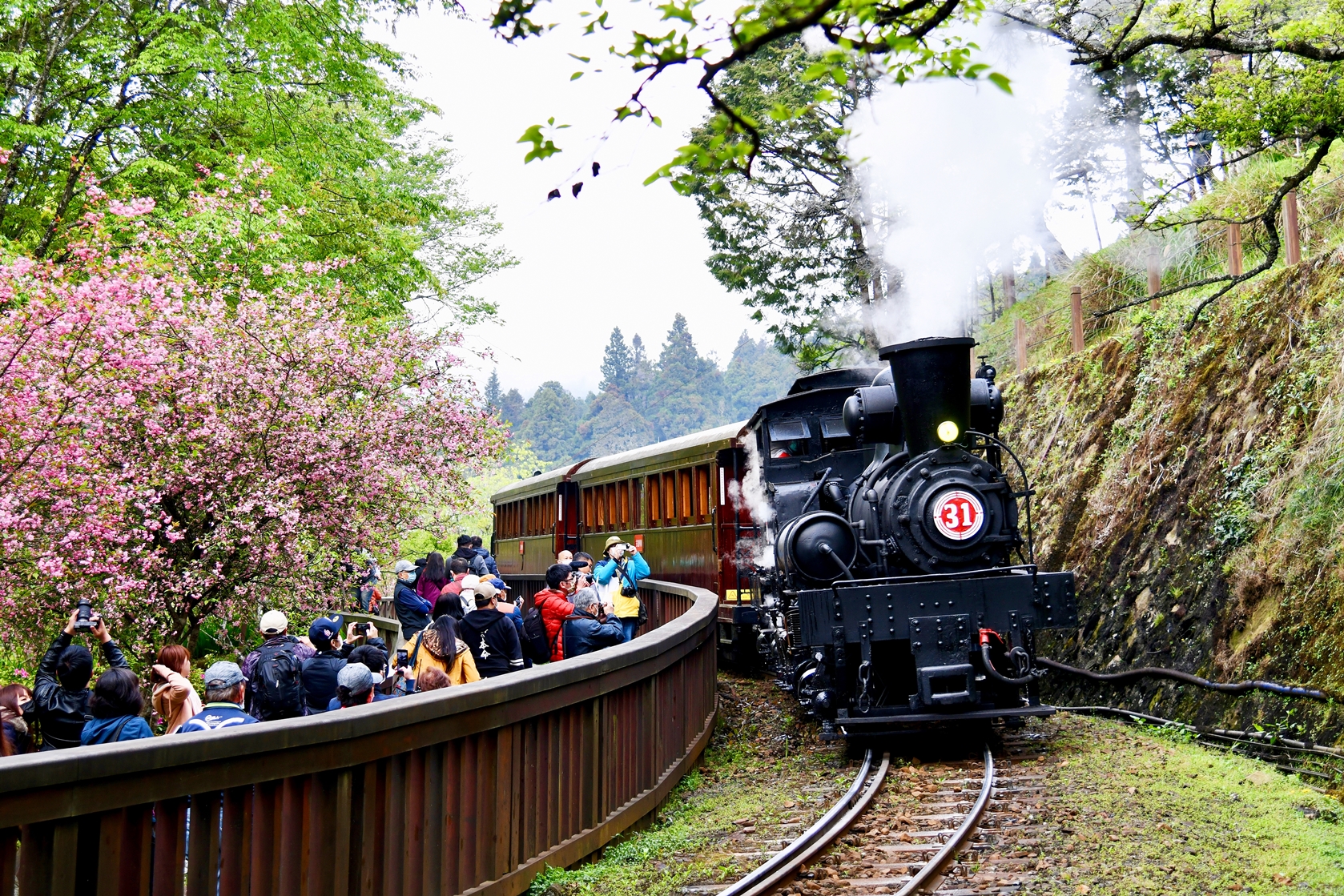 林務局阿里山林業鐵路及文化資產管理處(林鐵及文資處)於今(109)年花季期間推出《綻放。舞櫻》、《SL-31蒸汽火車》主題列車,精心規劃林鐵獨家限定遊程,並有攝影達人分享取鏡秘訣,帶領遊客體驗全臺僅有的高山櫻花鐵道旅行,一推出即搶手秒殺! 活動過程中,參與者拍攝許多珍貴畫面紛紛與林鐵及文資處分享,為保存林鐵珍貴畫面,林鐵及文資處特別辦理呈現林鐵多元視角之美「2020林鐵花季主題列車」影像徵集活動,即日起徵件至109年5月31日截止;將擇優錄選30件影像及影音作品,作於運用及設計開發各式商品,行銷推廣阿里山林業鐵路。 林鐵及文資處表示,今年花季推出以柴油機關車頭附掛檜木車廂的《綻放。舞櫻》主題列車,停靠弧形站體的對高岳車站,木棧道的粉色櫻襯著紅色柴油機關車,更顯得亮眼與風采;有別以往花季蒸汽火車僅行駛沼平線區間,《SL-31蒸汽火車》主題列車則特別安排國寶級蒸汽火車行駛祝山線,除有星光大道之稱的「沼平線S彎道」定點擺拍外,行經十字分道轉對高岳至祝山間,全線蜿蜒於海拔兩千公尺高山上,沿途時有雲海瀰漫,氣象萬千。而全臺鐵路最高點祝山車站,自興建完工後伴隨民眾旅遊記憶30餘載,為提升祝山線營運品質,積極改善無障礙空間與設施,預定於今(109)年進行改建計畫,在SL-31鳴笛聲中,旅客於祝山車站進行巡禮,留下珍貴的歷史鏡頭。 本次影像徵集包含影像(1200萬以上像素之JPEG格式)及影音(HD等級以上原始檔,並以MOV、 MP4、AVI、WMV等案格式)兩類,作品經入選者,將獲贈影像使用費(每張新臺幣600元整)及林鐵熱賣職人手札1冊。 徵件訊息詳林鐵及文資處官網(https://afrch.forest.gov.tw/all-news)、FB粉絲團(https://www.facebook.com/AlishanForestRailway.Taiwan) 或洽(05)2779843#362李小姐。