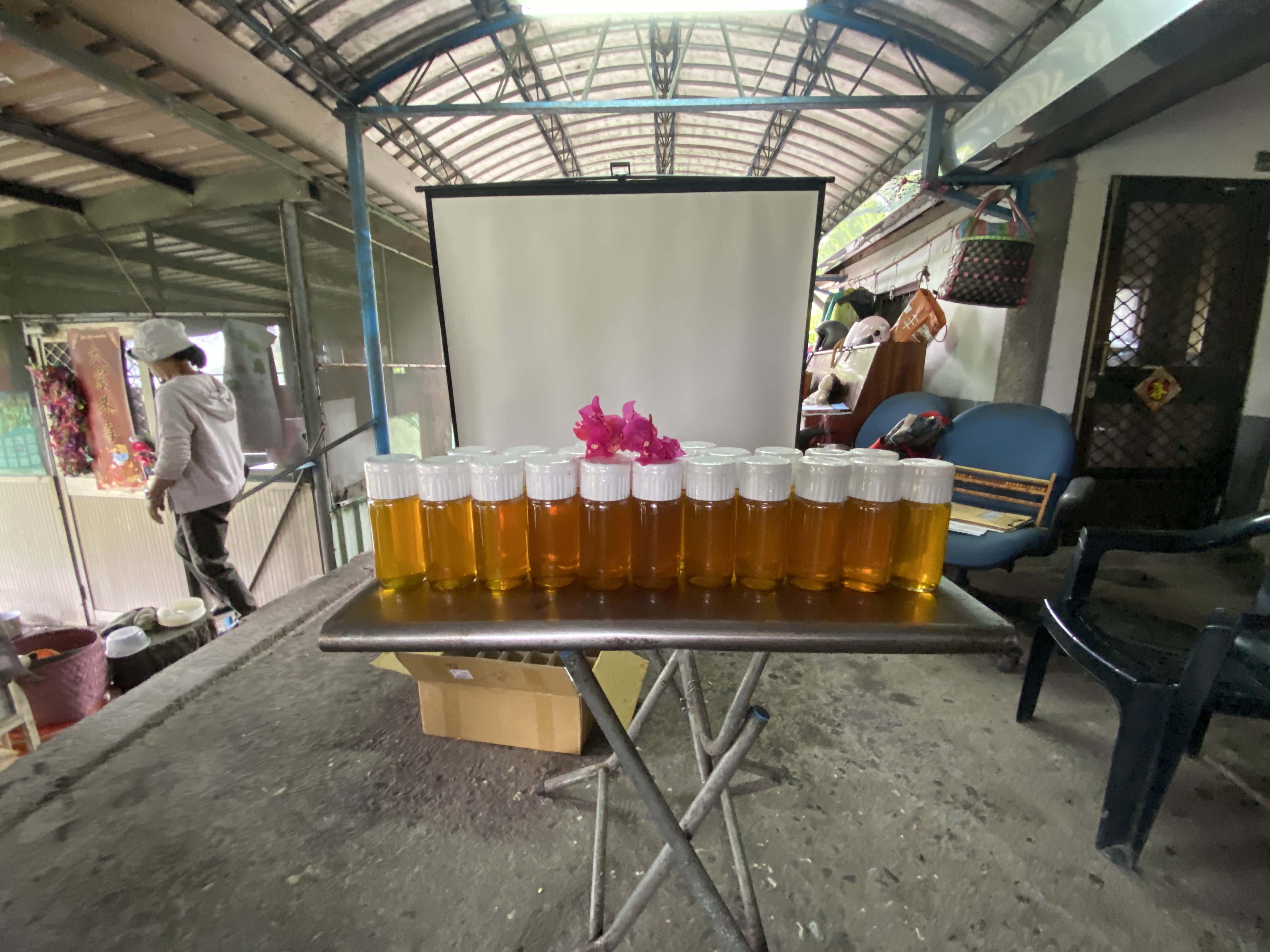 林務局臺東林管處輔導卑南鄉利嘉社區進行為期2個月的林下養蜂技術培訓課程,昨(24)日進行最後一堂課,由學員們親手採收蜂蜜,看著一瓶瓶澄黃色的蜂蜜在手中產出,社區夥伴們個個笑得合不攏嘴,林下養蜂課程第一階段也順利結業,未來也期望森林蜂蜜能成為利嘉社區特色產業。