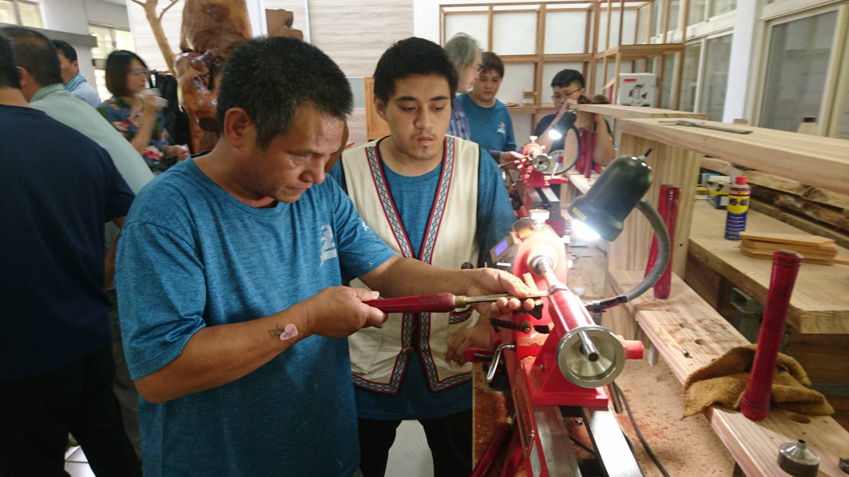 花蓮林區管理處於5月28日辦理木工車床基本操作及安全維護研習,邀請木之筆藝工坊陳武勇(A-DING)老師,教導利用木工車床及國產材手工製作具泰雅族風格的木筆,盼學員將來能應用所學投入木工產業,發揚國產材利用,帶動地方創生。 林管處為推廣國產材多元化應用,發展地方創意產業,邀請周邊部落伙伴,利用花蓮地區人工林木材,在車床上巧手車出獨具特色的木筆。本次研習,共有加灣部落交流協會、吉安鄉太魯閣發展協會、花蓮市國福社區發展協會、林田山林業文化協進會等社區林業伙伴及林管處同仁共35人參加。花蓮縣原住民生態產業推廣協會頭目徐從表示,林管處辦理製筆研習,可以讓原住民朋友了解國產材工藝價值,並融入原住民特色,增加部落收益,希望能多加推廣。 林管處副處長王怡靖表示,本次參與學員來自花蓮北、中、南原住民部落,對於台灣木材及木工就別具情感及興趣,經由木工車床製筆教學,利用小塊不起眼的木料,製作出獨一無二、具有個人特色的國產材木筆作品,成就感十足。 研習課程內容實用有趣,學習熱絡,未來將應用在部落活化產業上。林田山協進會理事長林玉榮表示,本次課程學習後,林田山社區協進計畫將木筆製作DIY加入當地遊客體驗課桯,希望能促進地方產業收益。