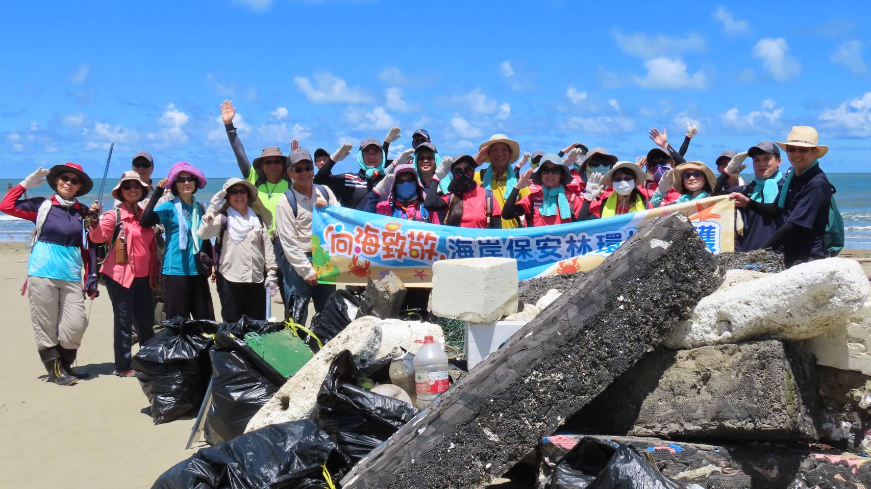 林務局嘉義林區管理處結合國家森林調查監測志工今(17)日於臺南市北門雙春編號第2018號飛砂防止保安林,辦理「向海致敬」淨灘活動,共清理海岸垃圾1,200公斤,以實際行動,讓雙春海岸重回美麗面貌。 結合公私協力 共同守護海岸保安林 嘉義林管處表示,該處轄管海岸保安林計10號,總面積約702公頃、臨海長度約28公里,相鄰海岸、海域多為民眾休閒遊憩之場所,因海流帶來海漂垃圾堆積在沙灘或保安林,或是民眾隨意棄置垃圾,往往讓美麗的海灘大為失色。為響應行政院「向海致敬」計畫中的海岸保安林環境維護,該處特別結合國家森林監測志工共同淨灘,日後並將由志工夥伴排班針對臺南市將軍區、北門區、七股區、安平區等多 處海岸保安林易遭棄置垃圾熱點進行巡護,以維護海岸環境。 森林監測志工 上山下海無所不能 林管處強調國家森林調查監測志工原本任務主要在深入林班進行森林巡護,執行濫墾、盜伐等不法案件通報工作,今天更走向海岸「向海致敬」,肩負海岸保安林巡護重任,真是所謂「上山下海、無所不能」。海岸淨灘不僅能提供國人乾淨的休閒環境,更能幫助海洋生物清淨家園,因此也特別呼籲國人一同向海致敬,隨手做環保,垃圾不落地,共同為保護美麗的海岸盡一份心力。