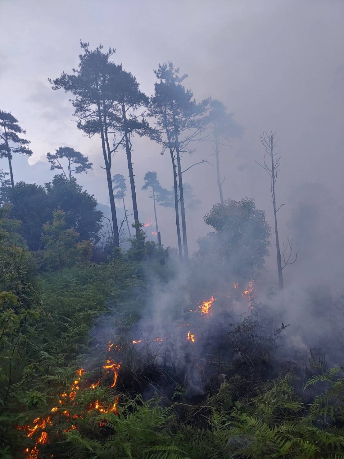 109年6月24日約17時,位在台中市大甲溪事業區第38林班地傳出森林火災,東勢林管處立即啟動森林火災搶救機制,迅速動員森林護管員45名組成機動救火隊前往火場,從地面直接進行火災撲救工作,並請求空中勤務總隊、退輔會榮民森林保育處、雪霸國家公園管理處支援,目前共計投入人力達70人,全力合作撲救中。 東勢林區管理處表示,火場位於台7甲線52K陵后宮對面山林,目視多濃煙,面積估算約2公頃,屬針闊葉混合林,多燃燒硬草類植物與矮灌叢等輕質燃料,目前空勤直升機投水灌灑4次,持續灌灑中,地面救火人員於火場東、西、南邊開闢防火線,惟現場坡度約50度,多處崩塌,地形非常陡峭,環境極為險峻,東勢林管處機動森林救火隊員在火場高溫狀態下,利用砍刀及火耙移除防火線底下的松針及枯枝落葉,阻斷燃料避免火勢擴散,並處理燃燒未熄樹頭,空中地面全面撲救。 東勢林區管理處表示目前火災發生原因尚未釐清,待火勢撲滅後將交由警消單位蒐證確認起火原因,同時呼籲大眾,搶救森林火災期間,勿進入山區,俾利現場人員搶救工作。