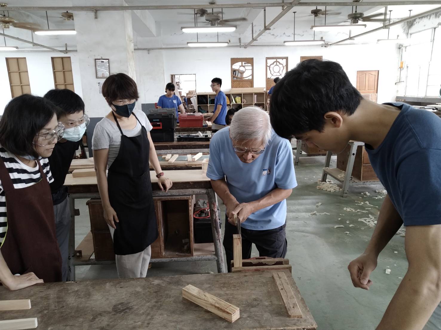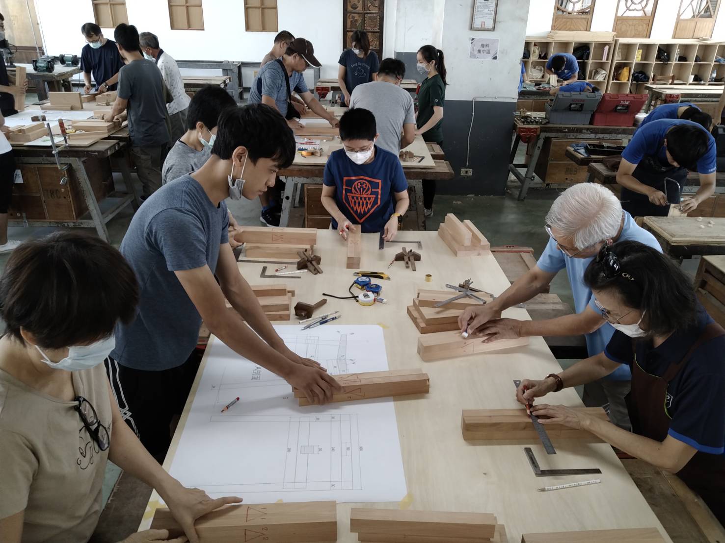 臺東林區管理處與公東高工合作開設假日木工學校「推展國產材用於家具製作與應用」課程,於109年8月14-16日進行為期3天、21小時的木工課程,今年的課程同樣受到民眾熱烈參與,在開放報名的第2天就報名額滿,感謝支持國產材應用課程的學員們。8月14日開課當日,由臺東林管處副處長吳昌祐出席開訓,並與參加課程的學員們分享林務局現正推廣國產材產業的現況及國產材驗證標章制度,從多面向推動國產木竹材之使用,提高國產木竹材自給率與市場能見度,讓國人認識及合法使用國產材,建立良好的永續林業利用模式,然而透過辦理木工應用課程是最直接讓民眾接觸認識國產材的機會,藉由本次的課程,特別由張家瑞主任所率領的公東高工專業團隊,透過近身教導學員們進行全木結構、全榫接工藝等加工技術教學,今年課程一定會讓大家收穫豐碩,也能在課程結束後將自己努力製作的作品帶回家。