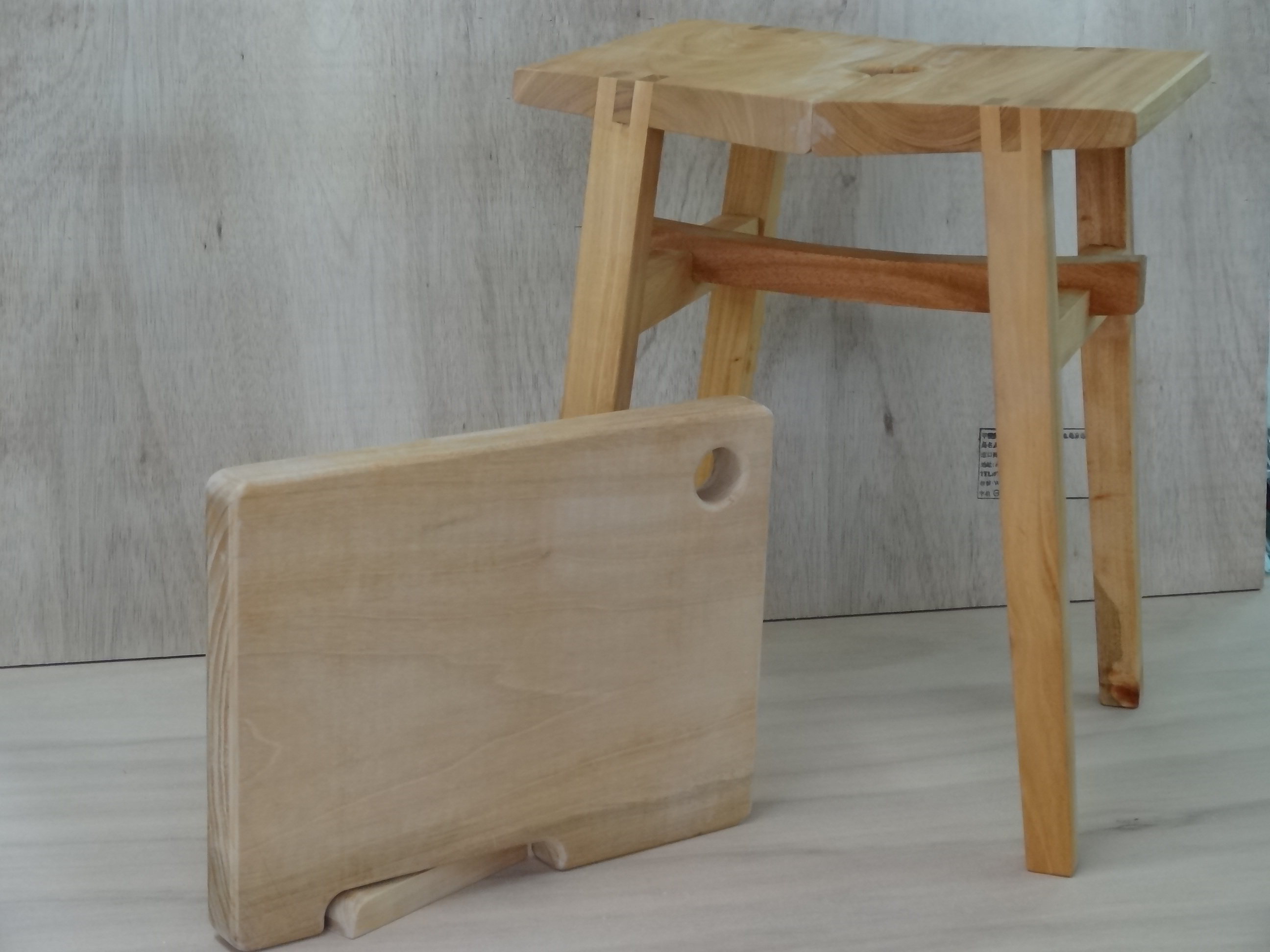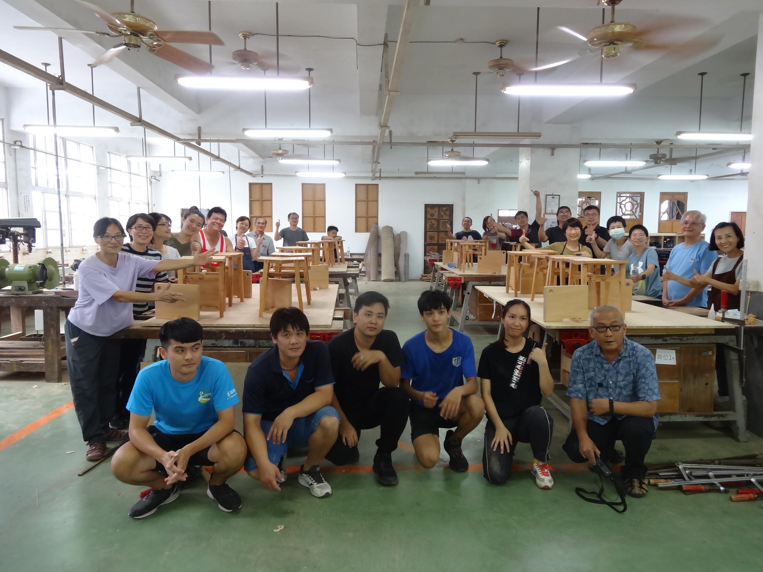 在3天的課程中,公東高工張家瑞主任針對課程內容及製作椅凳、砧板的工法講解及使用材料桃花心木的介紹,學習使用各式畫線工具、結構運用及實務加工、認識木工手工機具及使用等課程,讓學員們認識初級基礎木工知識;課程中學員分成4組,由各木工助理小老師帶著分組學員製作計畫作品,從試圖與加工畫線及手機具的使用等,讓學員了解從一片木材到一件作品所要具備的條件及作法,今年的木工作品製作時,使用多種木工工具,如圓盤機、垂直角鑿、前臂吊具、平鉋機、花鉋機及CNC等10多種,加上各組小老師課程中充分解說,也不吝教授木工製作時的小技巧及經驗,在實作過程中,學員間也相互交流討論對作品製作的心得,激發了大家對手作木工的興趣,讓參加學員們不僅增加了許多木作體驗機會,也建立了難能可貴的同窗情誼;今年的木工課程在8月16日順利圓滿結訓,學員們也在課程結束後進行成果展示,對於自己完成的作品滿意指數超高,加上作品雷雕「台灣木材」標章及「學員代號」,更成為獨一無二的桃花心木椅凳。學員們紛紛表達希望能預約參加明年度的木工課程,顯見辦理透過建立學員製繪圖基本能力及實際木工手作課程,確實吸引了有興趣的民眾關注及參與,後續臺東處也會評估後續增辦的可行性。