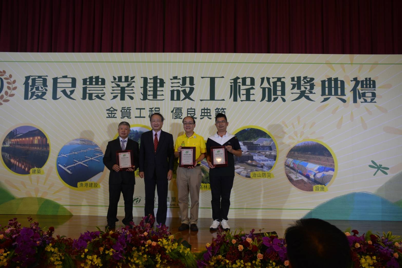 向來都是農業工程領域最高榮譽的優良農業建設工程獎,選在今日(8/26)舉行頒獎典禮,林務局嘉義林區管理處處長張岱率治山課同仁及得獎廠商一行躬逢其盛。本次108年度優良農業建設工程獎,嘉義林管處以5件優等及5件佳作的優異成績奪得十項大獎。其中「阿里山森林遊樂區木蘭園排水工程」更獲得公共工程委員會金質獎優等的殊榮,可謂本屆的最大贏家。 嘉義林管處表示,近年來該處對於主辦工程施工品質嚴格把關監控,並率先全面實施工程生態檢核,在施工期間同時尋求生態環境的永續發展,因而屢創佳績,獲得外界一致肯定。去年(108年)獲獎數更是參賽歷屆以來最高,對於單位同仁可說是莫大的榮耀。 嘉義林管處表示得獎工程分別坐落為阿里山、大埔及玉井等事業區,大部分皆為人煙罕至的山林野溪,本著國土保安及綠色工程的精神,在籌備、設計、施工、驗收各階段中,不斷諮詢專家學者及環保有志之士的意見,以求完善每項在建工程。優良農建工程獎的豐收,證明嘉義處在落實生態友善機制與維持工程品質中取得平衡,並獲得了不錯的成果。 嘉義處表示,得獎固然充滿喜悅,但不會因此自滿。獎項雖然是肯定,但只是個過程,該處真正的目標仍然是國土的長治久安與環境的永續保存,並希望更多的有心人士可以一齊來參與、督促,打造一個更美好的綠色臺灣。