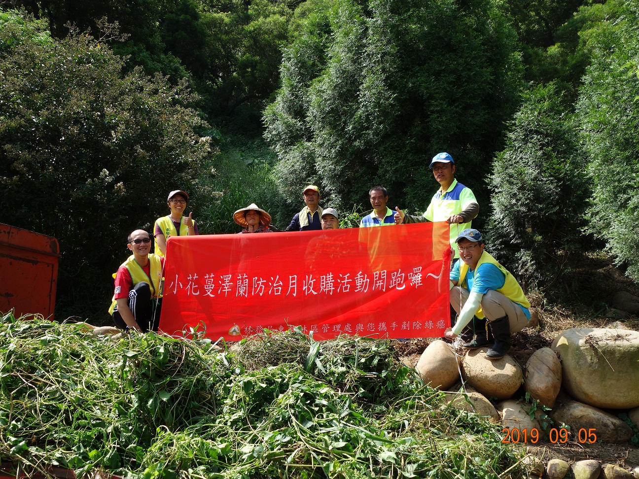小花蔓澤蘭有「植物殺手」及「綠癌」的稱號,生命力旺盛的它,每平方公尺可產生高達十七萬粒種子隨風散播,在台灣中低海拔地區橫行無阻,為防除小花蔓澤蘭入侵,林務局東勢林區管理處將於109年9月5日(星期六)上午9時30分至12時,假中華民國農會休閒綜合農牧場(台中市外埔區二崁路700號)辦理「齊除蔓‧全民讚─109年度小花蔓澤蘭啟動日活動」,宣示除蔓決心,廣邀民眾參與小花蔓澤蘭收購活動,現場將以每公斤5元的價格進行收購。 活動當日由處長蕭崇仁帶領外埔區鄉親共同宣誓除蔓護地球,另安排馬鳴國小舞獅隊、水美社區韻律舞蹈等精彩表演、小花蔓澤蘭防治解說、廉政宣導及除蔓競賽等節目,競賽拔蔓最多的團體,可獲得正隆股份有限公司后里分公司贊助的「蒲公英抽取式衛生紙」,鼓勵大家共襄盛舉一起動手防除。另現場也有設置收購處,呼籲民眾若在居家附近發現小花蔓澤蘭蹤跡,務必連根拔起、裝入塑膠袋內,送至現場以每公斤5元的價格收購,歡迎民眾、企業、民間團體一起加入小花蔓澤蘭防治工作的行列,共同維護生態環境。 東勢林區管理處指出,小花蔓澤蘭葉子呈現「心型」,原產於中南美洲,為一年生攀爬植物,其繁殖力強盛、不易根除,常藉由莖蔓攀附纏繞原生植物,遮蔽陽光,使原生植物無法行光合作用而死亡,當林木大面積遭其侵害死亡後,林地將裸露而失去保護力,再遇颱風、豪雨發生時恐有崩塌危險,進而危害生命財產及日常生活。為有效防除,建議在每年10月至翌年2月開花期來臨之前,進行防治工作。 東勢林區管理處自9月起將辦理一系列小花蔓澤蘭宣導及收購活動,詳細收購時間及地點,可至東勢林區管理處官網查詢,或電洽04-25150855#151。