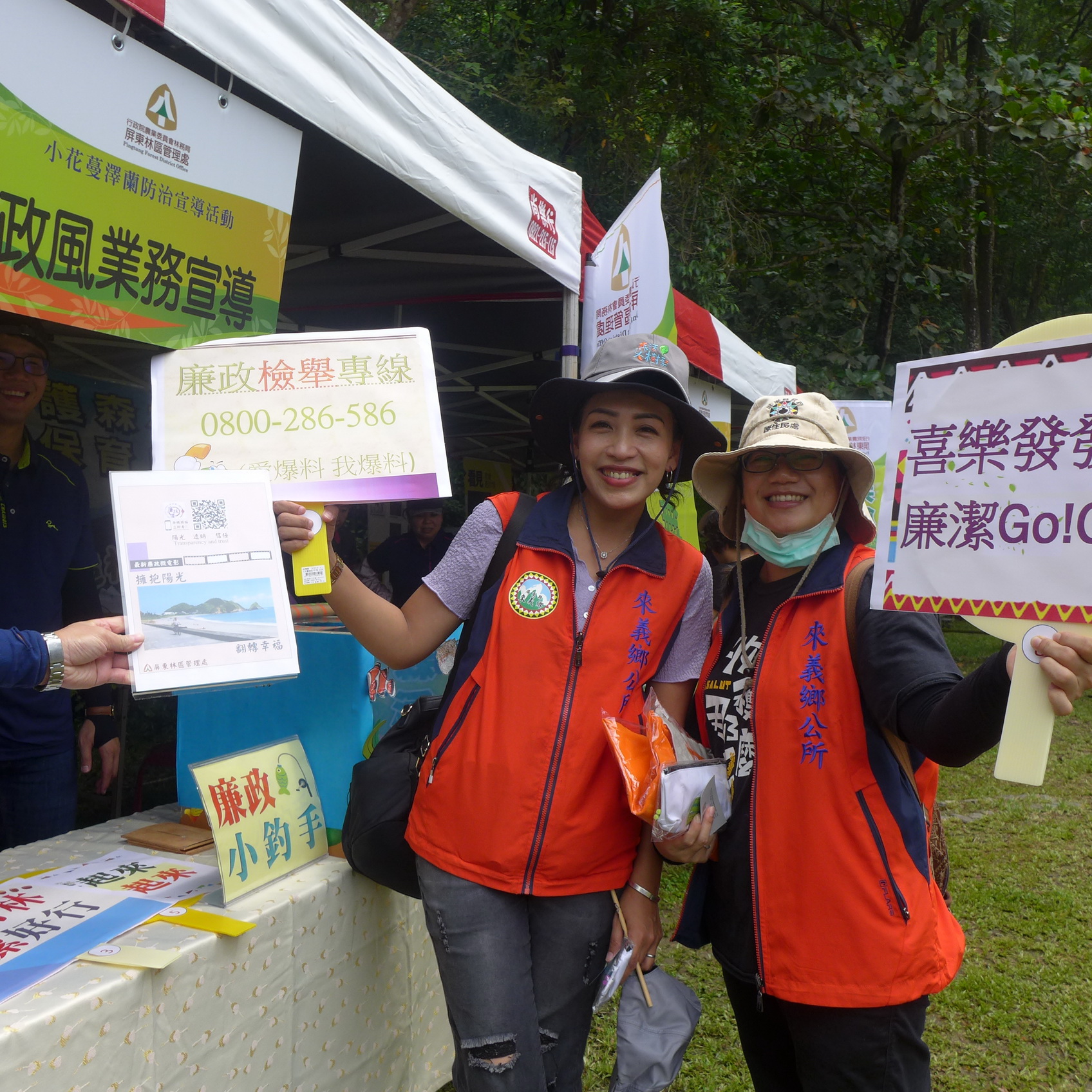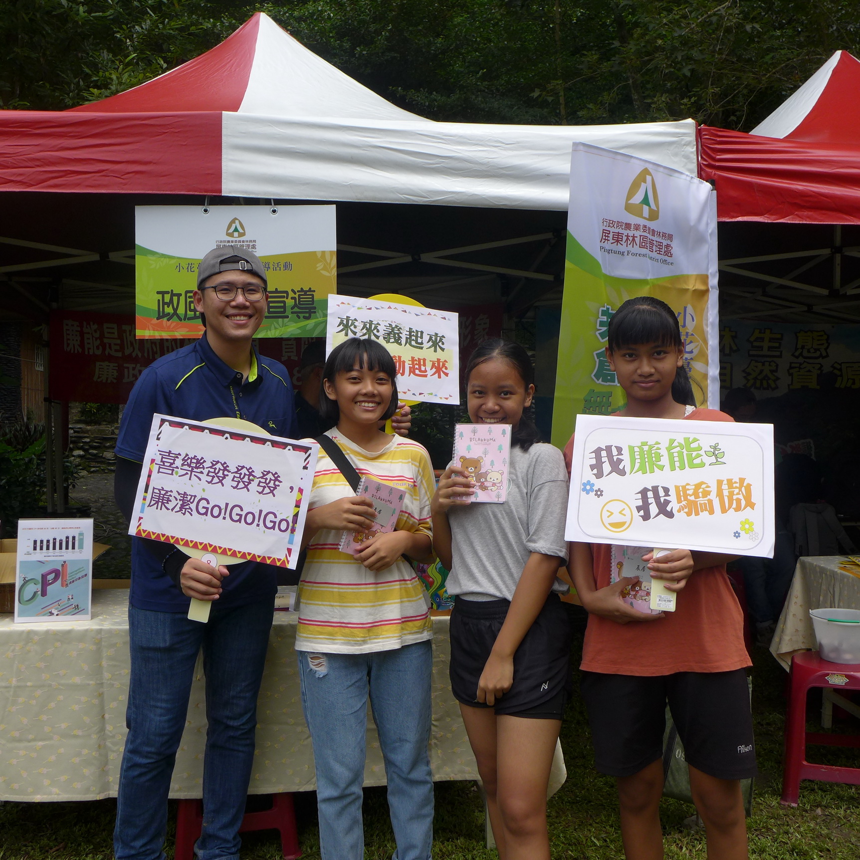 屏東林區管理處政風室上週六(109年9月5日)在屏東縣來義鄉丹林村的喜樂發發森林公園,結合今年度小花蔓澤蘭防治月辦理「生態零綠癌,清廉做伙來」廉政宣導活動,現場吸引約200位民眾參加,場面熱鬧。 為深化民眾反貪倡廉之意識,並兼顧寓教於樂之目的,屏東林區管理處政風室今年設計「廉政小釣手」之遊戲與民同樂,藉由磁石相吸之原理「釣」出象徵不同號碼之魚兒並大聲唸出其相應之廉潔標語,以表達對於廉潔價值的肯定。而為增添遊戲之趣味性,屏東林區管理處政風室更發揮巧思設計「來『來義』起來,廉能動起來」、「我愛『丹林』,廉潔好行」,以及「『喜樂發發』發,廉潔GOGOGO」等別具地方特色之廉潔標語,兼具宣達廉能價值與凝聚社區意識之作用。 喜樂發發(siljvavav),在排灣族語有「一直向上」之意,屏東林區管理處政風室深信「清廉」為國家向上發展之基石,更是社會賡續進步之驅力,在民眾監督與肯定政府的清廉作為之下,國家定能欣欣向榮,蒸蒸日上。