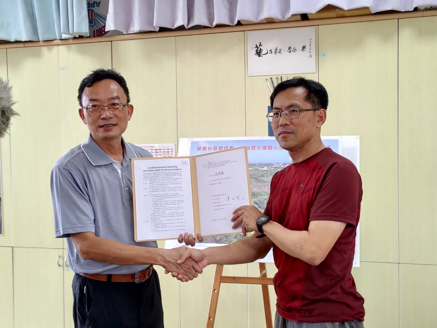 長期推動海洋教育的澎湖縣合橫國小與屏東林區管理處,於9月24日在該校辦理澎湖縣西嶼鄉第2921號防風保安林認養契約儀式,簽約後全校師生、澎湖縣政府環境保護局、澎湖國家風景區管理處與林管處員工攜手一起進行保安林環境清潔維護活動,以行動代替宣誓,讓這個認養活動更別具意義,是日活動約近200人參加,清除垃圾總重量為819.5公斤。 為達成行政院蘇院長指示「讓台灣真正是美麗之島」的政策目標,屏東林區管理處以「向海致敬」的態度持續辦理海岸線保安林之環境清潔維護,並配合林務局多年推動公眾參與保安林經營管理政策,建立保安林公私協力管理平台,期藉此保安林認養活動及學校的環境教育,傳達保安林社會公益價值,並營造友善環境,讓在地居民共享保安林多元生態的服務價值。 澎湖海岸地區之保安林自日據時期即開始劃設,多屬防風、土砂捍止、飛砂防止及漁業保安林等公益功能的保護林,其相鄰的美麗海岸更是遊客遊憩之景點,但除了民眾隨意丟棄之垃圾外,受到海洋潮流影響,海岸線的沙灘及相鄰的海岸保安林更堆積許多保麗龍、廢棄漁具、塑膠瓶罐、浮球等海洋廢棄物。為響應9月的國際清潔日,喚起大眾對海岸環境維護的重視,藉此大手牽小手的保安林清潔維護活動,更了解海洋垃圾「日日撿不是唯一,時時減方稱無雙」的精神。 屏東林區管理處張偉顗處長表示,澎湖地區因地勢平坦,風力強勁,保安林的設置,除了社會公益外,對鄰近居家環境及農田的保護,更是有正面影響。保安林不是政府的,是社區的、大家的,基於在地人「愛鄉護土」情懷,期望結合在地的人力資源,共同維護保安林的環境清潔及海廢垃圾即時通報,才能讓保安林環境更美麗,發揮有效的保護功能,成為在地休憩的好地方。