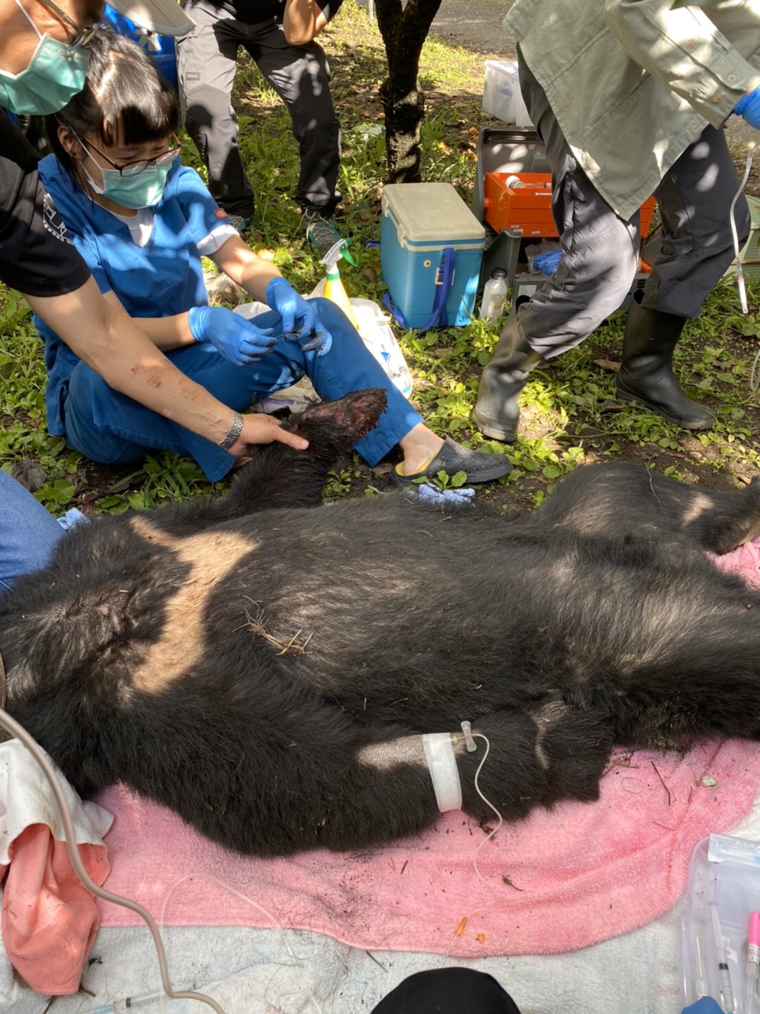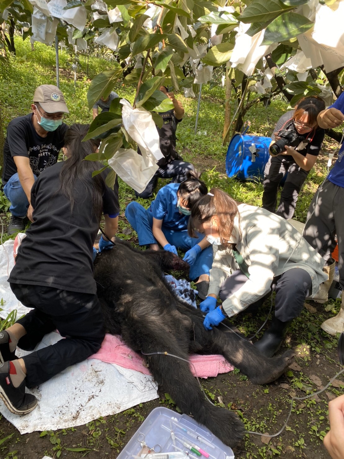 東勢林區管理處於今(10/1)日上午接獲通報,位於東卯山附近果園有一隻台灣黑熊中套索,立即啟動通報救援行動,並由特有生物保育研究中心野生動物急救站獸醫團隊派出共5人趕赴現場救援。 本處麗陽工作站及森林警察獲報後即時前往現場了解狀況,並淨空現場以避免人員危險,並減少刺激黑熊情緒,等候獸醫抵達。根據該隻誤中陷阱黑熊之耳標記號,確認此為本處107年大雪山地區黑熊之族群監測和保育宣導計畫中曾捕捉繫放之成年公熊,當時量測體長有163公分高、體重95公斤,活動範圍相當廣大,從屋我尾山、白冷山至東卯溪橫流溪一帶均為其活動範圍。推測這次是經過東卯山一帶果園,誤中農民防治山豬用之套索陷阱。 特生中心獸醫於中午抵達現場後,初步判斷黑熊目前身體狀況尚可,但較為緊張,故持續維持現場淨空狀態,在擬定救援計畫後於下午1時55分開始麻醉,目前黑熊已脫困,檢查發現前腳及口腔有受傷,應是為了掙脫陷阱造成,獸醫師在現場進行初步清創後表示,將在做好初步救傷後,後送至特有生物研究保育中心低海拔試驗站照護,再視復原情況評估野放。 本案為農民架設陷阱防治危害部分,因依據野生動物保育法第21條,野生動物如有有危及公共安全、危害農林作物者,得予以獵捕,但保育類野生動物除情況緊急外,應先報請主管機關處理。因此,農民如於私有土地設陷阱防治野豬,經發現有台灣黑熊誤入陷阱時,應即時通報主管機關處理。本案農民主動通報,尚符合規定。 本處將在台灣黑熊活動之熱點區域附近,加強民眾之防熊宣導;輔導當地居民,以電圍籬取代設置陷阱;林務局亦正推行「精準式陷阱」,如受限地形無法設置電圍籬時,農民應改用精準式陷阱,僅對山豬等特定物種進行捕捉,以避免誤捕保育類動物。