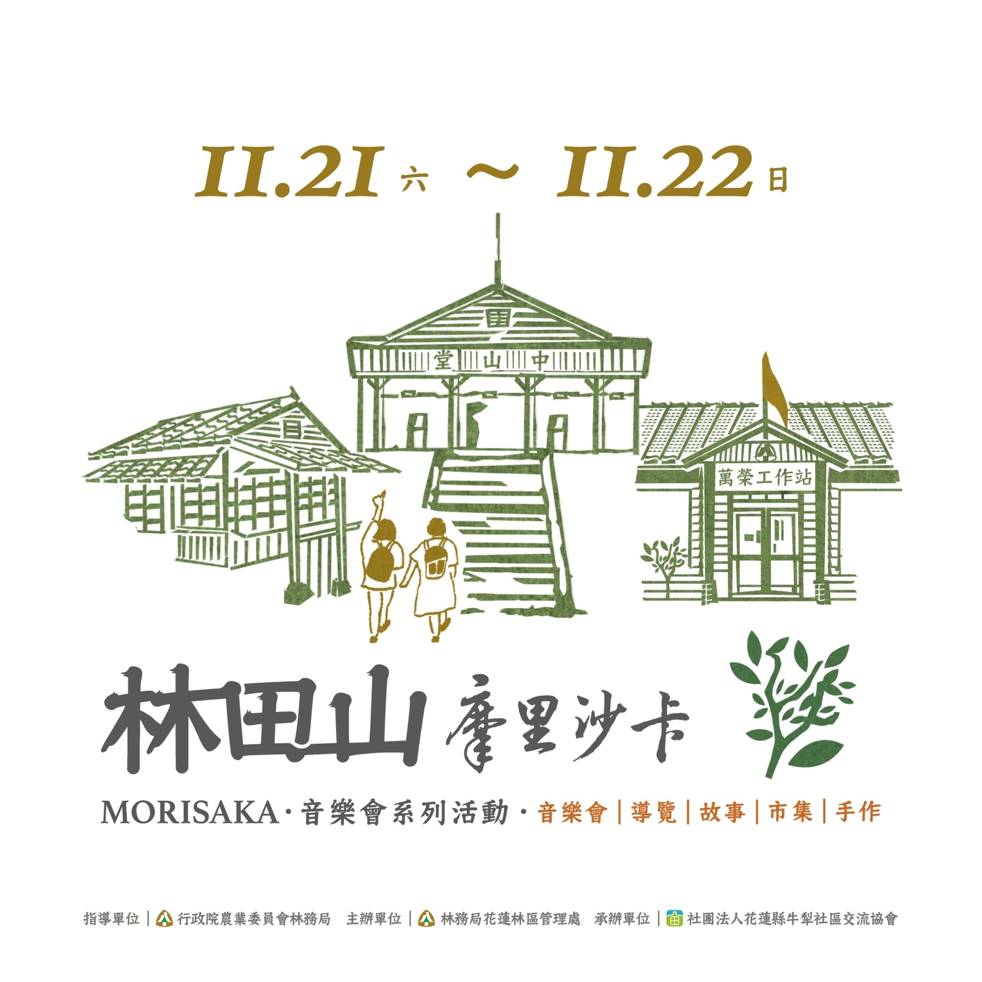 花蓮林區管理處訂於11月21、22日(六、日)在林田山林業文化園區,舉辦「林田山-摩里沙卡音樂會系列活動」,活動主題為「我的家在摩里沙卡」,從伐木員、巡山員及當地原住民文化出發,強調兩種不同但皆與「林田山」有深刻歷史淵源「家」的故事。 林管處表示,曾參與工作的伐木員,以及1980年代後執行山林巡護任務的護管員,以林田山為家,為山林保育付出極大的心力。另外百年前居於此的賽德克族人與太魯閣族人,視這座山頭為獵場、以山林為家。從當代的視野重新召集兩群返家的人,用謙卑與感念態度,共同舉辦音樂會系列活動。 21日上午10點由聲子樂集「林田山組曲」開啟序幕,生活廣場山城市集近30個友善農產、手作體驗和花東文創攤位熱鬧進行。此外,還有林場老員工說故事、馬詠恩與農男樂隊等,下午1時在生活廣場有花工原舞隊精彩快閃表演,下午3時辦理「Poda」儀式,由賽德克族人與太魯閣族人回到曾埋葬先人的康樂新邨,請部落耆老帶領族人祭祀祖先,祭告先人,我們回來了。 22日生態獵人體驗之旅,邀請部落獵人分享狩獵經驗,在不同關卡設陷阱、採野菜、認識森林生態等,也分享獵人信仰跟傳統gaya文化。活動名額有限,請於林田山林業文化園區臉書專頁報名。