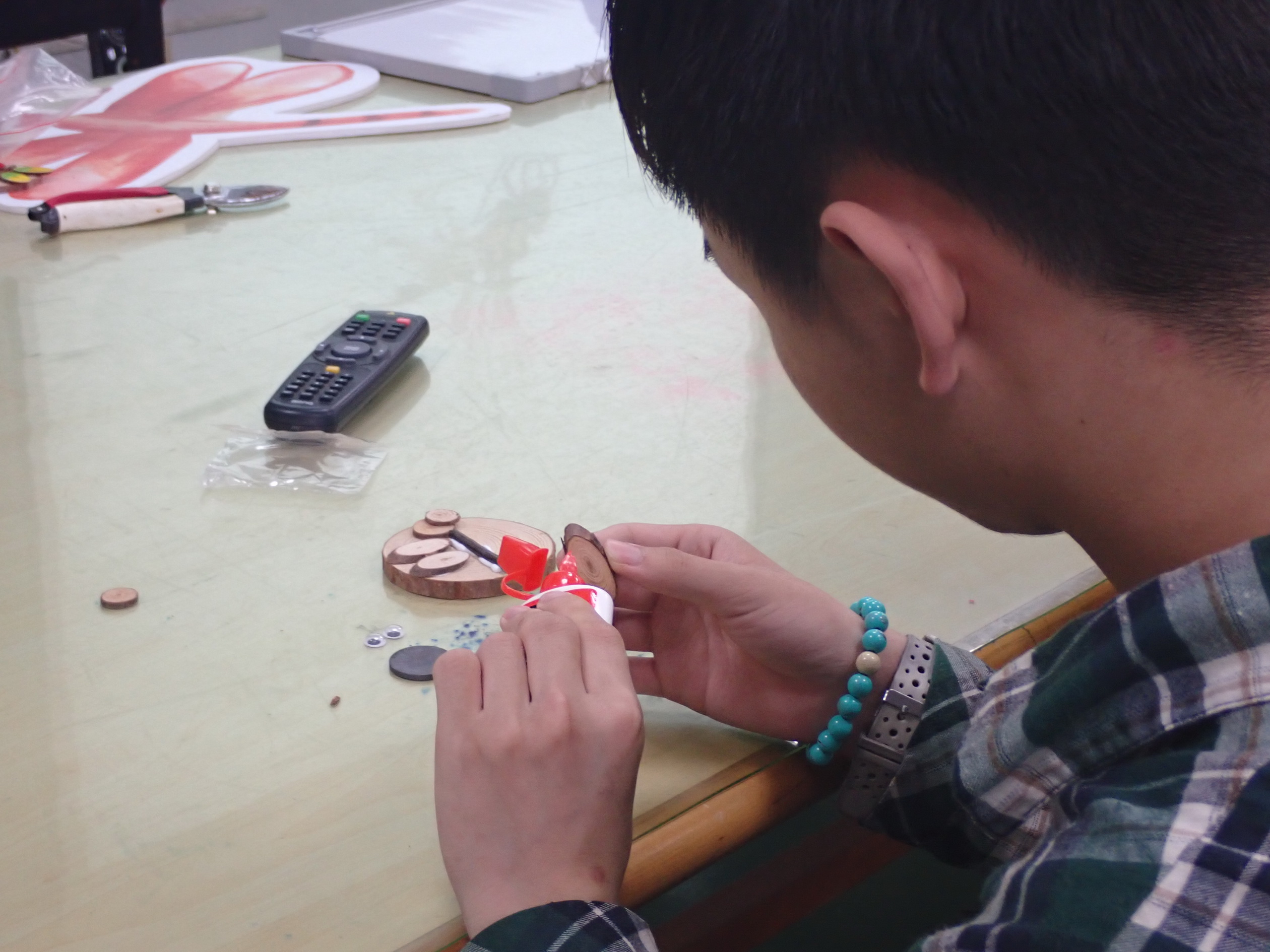 「蜻身蜓宴」是一場木育饗宴,不用走進森林就能享受自然的氣息和激盪出彼此創意的火花,玩木頭就是這麼有魅力!屏東林區管理處雙流自然教育中心年度特別企劃到高雄市立高雄特殊教育學校,由環境教育教師帶來木作DIY教學,以溪流中的水生昆蟲—蜻蜓為主角,讓學生親身體驗木質的溫度與樂趣。 林務局的自然教育中心以「師法自然,快樂學習」為宗旨,為提供弱勢族群更多的環境教育機會,屏東林區管理處與在地的企業「墾丁夏都沙灘酒店」共同合作,由企業贊助經費來源、中心提供專業的課程規劃與教學,多年來持續辦理特別企劃活動,今年以到校教學拓展服務對象,提供身心活動較為不便的學生運用木片創作感受森林之美。 位於屏東縣獅子鄉的雙流森林遊樂區內擁有楓港溪上游清澈的水源,森林涵養水源使得溪流孕育豐富的生態,蜻蜓是具有環境指標的水生生物,可以在溪畔石頭下找到蜻蜓的稚蟲階段,觀察其型態與成蟲階段的差異,也成為中心在園區教學帶領學生進行溪流觀察時的熱門話題。這次透過「蜻身蜓宴」的課程活動將俗稱為「空中飛龍」的蜻蜓介紹給學生,透過繪本看到蜻蜓年幼時的模樣(稚蟲)—水蠆,學生則帶著好奇的眼睛看著環境教育教師演出覓食行為,活動藉著繪本導讀外,也搭配中心開發的「行動教具箱—機動水偵探」來輔助學生認識蜻蜓的成長過程,讓學生學習蜻蜓的型態與特徵,接著透過木作DIY讓孩子們動手創作加深對蜻蜓的認識與印象。學生們平日在學校裡是園藝社和藝文陶冶社的社員,生活中的經驗讓學員們遇到DIY的木料時,專業地拿起來聞香和觸摸木片的紋理,活動過程藉著老師溫柔地牽著學生們的手,並指向翅膀以及眼睛黏貼的地方,師生共同合作一步一步將木片蜻蜓完成,最後孩子們在成品上盡情的揮灑色彩,沒有框架的創意行動形成自然的美感,輕鬆地呈現在作品當中,創造了一場別具意義的木育饗宴,也讓環境教育教師讚嘆這群孩子們出乎意料外的創造力! 「蜻身蜓宴」融合學生的親身體驗,深化學生與自然互動的經驗,開啟一扇通往森林之美的窗口。中心透過到校服務推動環境教育,讓更多學生和教師能更容易地接觸自然中的奧妙並引發學生的好奇心,同時本中心也開放行動教育箱借用服務,提供教師關於水質指標生物的教學教材、教學設計運用以及新聞報導篇章來討論環境議題,內容豐富且易上手,歡迎國小學校教師來預約申請,相關訊息請以電話08-8701499向雙流自然教育中心洽詢相關資訊。