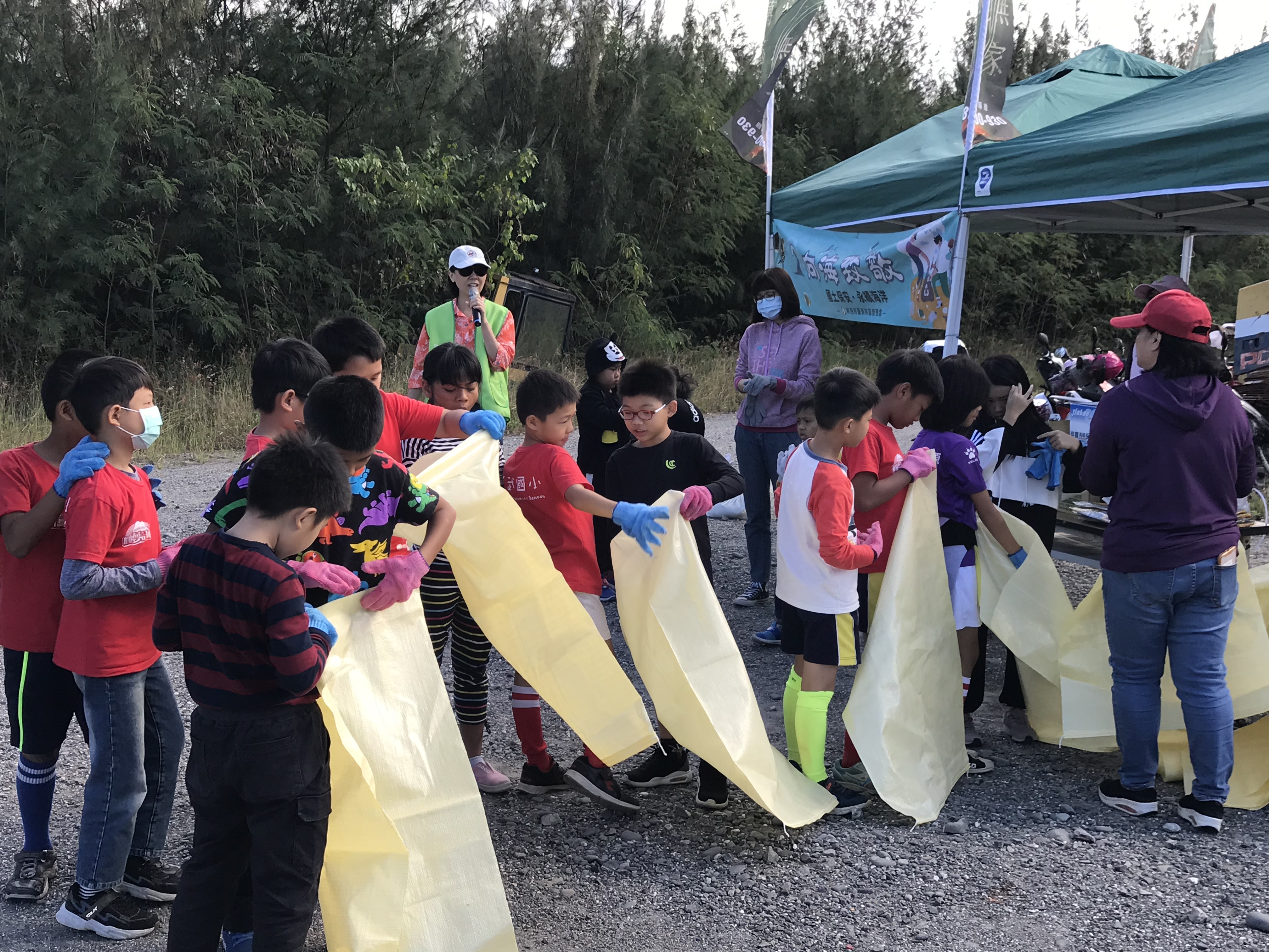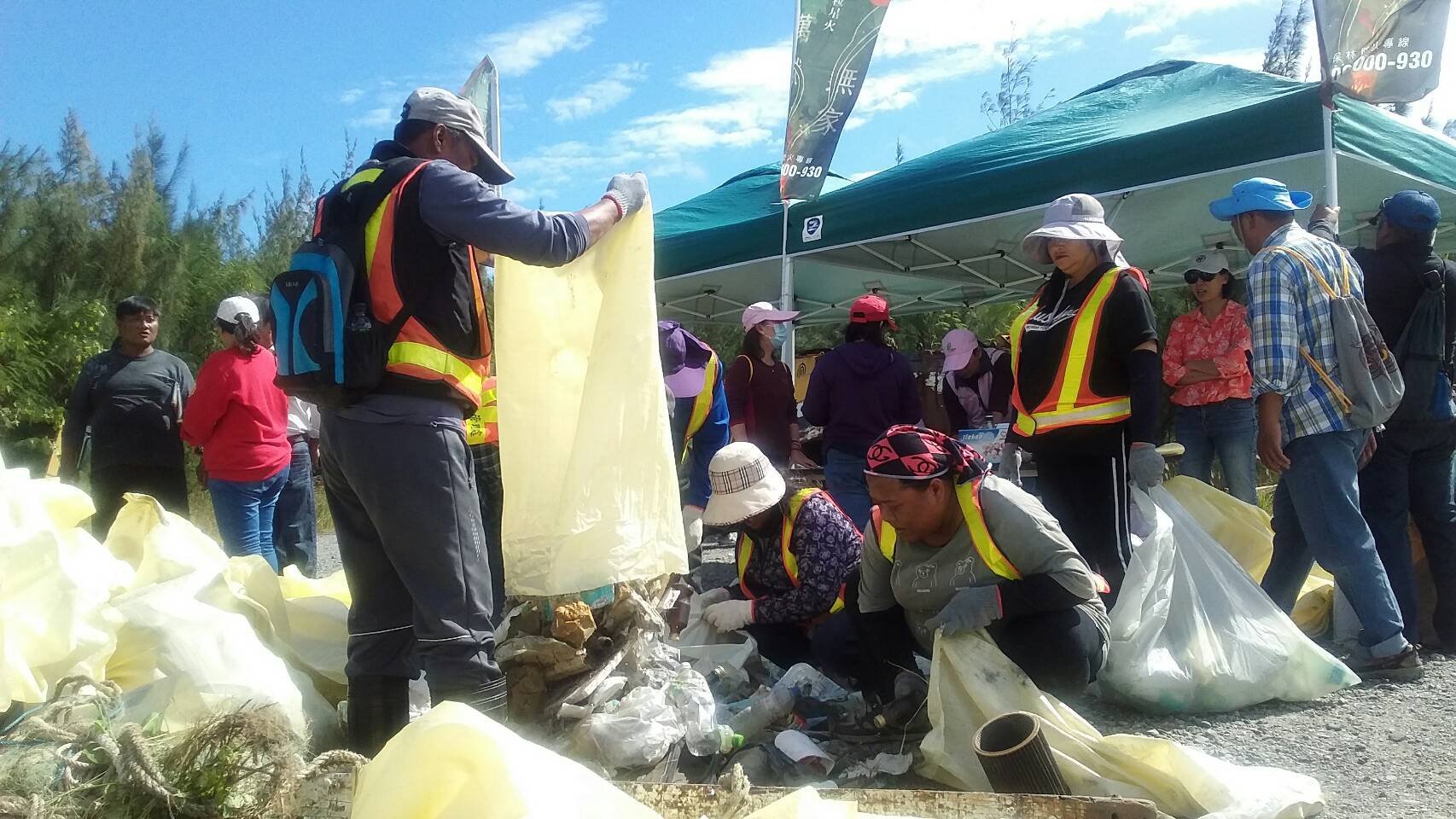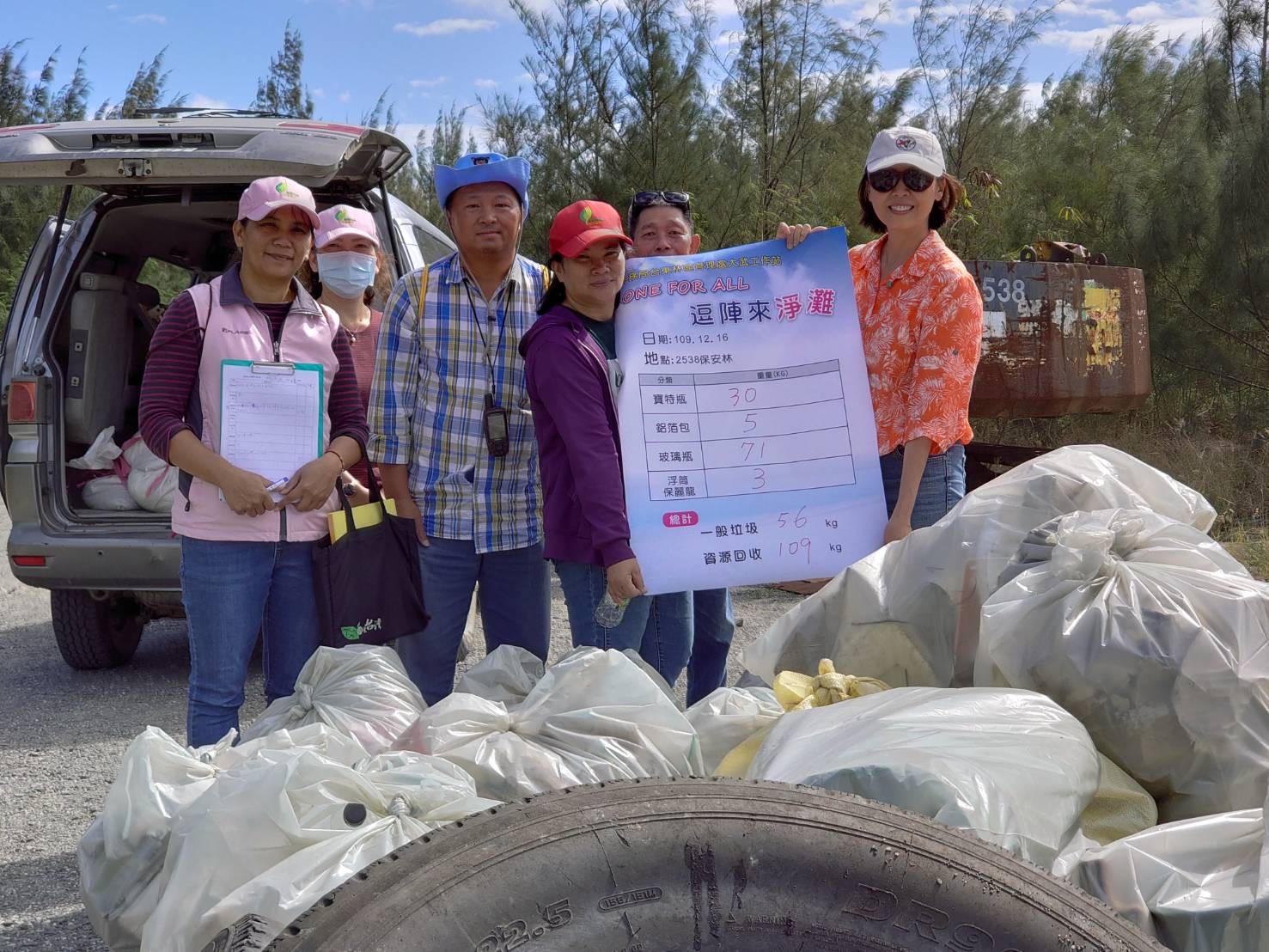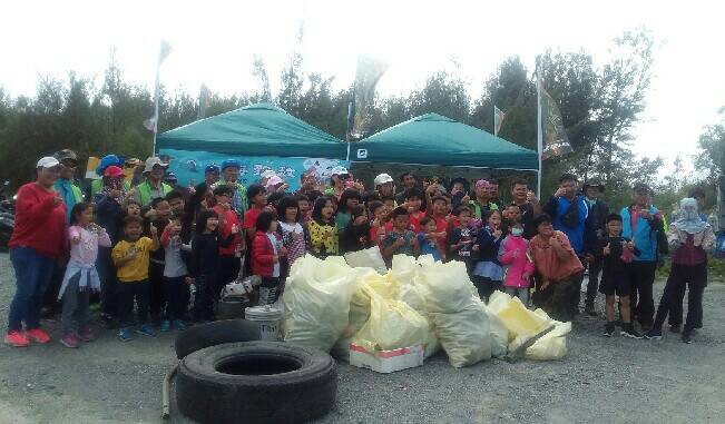 頭頂驕陽,經2小時大家齊心清除廢棄物後,進行垃圾分類及有獎徵答,小朋友都踴躍搶答而且正確完成手中廢棄物諸如寶特瓶、鋁箔包、浮筒保麗龍、漁網及輪胎等之分類,寓教於樂也對環境表達崇高的敬意,這次淨灘結果包含一般垃圾56公斤和資源回收物品109公斤,總計165公斤。