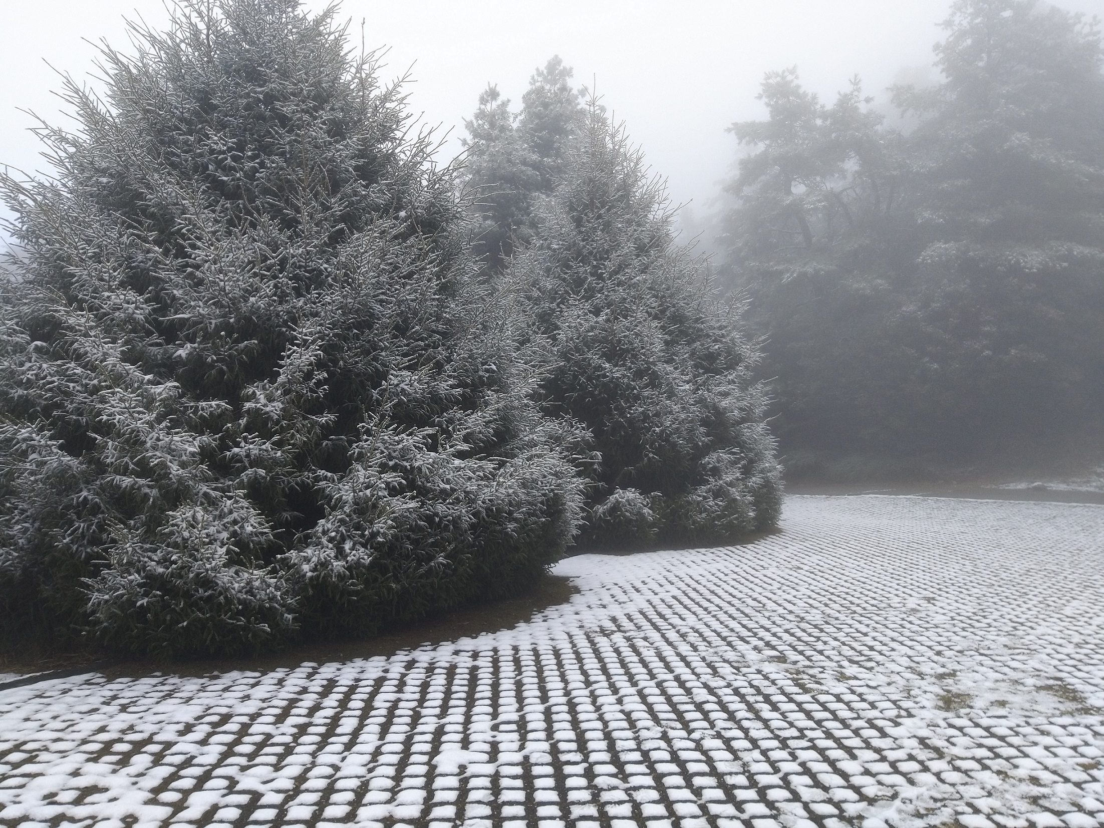 大雪山國家森林遊樂區內海拔約2600公尺的小雪山資訊站,於1/12清晨5點降下初雪,目前被大霧籠罩沒有繼續降雪,仍有部分積雪,迷霧中的森林雪景帶著朦朧的夢幻感! 因大雪山林道43k以上部分路段有結冰情形,為維安全實施機動管制措施,於43K遊客中心進行交通管制,限加掛雪鏈、具四輪傳動車輛通行,並將依融冰狀況機動開放通行,即時管制狀況及相關資訊請洽大雪山遊客中心(04)25877901。 東勢林區管理處貼心提醒遊客,目前小雪山氣溫為零下4度,大雪山遊客中心1.5度,上山記得準備足夠的禦寒衣物,並請注意雪地行車安全,於出發前確認備妥雪鏈、水箱添加防凍劑,沿路小心行駛、減速慢行、開啟頭燈、保持與前車的安全距離,快快樂樂出門、平平安安回家!