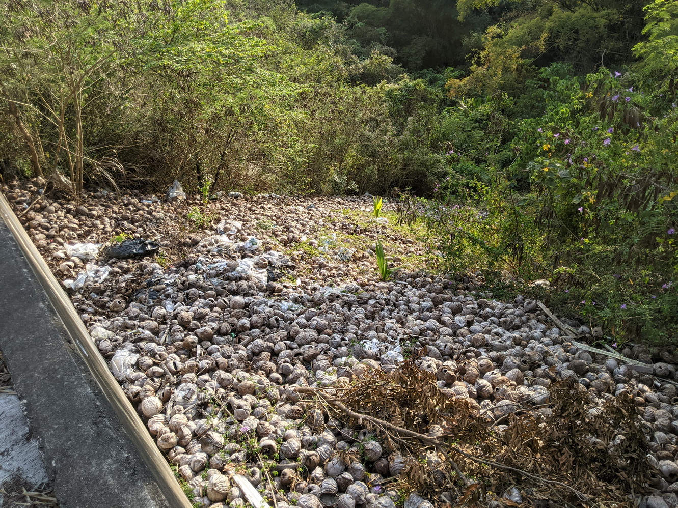 高雄市旗山地區近年來常有不肖業者違法在國有地傾倒垃圾,除了造成環境髒亂、蚊蟲叢生,附近居民也因聞到異味苦不堪言,為加強林地管理,林務局運用3C智慧器材在經常遭偷倒廢棄物地點裝設蒐證器材,屢屢破獲偷倒垃圾案件。 108年12月林務局森林護衛隊員接獲居民通報在旗山區國有林內有遭丟棄大量椰殼,惡臭難聞,立即在樹上裝設隱藏式攝影機錄影,由影片中發現兩台車輛出入國有林,形跡可疑,立即通知警政署保安警察第三大隊及第八大隊聯合追查環保蟑螂,經比對路口監視器發現郭姓嫌犯未依規定領有廢棄物清除、處理許可文件,即自民國108年9月1日起至同年12月底,將販售椰子汁後所剩之椰子殼,以兩輛小貨車,每週2次、每次載運約900公斤椰子殼至林務局屏東林區管理處國有林內棄置,警方偵查完成後移送橋頭地檢署,後於109年10月30日起訴郭姓嫌犯,林務局於起訴後向法院提出求償森林損毀費用82萬元。 屏東林區管理處楊瑞芬處長表示,為全面打擊偷倒廢棄物黑心業者,林務局已與檢方及警方等單位組成聯合查緝小組,歷年來已破獲不少偷倒有毒廢棄物不法集團的案件,未來也會繼續努力查緝,追償毀損國有林的賠償金。在森林擅自堆積廢棄物或排放污染物者,依照森林法第56之1條處新臺幣六萬元以上三十萬元以下罰鍰,也呼籲民眾若發現不法情事,請撥打免付費檢舉專線:0800-000-930(0800-您您您-救山林),共同打擊不法,除了可依森林保護辦法第34條核給最高100萬元獎金,也同時維護國有財產及森林資源。
