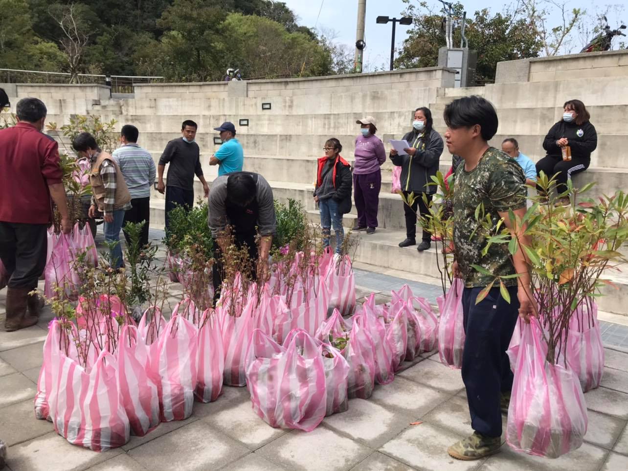 植樹月贈苗 全面採用環保材質包裝台灣原生樹種 2021年植樹月贈苗活動開跑了,新竹林區管處大溪工作站除了在市區同步贈苗外,更深入所轄的社區、學校、原住民部落贈苗,今(5)日,大溪工作站在插天山自然保留區山腳下的義盛部落舉辦贈苗活動,贈送苗木均為臺灣原生樹種有楓香、杜英、野牡丹、烏來杜鵑共1,500株,苗木以環保材質的玻璃紙盛裝,玻璃紙可自然分解,更環保,社區民眾踴躍參與。 結合在地力量 共同守護山林 大溪工作站主任朱劍鳴表示,守護森林資源及其營造的動植物棲息生態環境,是永續經營臺灣森林最重要的任務。義盛部落鄰近國有林班地,林地內蘊藏珍貴的動植物資源,經常成為不法人士覬覦對象,部落與工作站合作互動關係相當緊密,義盛社區歷年參加林務局社區林業計畫,成立森林巡守隊,增益及疏緩巡山員、警察有限人力問題,共同守護珍貴的森林資源貢獻有佳。 活動中,工作站同仁教導民眾種樹及栽植的正確方式,並宣傳所贈送的苗木楓香、杜英是林下經濟種植香菇的段木材料之一,可增加山村經濟收入。除此之外,更加強宣導防範森林火災發生及森林保護工作,希望藉由在地居民的力量,為臺灣的山林盡一份心力。