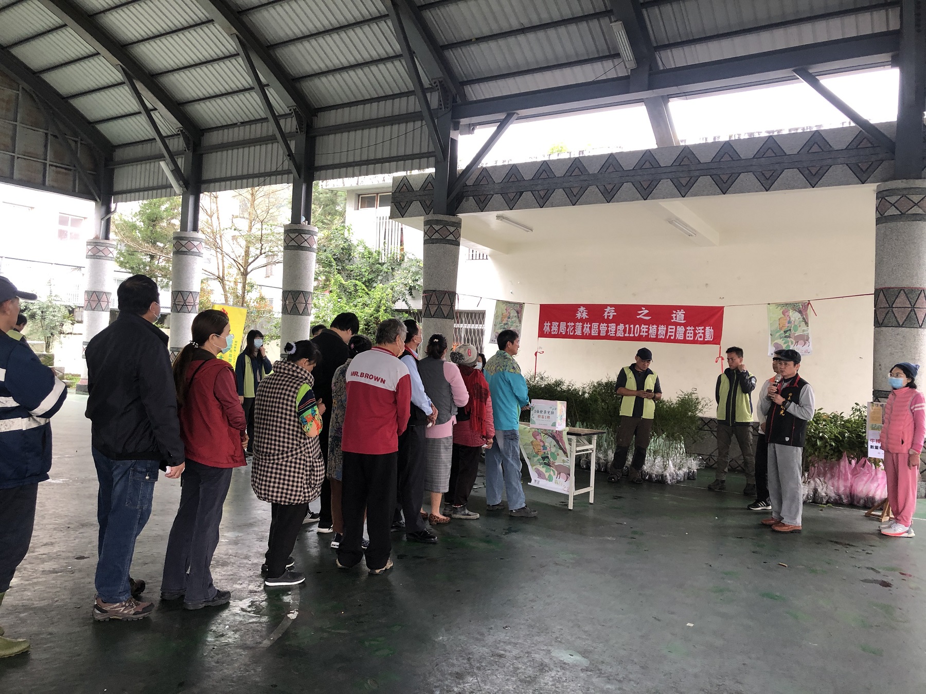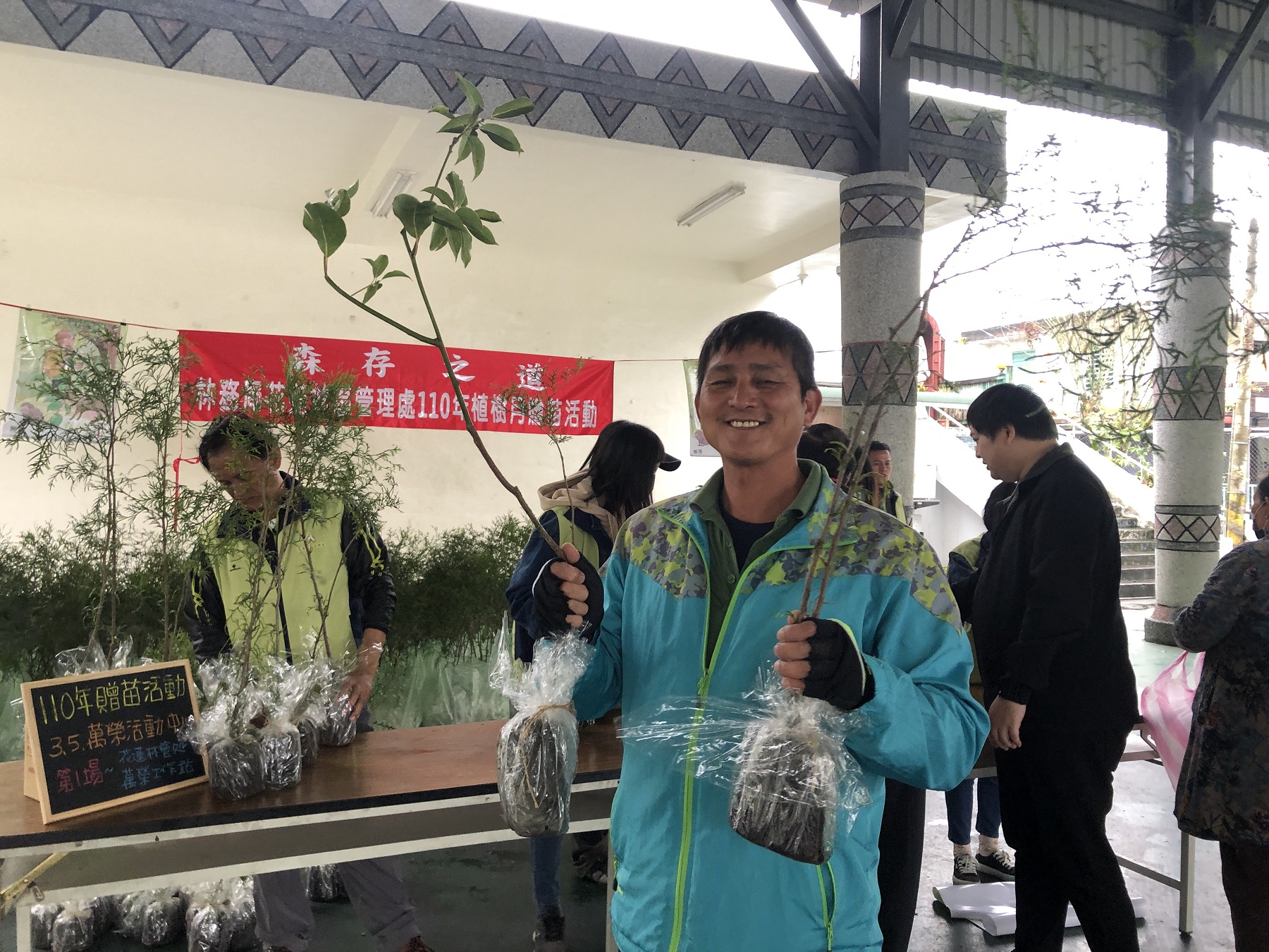 花蓮林區管理處首場贈苗活動今(5)日在萬榮村活動中心登場,許多村民一早扶老攜幼排隊領苗,牛樟深受民眾喜愛,100株不到半個小時就發放完畢,700株肖楠也在2小時左右全數贈出。 林管處指出,今年適逢牛年,因此選擇台灣原生樹種牛樟,取「牛轉乾坤」的寓意,以及台灣一級木肖楠。這二種樹種除了樹型優美、木材形質良好,還能提煉精油,具高經濟價質。建議民眾領取苗木後栽植於林地,透過栽植原生樹種,營造多樣性棲地,並串連成綠色網絡,讓在地的生物住民也有美麗安全的居所,並符合今年的植樹主題~~森存之道。 響應減塑政策,林管處近年來積極使用環保素材包裝苗木,去年使用可分解的紙漿穴盆,今年則使用以纖維素製成、可分解且對環境無害的透明玻璃紙來包裝苗木,民眾領回苗木後可直接放入花盆或花器中,灌水濕潤土壤即可,每贈出一株苗就減少使用一個塑膠盆,為環保盡心力。 林管處表示,3張發票即可兌領1株苗木,所得發票將全數捐贈花蓮地區慈善及福利團體,歡迎民眾遵守現場防疫規定、戴口罩,一起來響應公益活動。相關場次詳細活動內容,請至林管處官網或臉書粉絲專頁查詢。