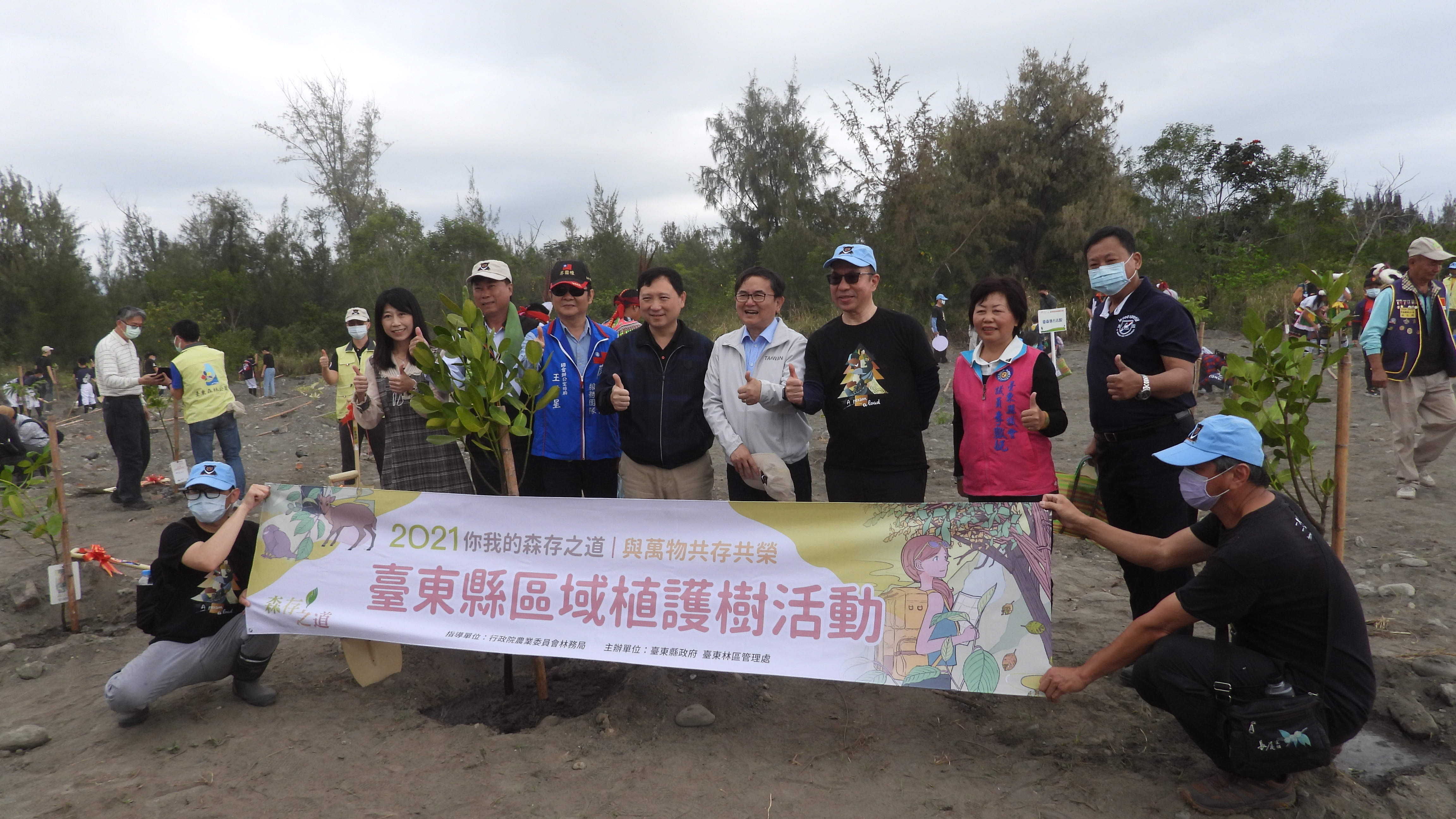 今(6)日上午在市區森林公園內由臺東縣政府與臺東林區管理處合辦了一場區域植護樹活動,在王志輝副縣長、劉櫂豪立法委員、臺東林管處吳昌祐處長、臺東地方法院劉長宜院長、陳銘風縣議員、李數奼縣議員等多位在地貴賓及國際同濟會海端會、關山工商、卑南國小與豐田國小師生的共同出席參與下,一起在這座與臺東市民生活最息息相關的保安林第2519號保安林(即臺東森林公園)的土地上種下了苗木。希望未來這些苗木長成大樹,可以肩負起保安林飛砂防止及兼具風景綠化的任務。 今日的活動由臺東縣政府在森林公園入口贈送民眾苗木揭開序幕,許多臺東縣民在假日也起個大早來排隊領取苗木要在植樹月內綠化家園,縣府一共準備了杜鵑、紅竹、樹蘭、矮仙丹、桂花、防蚊草3,000株讓民眾索取,現場湧入熱絡排隊的人潮,不一會兒苗木就索取一空了。 隨即與會所有貴賓也應邀參與了今年的植護樹活動,在王志輝副縣長與吳昌祐處長的陪同下,大家一起齊心種下了110株苗木,包括福木、無患子、毛柿、樟樹、光蠟樹等原生樹種,並特別融入護樹精神在植樹活動當中,如移除石塊、施肥及支架固定,都由植樹者親自完成,現場也進行護樹修枝示範。 植護樹活動後,縣府及林管處也各別頒獎給109年度推動綠地養護、育苗、造林成績優異人員及森林保護包括空勤總隊、消防局所屬有功單位、優秀森林護管員、優秀國家森林監測志工及109年度社區林業績優社區。感謝他們在過去的一年中,默默地在植樹綠化、育苗、森林防災及森林保護等方面的付出及努力。活動會場也有臺東地方法院、地方檢察署、臺東林區管理處政風室的廉政宣導,也還有南區國稅局臺東分局、知本自然教育中心、保安林宣導、木作彩繪DIY等攤位,現場參加植護樹活動的卑南國小少棒隊、柔道隊及豐田國小少棒隊的小選手們也到各攤位親手彩繪可愛的木作小動物,過程趣味且盡興,活動最後在關山工商原舞團帶來的精采得獎表演中畫下圓滿的句點。 臺東林區管理處吳昌祐處長表示,適逢「驚蟄」節氣後正是大地回春、萬物復甦之際,透過在今日辦理植護樹活動暖身啟動,林管處將在3月底前在臺東各地舉辦7場次的公益贈苗活動,計有25種將近11,500株的原生種苗木要讓民眾帶回家綠化。透過臺灣原生種苗木的推廣,要將環境保育與國土綠網的理念根植在民眾的心裡,共同營造原生自然的生活環境,歡迎大家踴躍參加。 更多活動詳情請搜尋: 【林務局臺東林區管理處Facebook粉絲專頁】https://www.facebook.com/TaitungForestGov 【110年度臺東縣植樹月贈苗苗木介紹網址】 https://taitung.forest.gov.tw/0000671