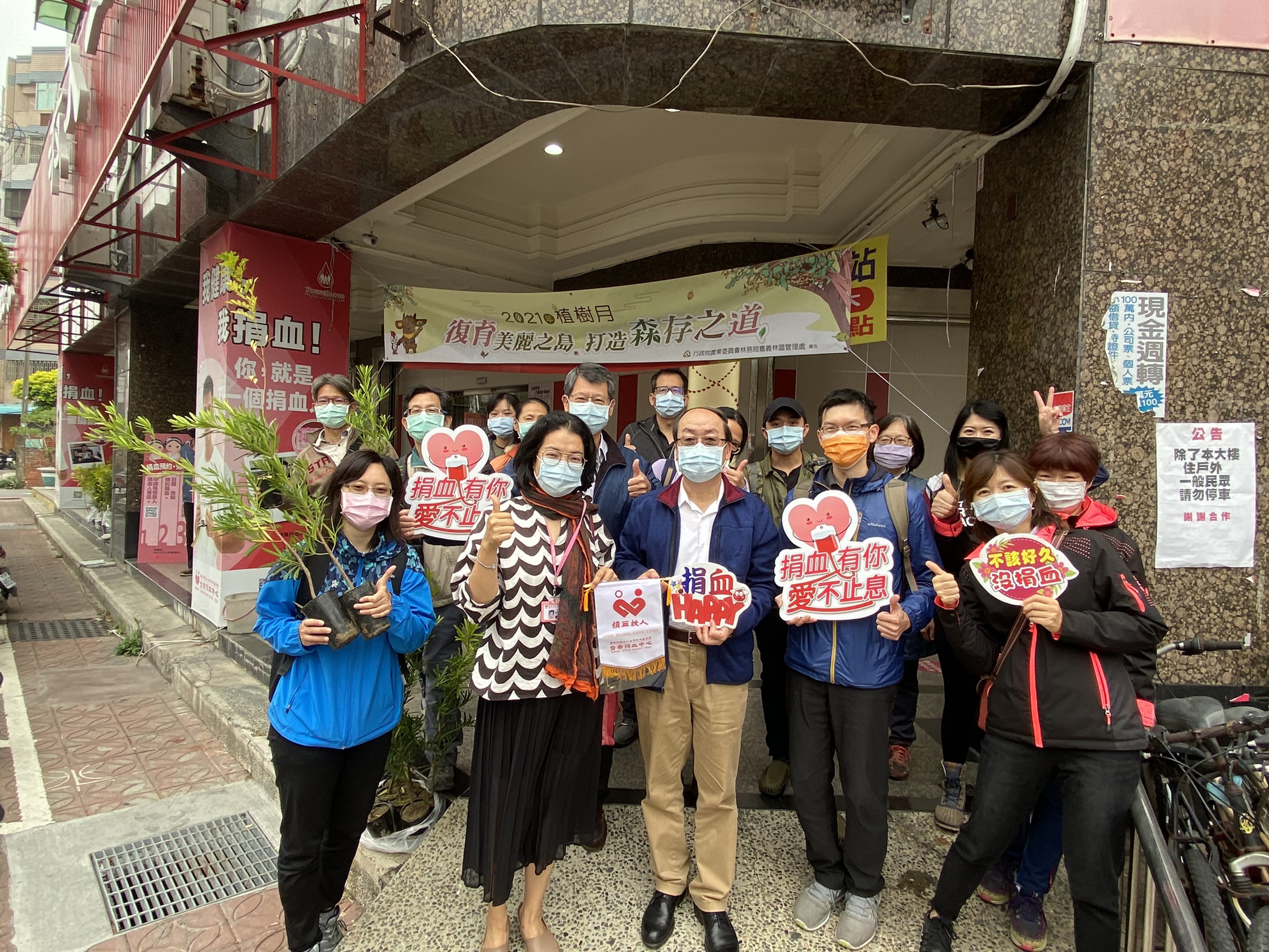 林務局嘉義林區管理處今(9)日在嘉義市博愛捐血站舉辦「復育美麗之島,打造森存之道」首場贈苗活動,與民眾攜手捐熱血作公益。一早就有民眾排隊等待捐血領取苗木外,嘉義林管處處長張岱也親自帶領同仁挽袖捐血,希望能邀請更多人在綠化環境的同時,盡一份小小心力,把愛傳給社會上需要的角落。 張岱表示,今年植樹月主題為「森存之道」,以營造良好棲地,讓原生物種都能好好生存的意涵,因此選擇更能適應本地氣候及環境的蘭嶼羅漢松、月橘等原生樹種贈送給民眾,同時配合減塑政策,苗盆改以使用竹粉及植物纖維製作的可分解容器,落實環保永續。而受疫情影響,全台血庫時常告急,基於往年植樹月贈苗活動民眾參與十分踴躍,因此今年特地與醫療財團法人台灣血液基金會台南捐血中心嘉義捐血站規劃2場次捐血贈苗活動,也帶著林管處同仁以捐血實際行動拋磚引玉,希望不僅僅是為環境打造森存之道,也能幫助社會上需要用血的民眾找到生存之道。 今日現場準備的200株原生種苗木,在民眾熱烈參與捐血活動下被索取一空,多數民眾也都自備袋子裝苗木響應減塑,捐血傳愛同時也環保愛地球。第2場捐血贈苗活動將於3月24日同地點舉辦,歡迎熱血民眾屆時一起響應。此外,針對無法捐血的民眾,林管處規劃3月21日國際森林日在嘉義市府前廣場及3月27日於觸口自然教育中心辦理2場次捐發票公益贈苗活動,歡迎民眾捐出110年1-3月未開獎發票,一起幫助社福團體,攜手作公益綠家園,打造森存之道。