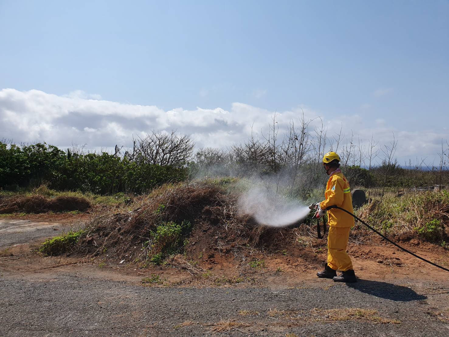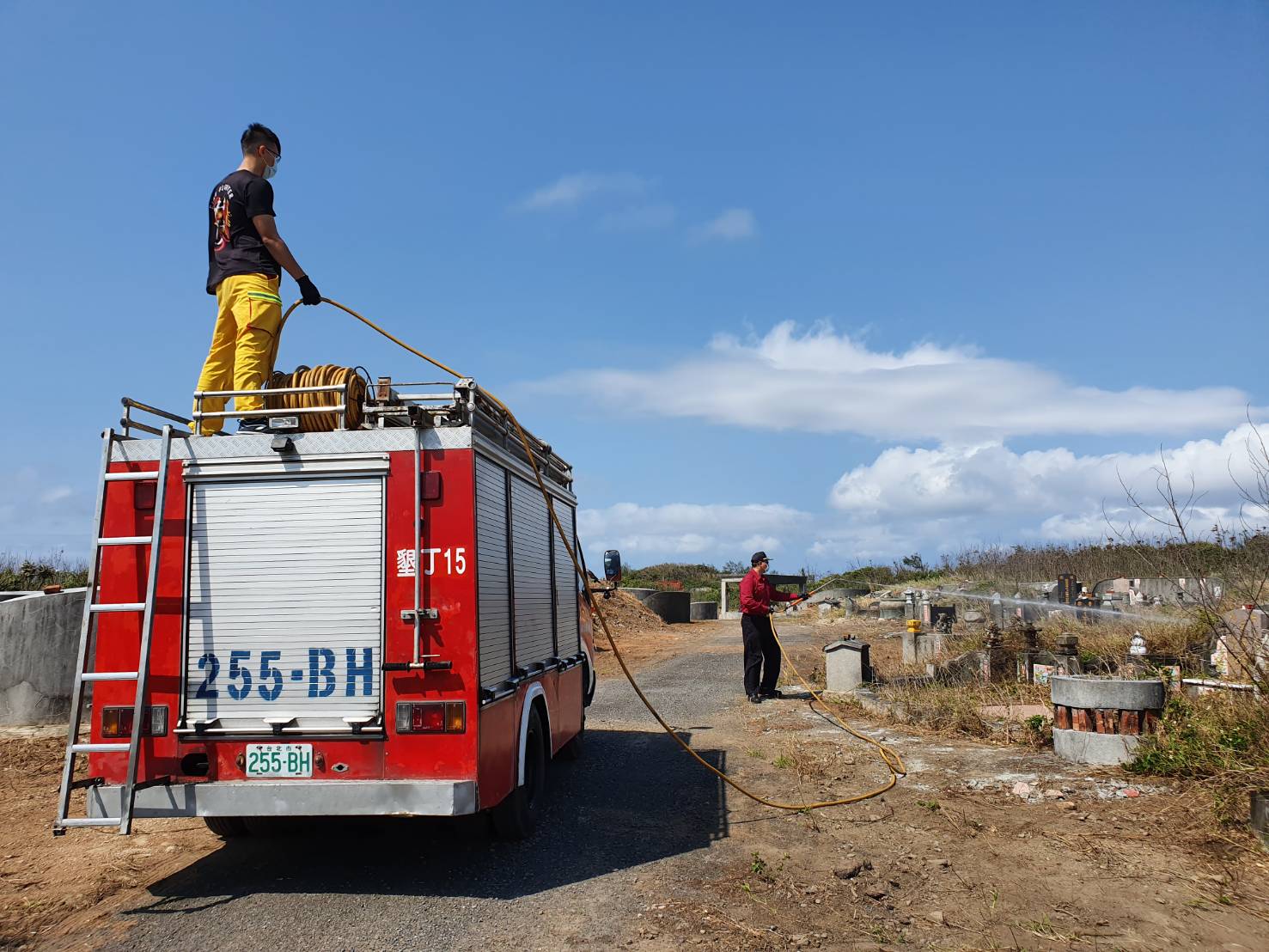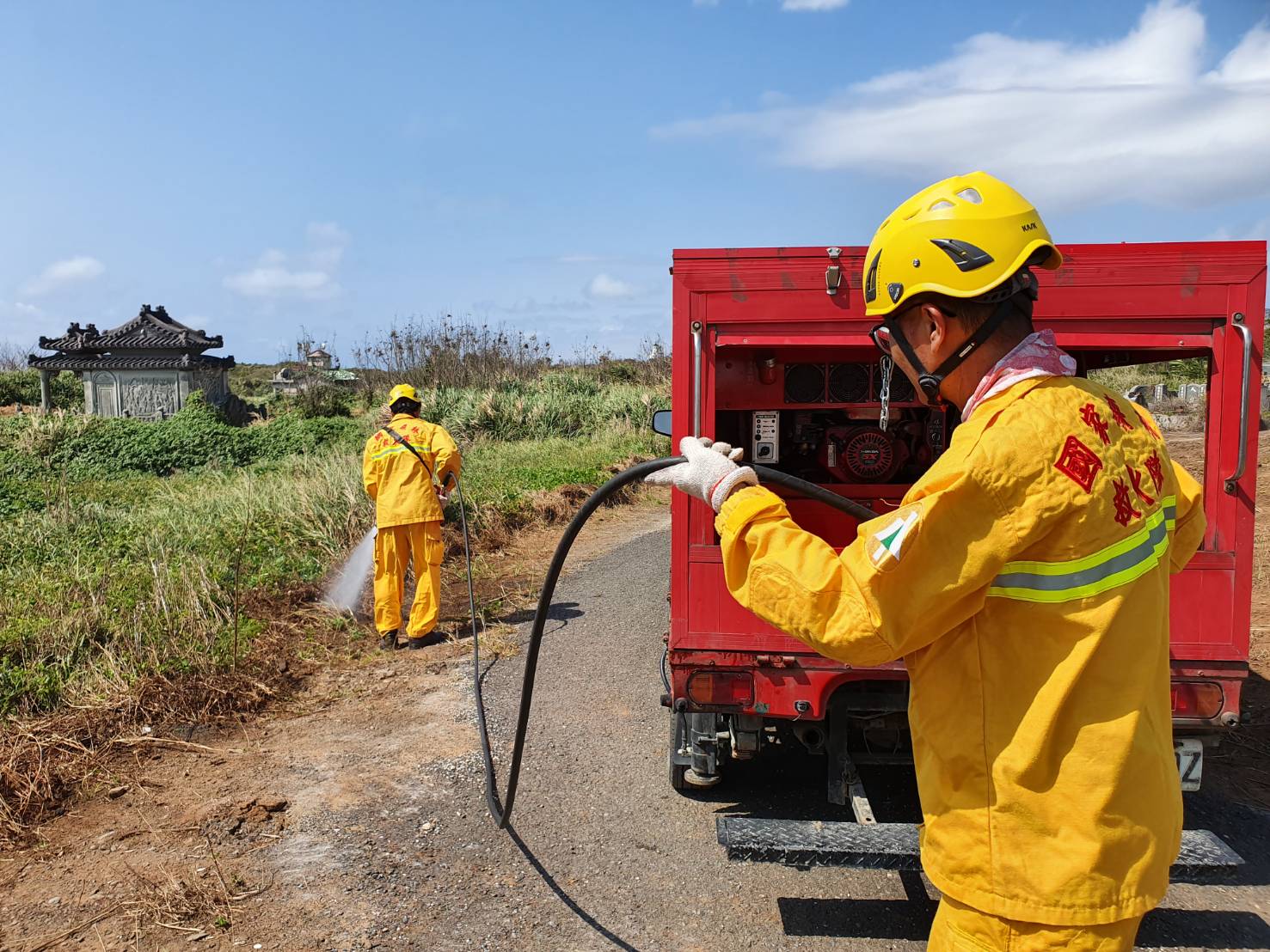 恆春地區近期久旱不雨,中南部水庫蓄水量已達紅色缺水警報,天乾物燥致森林火災風險提高,且農曆春節過後即為掃墓旺季,屏東林管處攜手恆春地區相關機關9日在恆春23號公墓,進行燃料移除及阻燃劑噴灑作業,期有效降低掃墓引起的火警。 屏東林區管理處每年旱季前,為防範林火發生,於轄屬各工作站廣邀各相關單位及林農等,討論當年度林火防範及預防對策。今年1月27日於恆春地區舉辦防火座談會,針對恆春地區林火好發原因,大部分為掃墓所引發,經與會相關單位集思廣益,認為防範未然為其首要,應於掃墓季節前,將燃料移除為最可行的方法。 為延續座談會的防火共識,恆春鎮公所已先委託鵝鑾里里長將恆春第23號公墓周圍雜草已清除完成,屏東林區管理處邀集屏東消防隊第四大隊及國家公園管理處擇定9日共同辦理燃料管理工作,以強化防火線功能,屏東縣消防隊第四大隊派出之消防車,配合鵝鑾里里長清理的雜草等可燃物,將其噴溼以降低可燃性,再由屏東林管處恆春工作站派出配備細水幫浦之救火車於防火線周遭加強噴灑環保阻燃劑,阻隔可燃物與空氣接觸,墾丁國家公園管理處亦配備輸水線,以強化防火線的功能,期能減少林火的擴散。 屏東林管處表示,南部地區乾燥季節亦為民俗掃墓期間,各機關攜手合作共同防範林火,但仍需民眾切記「4不2記得」的原則:4不為「不」亂燒雜草、「不」亂丟菸蒂、「不」飛揚冥紙、「不」燃放爆竹,二記得是「記得滅餘燼、記得收垃圾」。民眾若發現森林火災,可撥打免付費電話:0800-000-930(您您您救山林),通知各地林區管理處動員前往滅火,以免百年才能形成的美麗森林環境瞬間付之一炬。若民眾檢舉放火者而查獲犯罪行為人,得發給檢舉人每案新台幣10萬元以下破案獎金,如經主管機關認定情節重大者,可提高獎金至新台幣100萬元,請大家踴躍通報,共同維護森林資源。