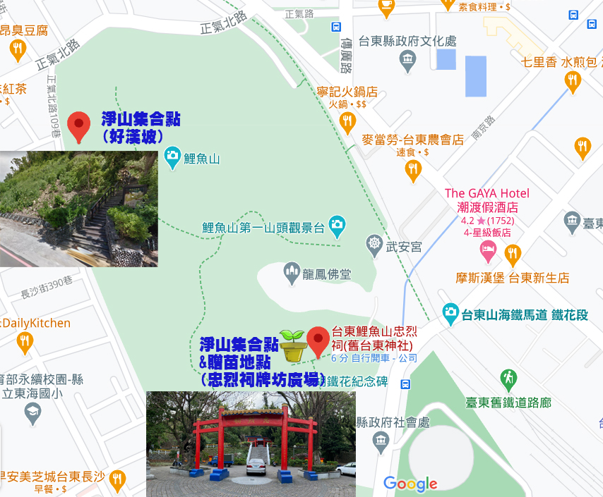 鯉魚山淨山行動將於當日早上8時開始,民眾可自行前往鯉魚山忠烈祠前牌坊廣場或好漢坡步道入口(正氣北路109巷)2處集合點報名(最遲請於8時15分前報到),由主辦單位提供手套、垃圾袋等用具,參加者只需自備飲用水、防蚊或防曬用品等個人裝備,淨山後回到集合點繳回所撿拾之廢棄物,即可獲得苗木與精美宣導品(數量有限發完為止)。