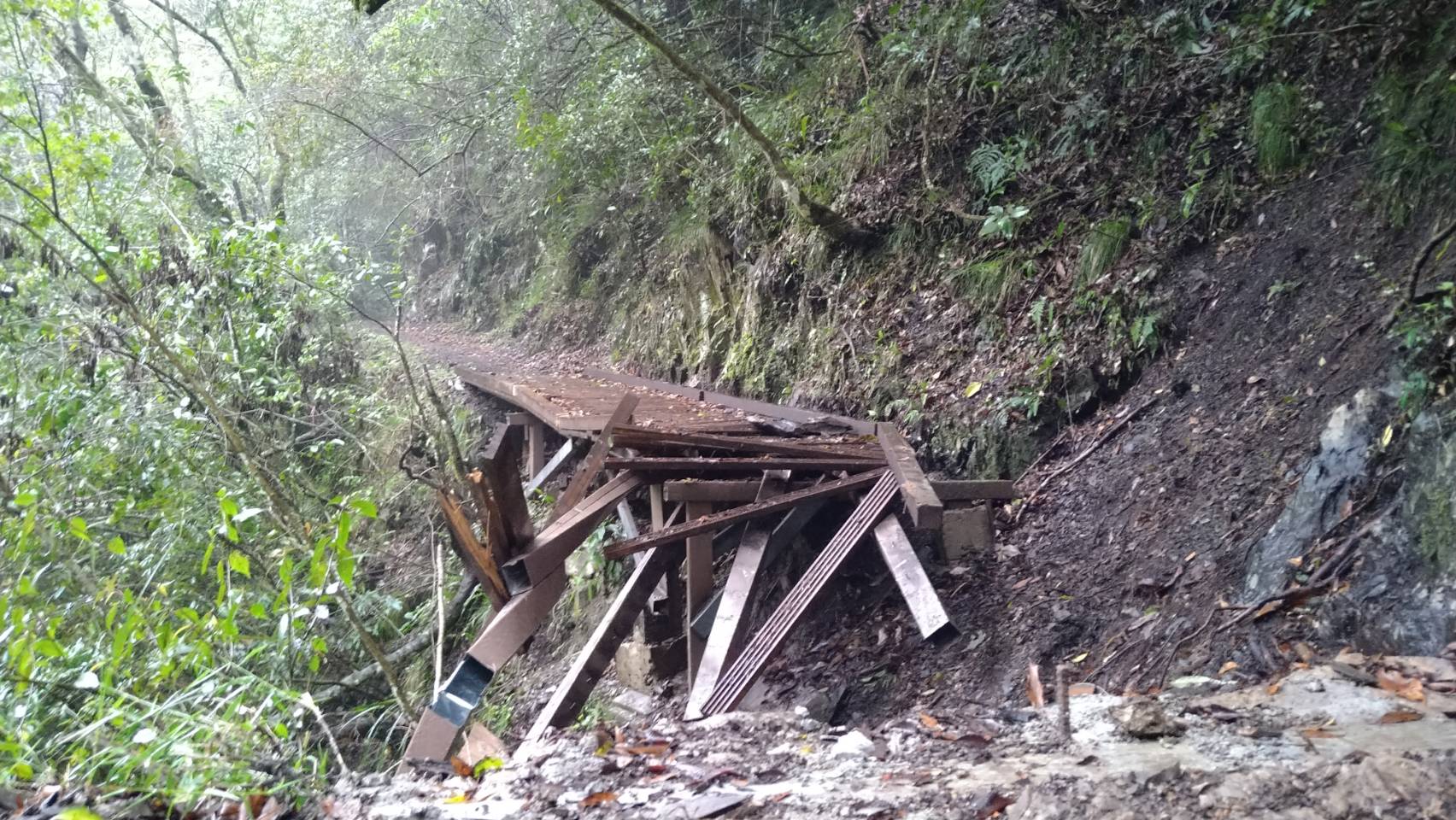 霞喀羅國家步道16.2公里處棧橋中斷,請遊客定點折返